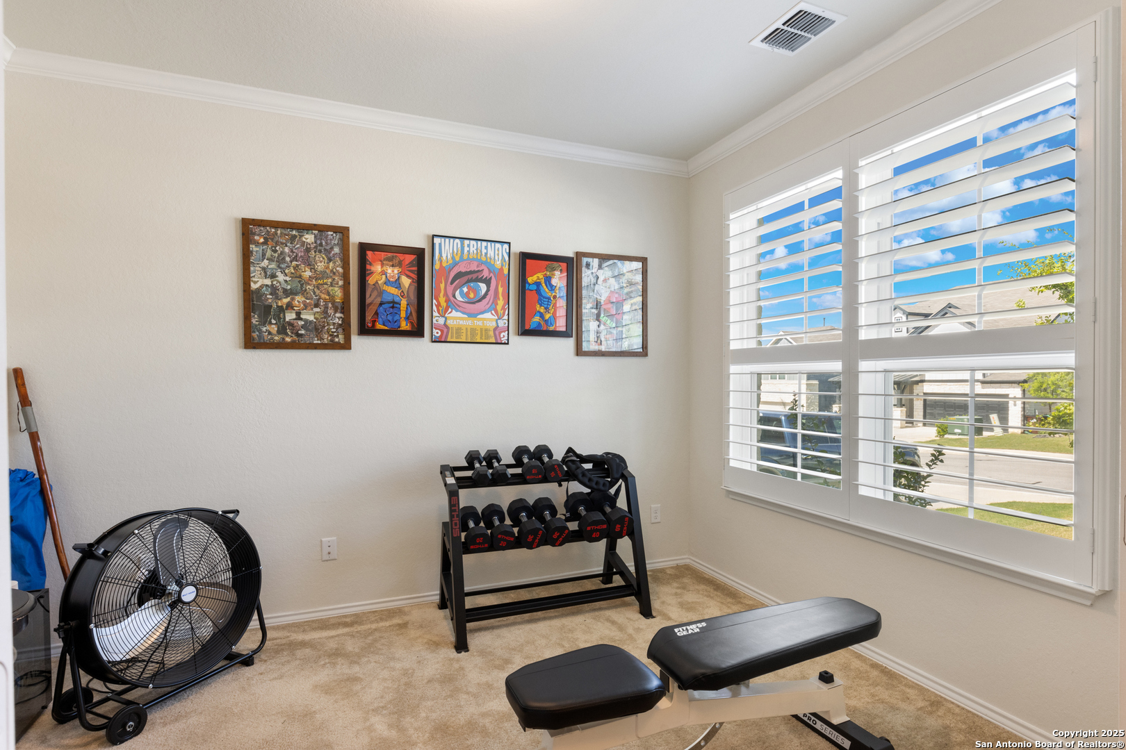 Bright, traditional, charming, and only three years old! This beautiful two-story home is tucked away in the popular gated community Preserve of Sterling Ridge neighborhood in far Northeast San Antonio, just off Borgfield road. With wonderful curb appeal and a prime location not far to numerous amenities off Blanco and 281 - this home is a must see! This 4 bed/2.5 bath, 2,498sqft home offers the feeling of bigger spaces due to it's thoughtful layout, with great additions like the extra flex room that can be used as an office (currently a workout room), an upstairs loft for extra space, and beautiful, upgraded custom shutters throughout! The kitchen includes a lovely sizable island, ample counter space with granite countertops and gas cooktop, with a conjoined dining area that seamlessly connects to the living space to help create a wonderful open space. The living room will quickly become the heart of the home with it's soaring ceilings connected by stairs to the loft area and the 2nd floor. The primary suite offers a private retreat with a luxurious en-suite bathroom with double vanity sinks, garden tub and separate shower, with TWO separate walk-in closets. Upstairs, the secondary bedrooms are comfortable in size and include ample-sized closets in each room. Outside, step down from the covered back patio and you will find a lovely backyard with a privacy fence, and sprinklers installed throughout the lot to keep your grass and yard looking great all year long. Don't miss the opportunity to make this your next HOME SWEET HOME!