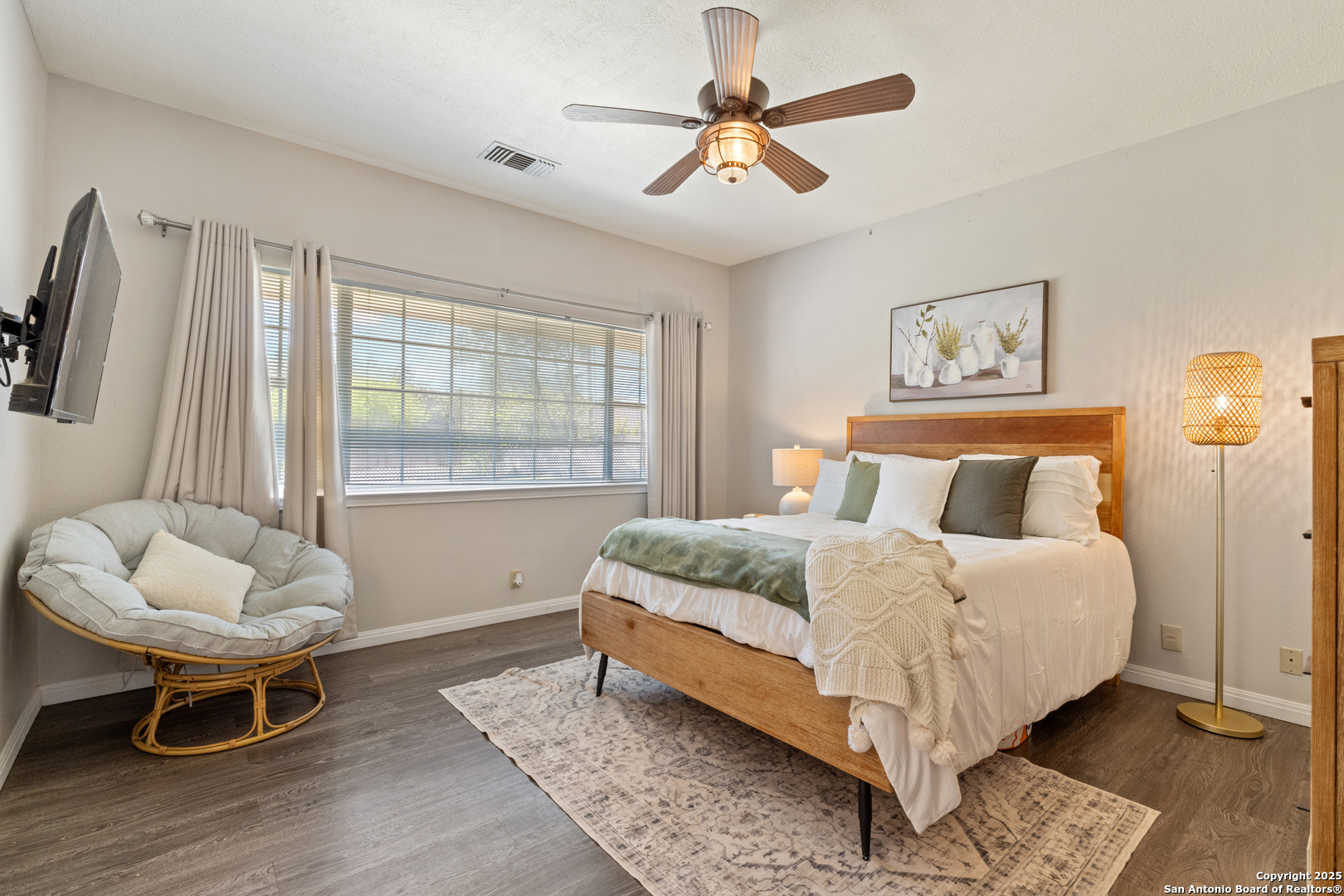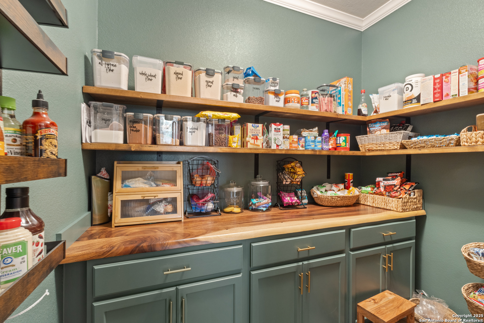 Welcome to Hill Country living at its finest! This charming ranch-style home sits on a spacious corner lot with over 1 acre of land, offering plenty of room to relax and play. With 5 bedrooms-including one that works beautifully as a flex space or additional office-the layout is both versatile and inviting.The kitchen and all 3 full bathrooms have been freshly updated, and the home boasts the most incredible custom pantry that will take your breath away. The inviting living room is centered around a striking rock fireplace and filled with natural light from the beautiful floor-to-ceiling window. A rare find, this home also includes an additional primary bedroom with ensuite bath-perfect for guests or in-law quarters. Outdoor living shines here with a large covered patio, ready for entertaining or peaceful evenings at home. The property also offers ample parking with plenty of space for multiple vehicles, plus an outdoor shed for extra storage. For those seeking a more self-sufficient lifestyle, there's already space prepared for a garden and chicken coop. Don't miss the opportunity to make this Boerne gem your new home!