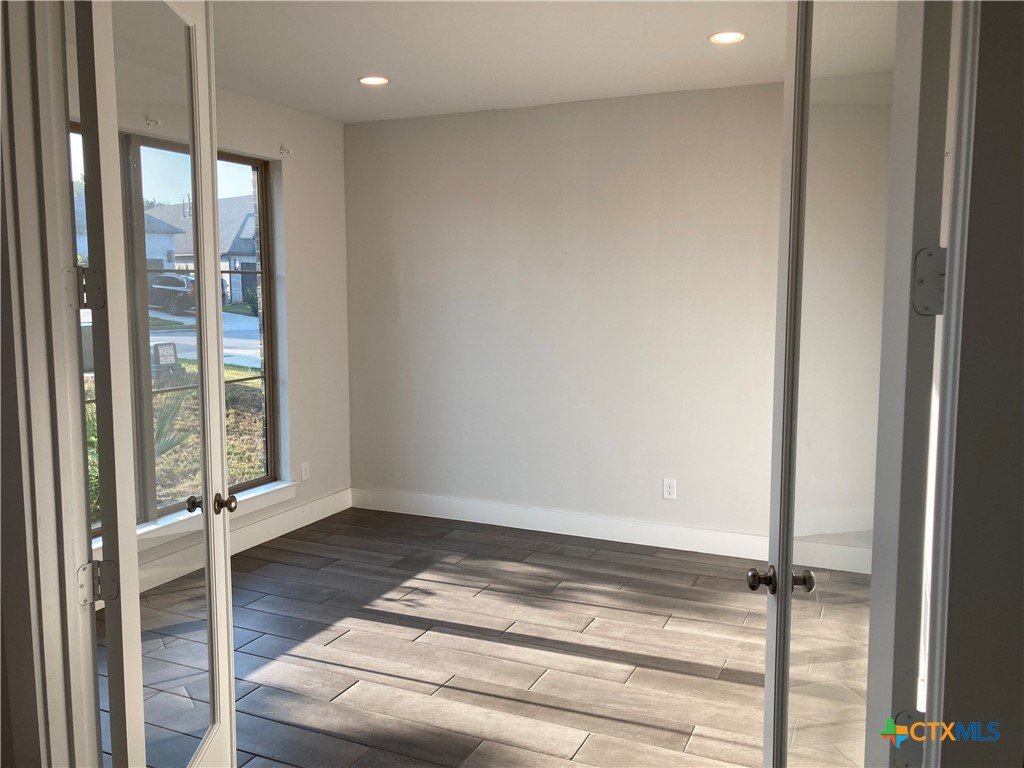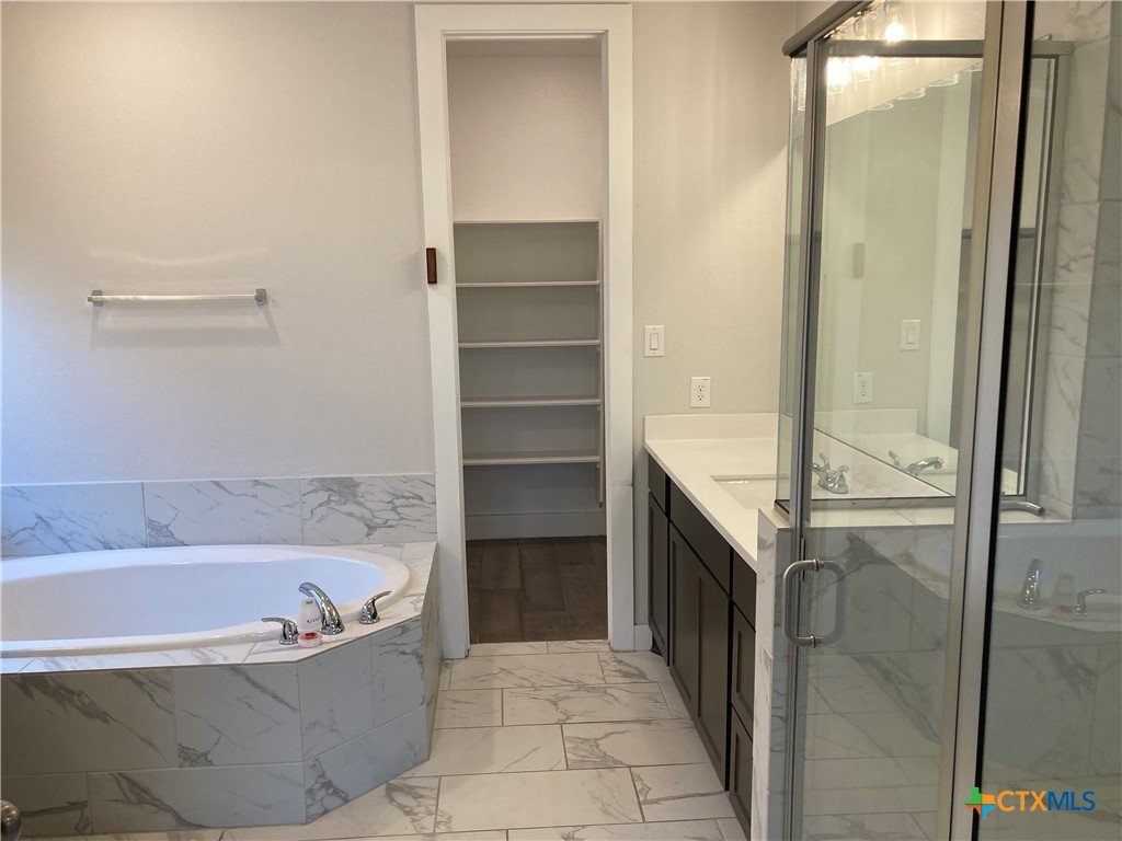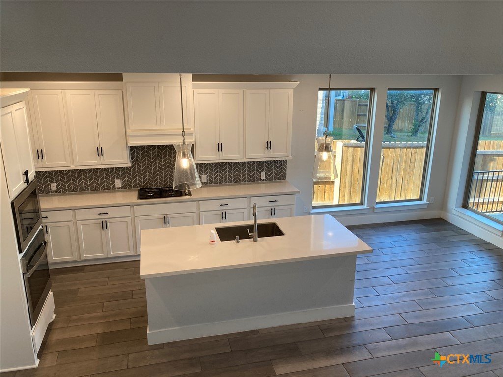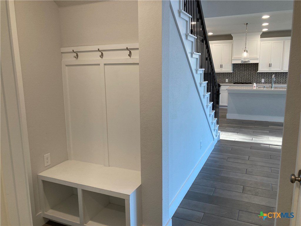 Opportunity Knocks with this stunning, Perry Homes, residence in the 6 Creeks subdivision in Kyle TX. Built in 2022, this one offers 2688 sqft in a 2 story plan with 4 br, 3.5 ba, 2 living areas and many unique features. First up, at the grand entry, is the office with glass pane french doors & recessed lighting, then a centrally located 1/2 bath followed by the kitchen, eating area and main living area with 19' ceilings and a wall of windows letting in abundant natural light along with views of the large covered patio and fenced back yard. Featured from the garage entry is a convenient mud room with bench seat, coat rack, closet & the utility room. The kitchen has a center island with eating overhang, quartz counters, stainless appliances, gas cook top, large walk-in pantry and abundant cabinet space. The primary bedroom suite, on the lower level, has it's own wall of windows and a spacious dual vanity, separate glass enclosed shower, soaking tub and walk-in closet arrangement. The lower level and all wet areas have tile floors. The second floor offers a 2nd living area/game room, 3 bedrooms with walk-in closets, 2 linen closets and one of these secondary bedrooms has it's own dedicated full bathroom. Nest Thermostats on the zoned heating/cooling system. Notable exterior features include: 4 sides brick, heavy composition shingled roof, full gutters, peach tree, sprinkler system, landscaping, covered front porch entry and the covered back porch with recessed lighting and ceiling fan. The community amenities of the Hoa include, but not limited to: a pool, pond, park, clubhouse, community center, playground, trails and more.