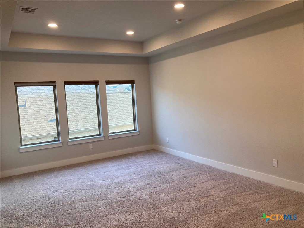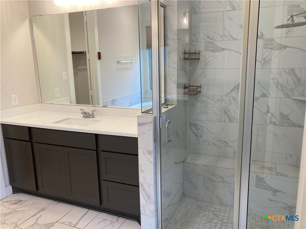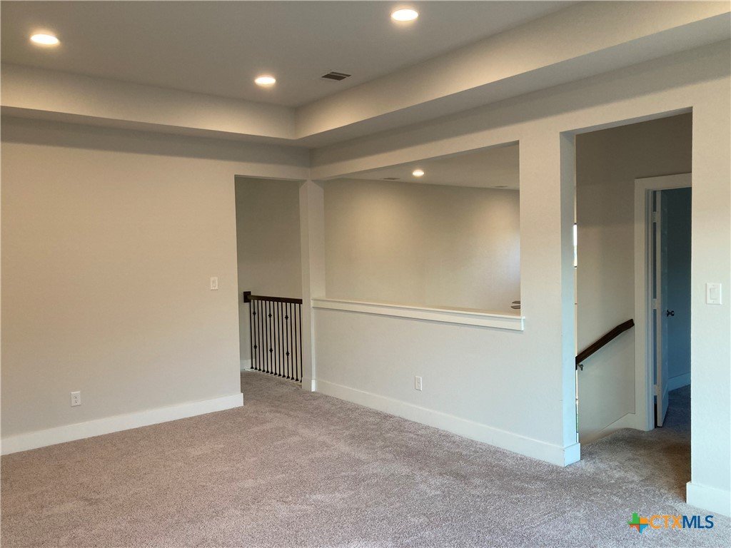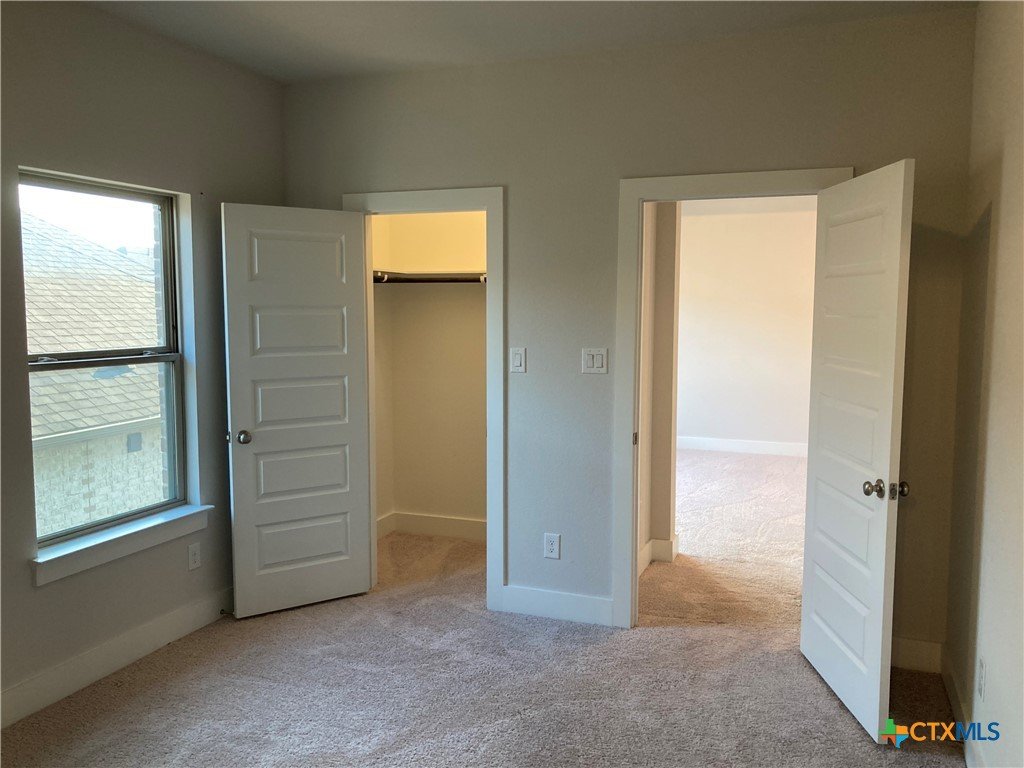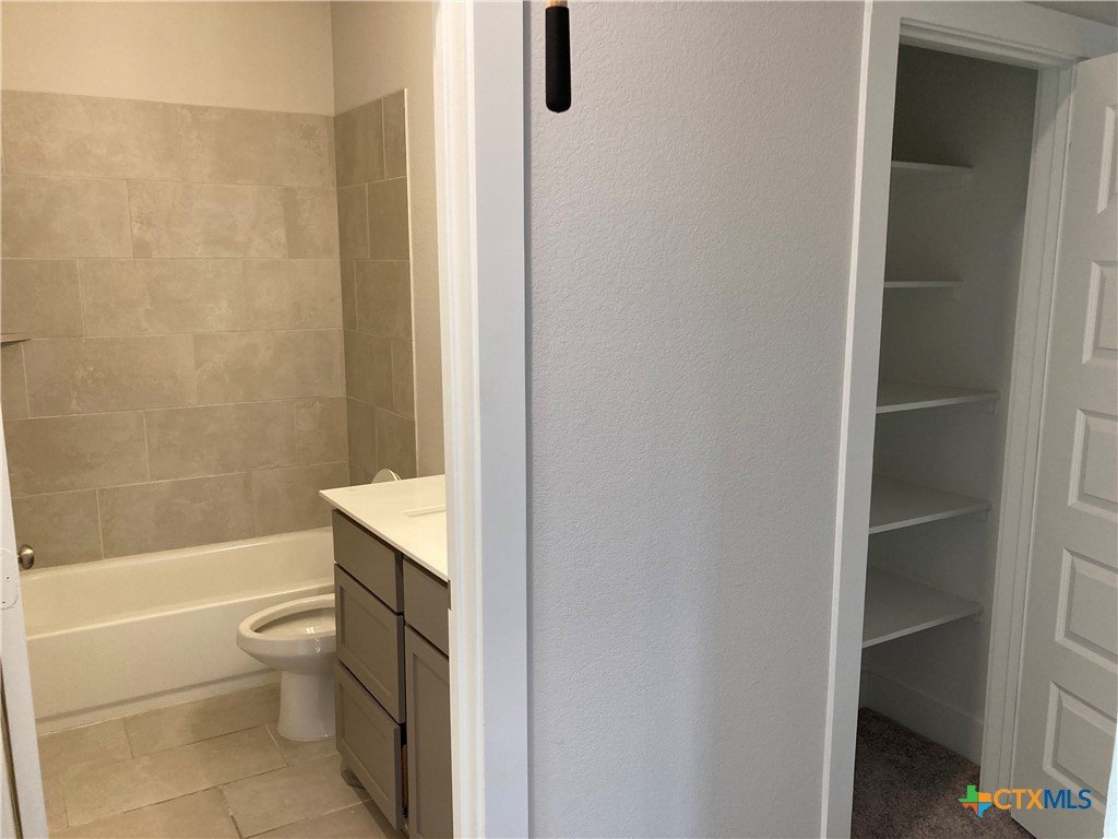 Opportunity Knocks with this stunning, Perry Homes, residence in the 6 Creeks subdivision in Kyle TX. Built in 2022, this one offers 2688 sqft in a 2 story plan with 4 br, 3.5 ba, 2 living areas and many unique features. First up, at the grand entry, is the office with glass pane french doors & recessed lighting, then a centrally located 1/2 bath followed by the kitchen, eating area and main living area with 19' ceilings and a wall of windows letting in abundant natural light along with views of the large covered patio and fenced back yard. Featured from the garage entry is a convenient mud room with bench seat, coat rack, closet & the utility room. The kitchen has a center island with eating overhang, quartz counters, stainless appliances, gas cook top, large walk-in pantry and abundant cabinet space. The primary bedroom suite, on the lower level, has it's own wall of windows and a spacious dual vanity, separate glass enclosed shower, soaking tub and walk-in closet arrangement. The lower level and all wet areas have tile floors. The second floor offers a 2nd living area/game room, 3 bedrooms with walk-in closets, 2 linen closets and one of these secondary bedrooms has it's own dedicated full bathroom. Nest Thermostats on the zoned heating/cooling system. Notable exterior features include: 4 sides brick, heavy composition shingled roof, full gutters, peach tree, sprinkler system, landscaping, covered front porch entry and the covered back porch with recessed lighting and ceiling fan. The community amenities of the Hoa include, but not limited to: a pool, pond, park, clubhouse, community center, playground, trails and more.