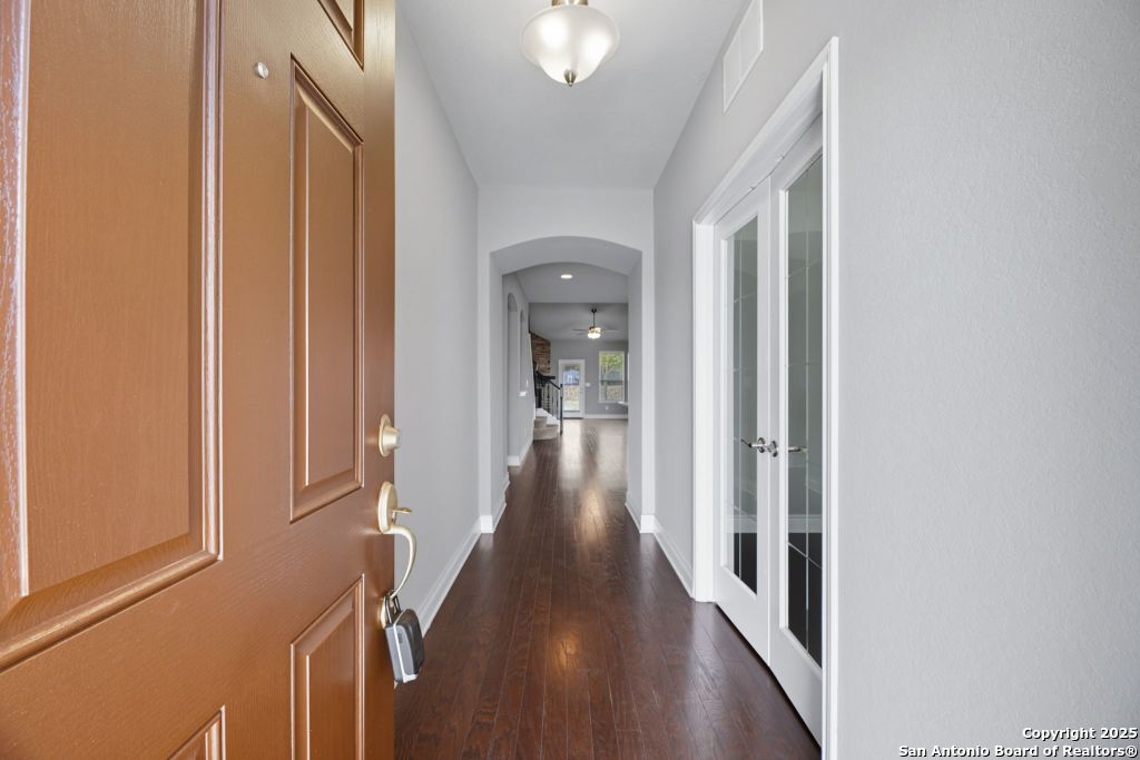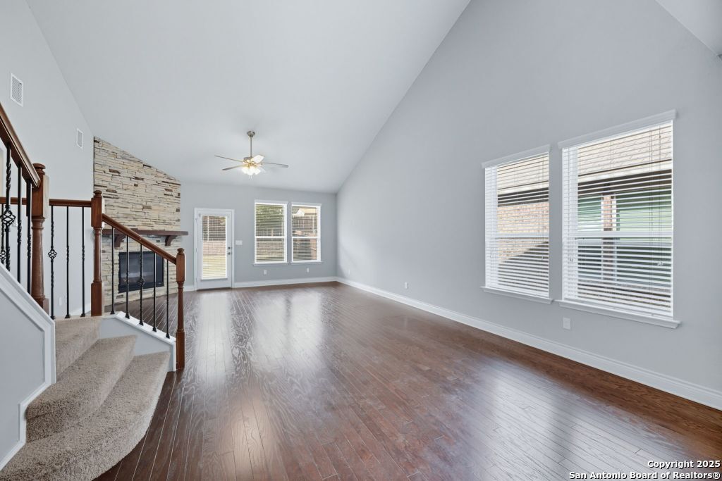 Welcome home! This stunning home in Stonehaven Terrace features the most popular Tafalla floor plan with soaring vaulted ceiling and an open concept that is perfect for entertaining and modern living. This functional plan offers a spacious primary suite with two walk-in closets downstairs and three additional bedrooms upstairs. Many builder upgrades are featured throughout including a dedicated study/office, window bay in the primary bedroom, luxury spa shower in the primary bathroom, dual vanity sinks in bathrooms, hardwood and tile flooring, a striking rustic stacked stone gas fireplace in the gathering room, Whirlpool stainless steel appliances, granite countertops, underground irrigation system for effortless lawn maintenance as well as a covered patio to enjoy those Texas evenings. The home has been meticulously maintained and features "new paint August 2025" making this home a true move in ready option. The property is located within the Boerne Independent School District. No San Antonio city taxes in the Texas Hill Country. Minutes from IH-10, UTSA, USAA, Valero and other major employers. Close proximity to La Cantera and the Rim. Don't miss out on this opportunity. Schedule your private showing today!