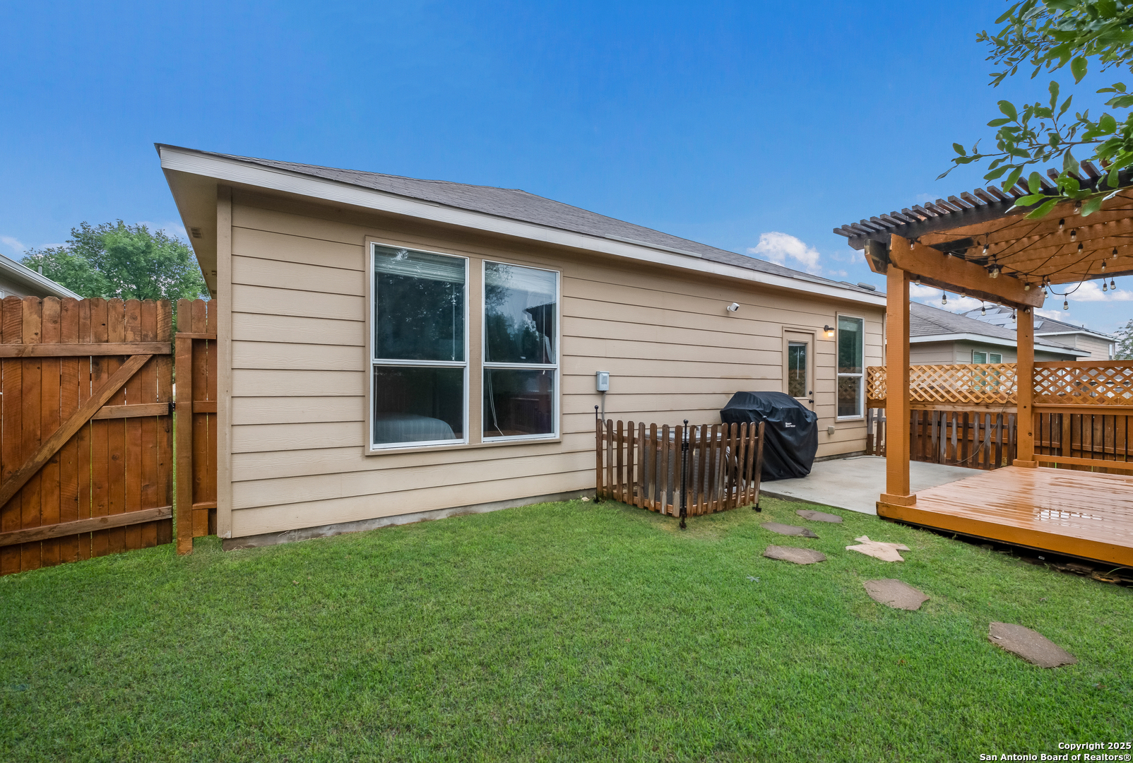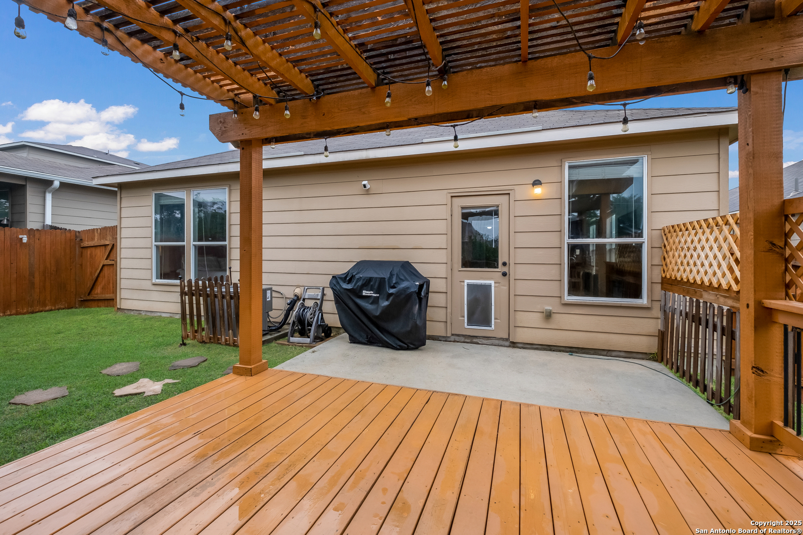 Gorgeous 3 Bedrooms plus a Study! Move-in-ready home with modern elegance. Recently updated with Vinyl plank flooring and fresh paint throughout . The open floor plan that seamlessly connects the living, dining, and kitchen areas is ideal for both family living and entertaining guest. The kitchen features stainless steel appliances, newer dishwasher in 2023, large island , and ample cabinetry for all your storage needs. The spacious primary suite is a true private retreat, showcasing a luxurious large walk-in closet with extensive storage options to keep you organized. A/C is approximately 5 yrs old. The backyard offers a large custom pergola thats perfect for outdoor dining, barbecues and relaxation. Also has Sprinkle system to keep your lawn green and healthy. Absolutely No carpeting in this home. Recessed lighting. Garage has custom top storage. Situated in the highly regarded Boerne ISD, this home is conveniently located near schools, shopping, dining, and outdoor activities. With its combination of modern updates, thoughtful design, and prime location, this home truly has it all.