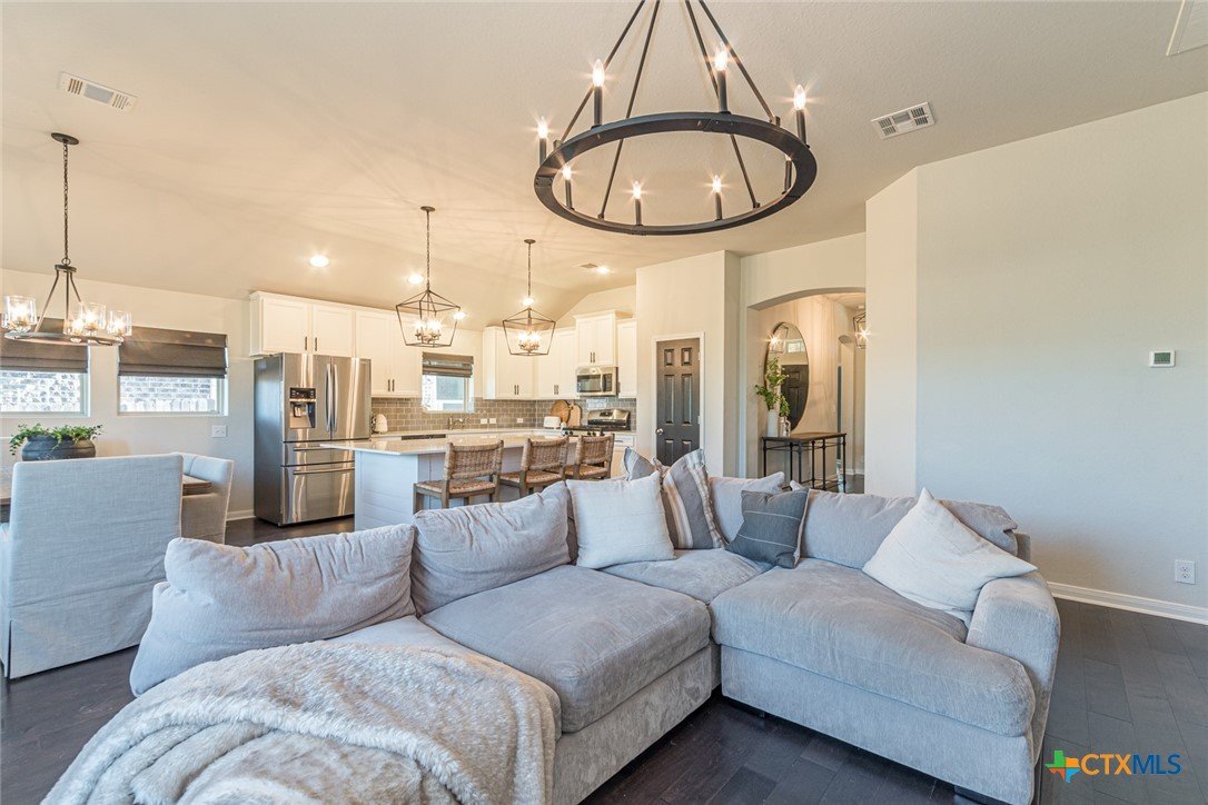 Home is now vacant and no longer staged (no furniture currently in home). Minimum qualification criteria: 700+ Credit scores for all applicants automatically approved; 650-699 credit score will be reviewed on case by case basis, household income 3.5X rent, no criminal history, no previous evictions. Max 1 pet allowed - potentially refundable Pet deposit $250 + non refundable $450 pet fee (total $700). Well maintained 3 bedroom 2 bath + study home in highly sought after Ridgemont subdivision. This home features custom farmhouse finish outs throughout. Beautiful chef's kitchen showcases white cabinets, quartz counters, and stainless appliances. The open concept floorplan is perfect for entertaining. The spacious living area features a cozy stone fireplace and a plethora of natural light. Oversized master suite with large bay windows. Wood flooring throughout. No carpet in home. Well manicured backyard with no neighbors behind you. Prime location...close to schools, community pool, grocery stores and shopping, Fischer Park, Schlitterbahn, and bars and restaurants.