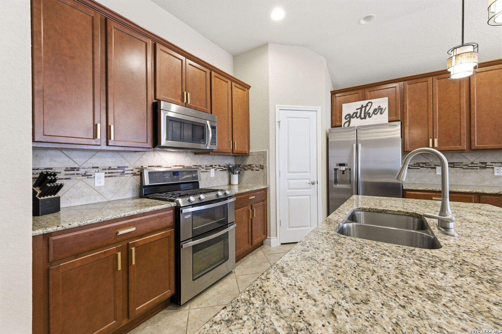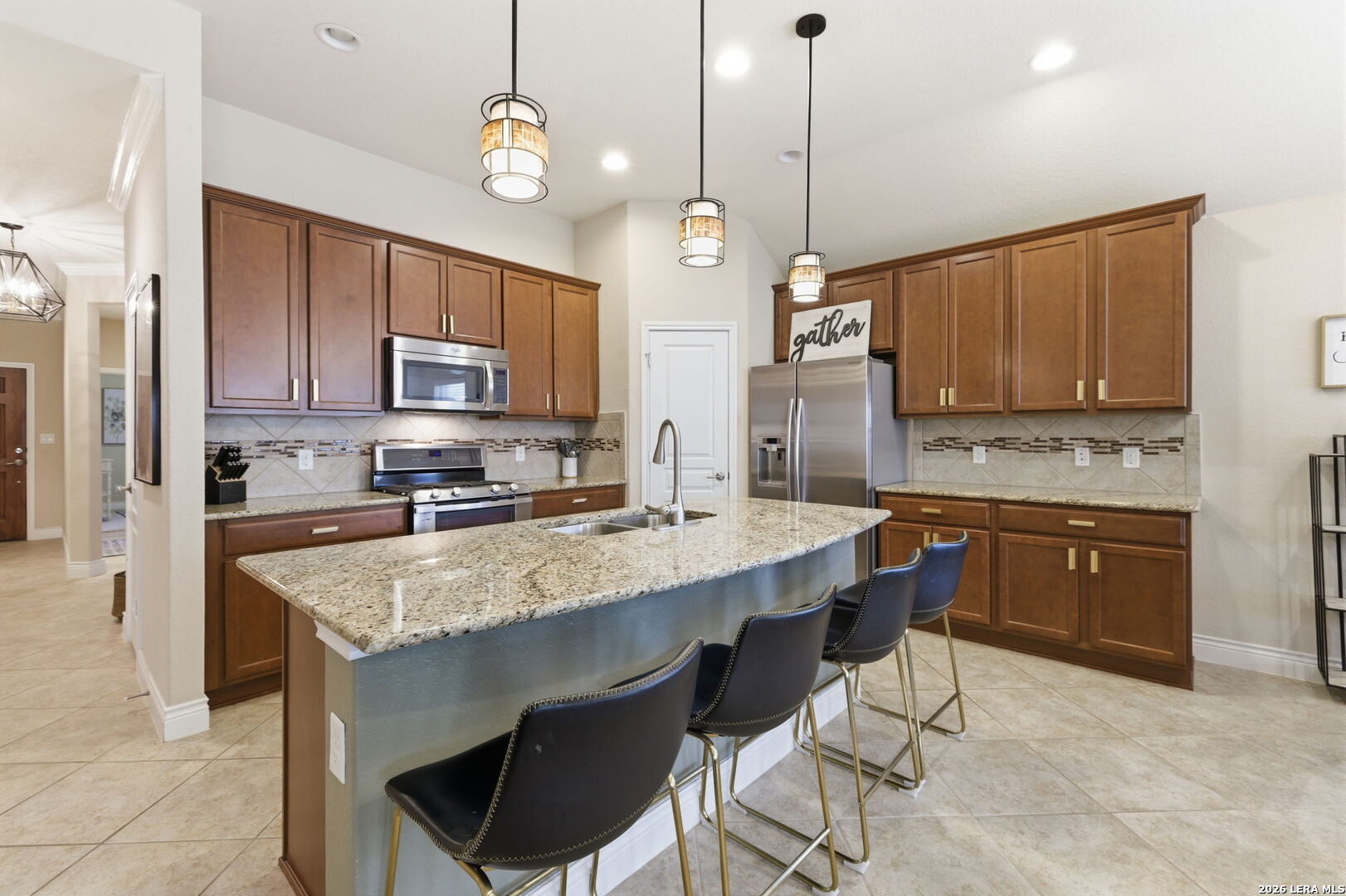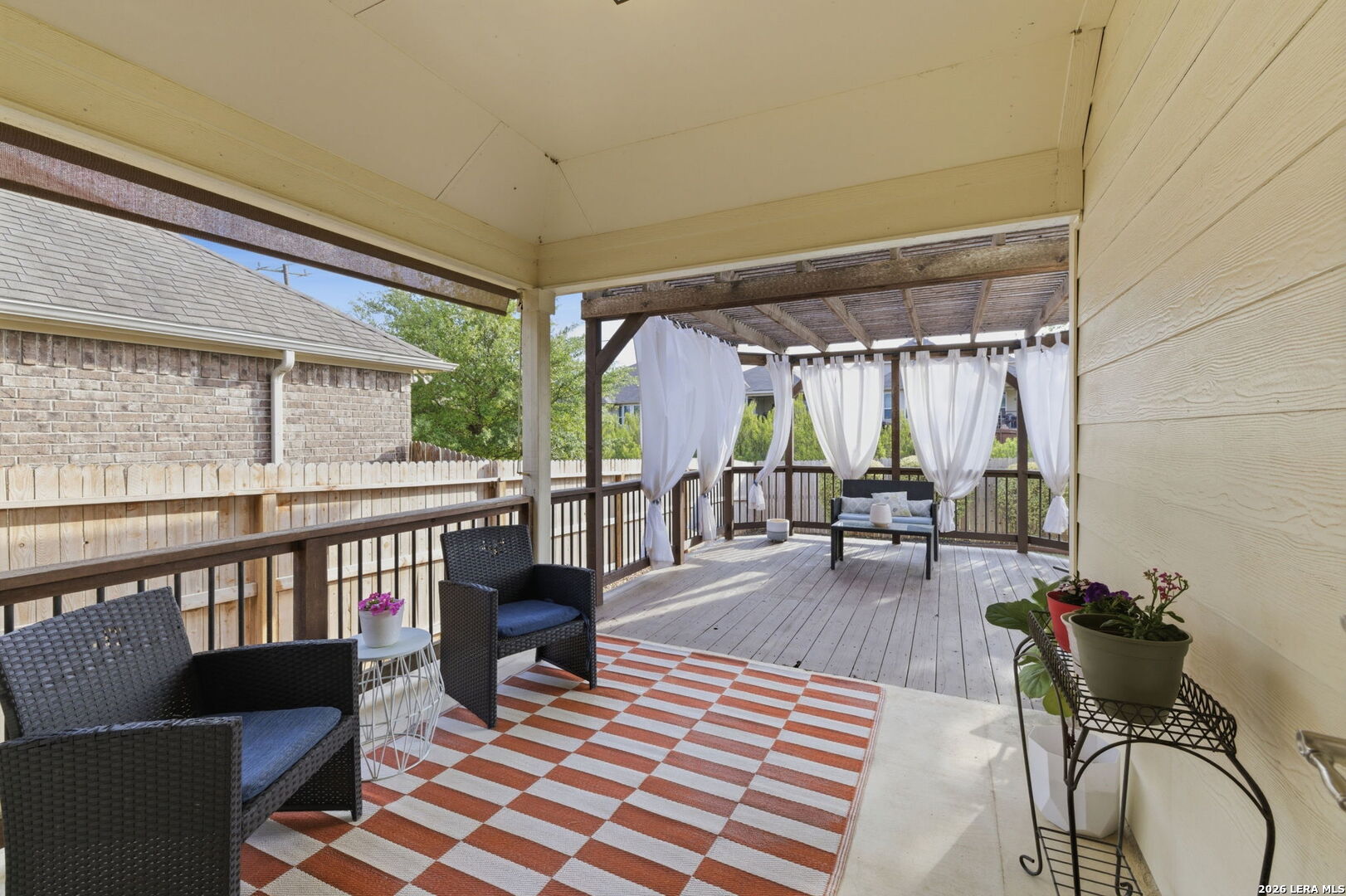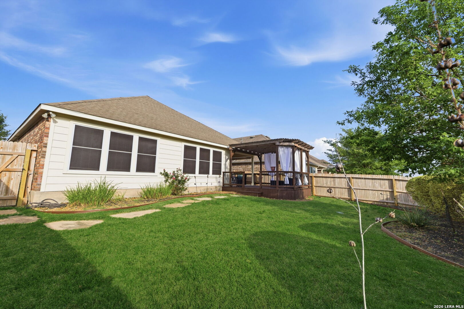 Welcome to 27455 Camino Haven, a beautifully designed single story home built in 2013, located in a gated community, featuring 3 bedrooms, 2 bathrooms, just under 1,800 SF, double oven, a large granite kitchen island, a gas cooktop, stainless steel appliances, wood-like laminate flooring in the family room, large tile flooring in the entry, kitchen and walking areas, tall baseboards, a split bedroom design (allowing for privacy in the primary bedroom) and much more. There is even a built-in tech center/small office situated near the kitchen and family room for extra convenience. The primary suite is quite spacious and offers a 5 piece bathroom with double vanities (granite counters), a walk-in shower with a glass surround, a soaking tub and a spacious walk-in closet. The guest bedrooms are located on the opposite wing of the primary bedroom and share a guest bathroom equipped with a double vanity and a tile shower. When you step into the backyard, you are greeted with a large, custom outdoor deck/pergola, perfect for outdoor dining and entertaining. The recently power-washed fence looks great as does the landscaping/vegetation. The spacious garage (featuring a 2.5 car tandem) is another nice feature as it allows for plenty of storage and has an epoxy flooring. Walk to the community pool and park within minutes and also enjoy the Boerne ISD schools! If you are in the market for a single story home that is well maintained, a comfortable lifestyle in the Boerne ISD at an affordable price, put 27455 Camino Haven on your short list!