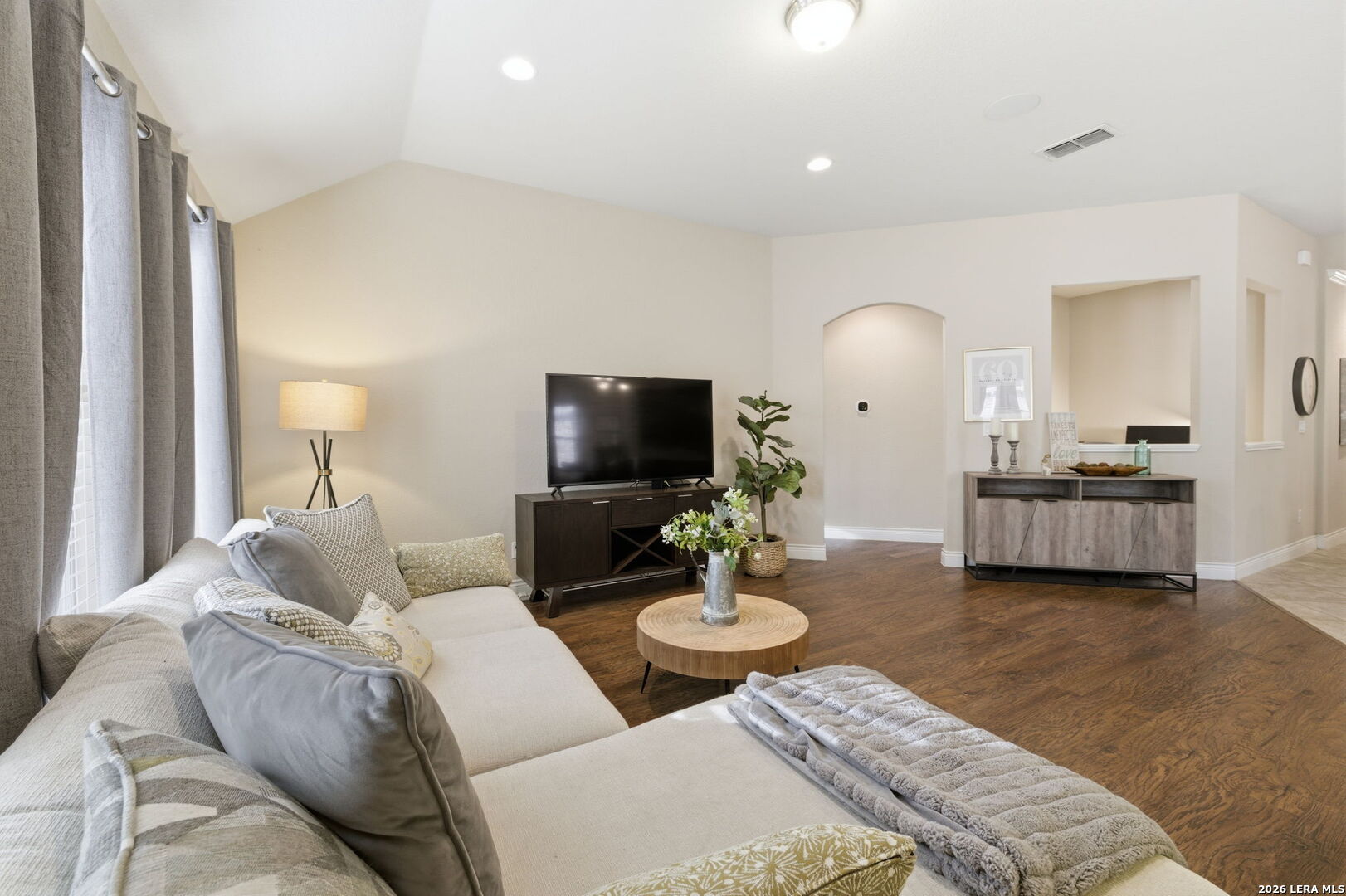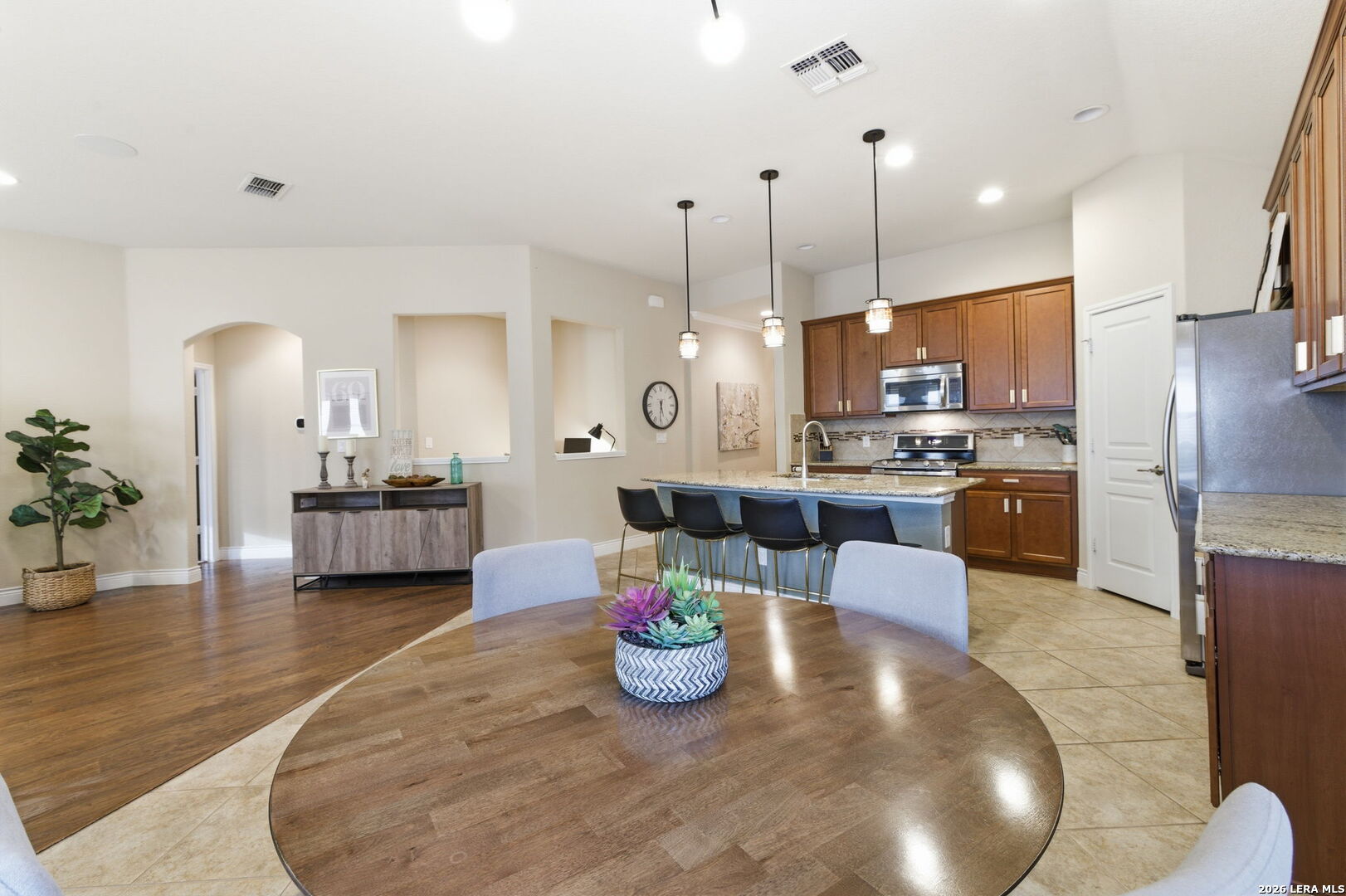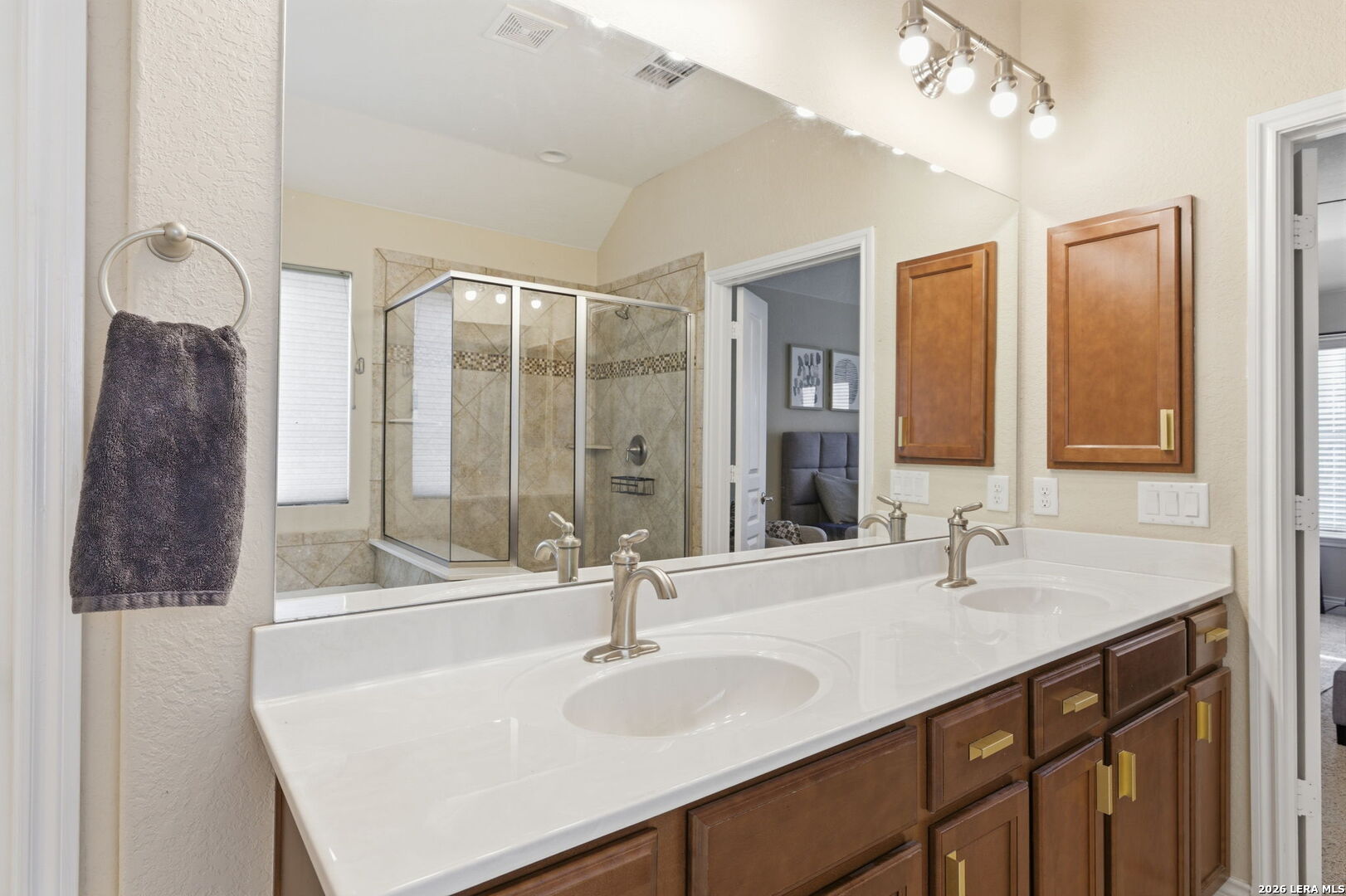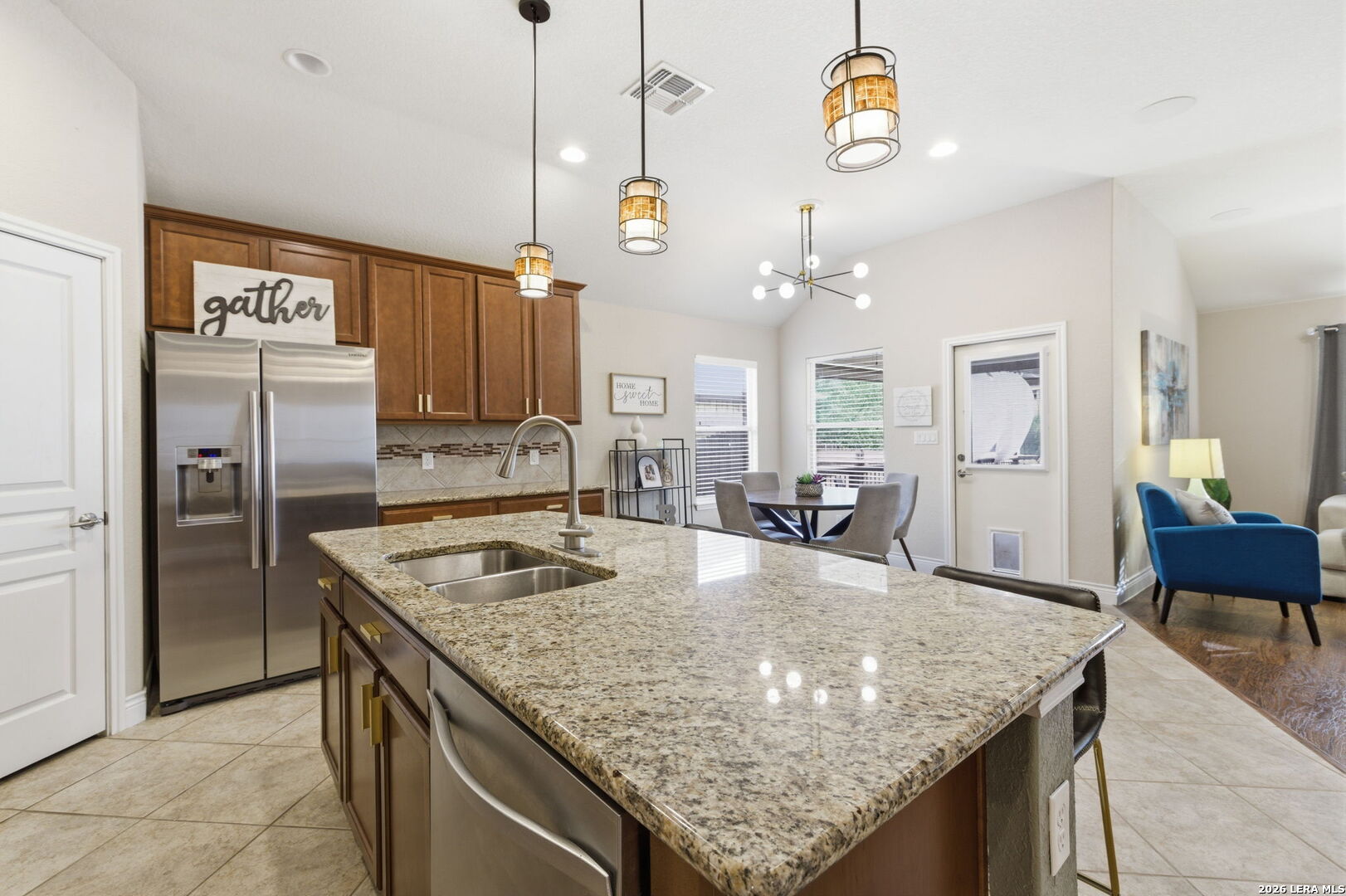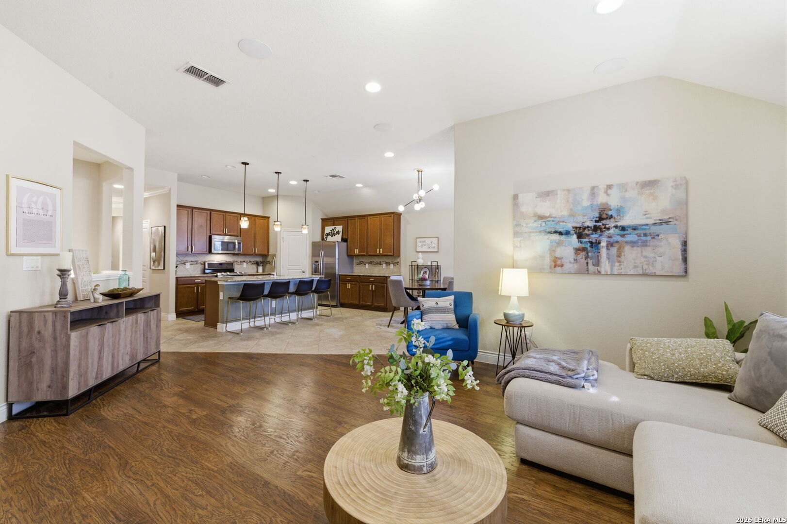 Welcome to 27455 Camino Haven, a beautifully designed single story home built in 2013, located in a gated community, featuring 3 bedrooms, 2 bathrooms, just under 1,800 SF, double oven, a large granite kitchen island, a gas cooktop, stainless steel appliances, wood-like laminate flooring in the family room, large tile flooring in the entry, kitchen and walking areas, tall baseboards, a split bedroom design (allowing for privacy in the primary bedroom) and much more. There is even a built-in tech center/small office situated near the kitchen and family room for extra convenience. The primary suite is quite spacious and offers a 5 piece bathroom with double vanities (granite counters), a walk-in shower with a glass surround, a soaking tub and a spacious walk-in closet. The guest bedrooms are located on the opposite wing of the primary bedroom and share a guest bathroom equipped with a double vanity and a tile shower. When you step into the backyard, you are greeted with a large, custom outdoor deck/pergola, perfect for outdoor dining and entertaining. The recently power-washed fence looks great as does the landscaping/vegetation. The spacious garage (featuring a 2.5 car tandem) is another nice feature as it allows for plenty of storage and has an epoxy flooring. Walk to the community pool and park within minutes and also enjoy the Boerne ISD schools! If you are in the market for a single story home that is well maintained, a comfortable lifestyle in the Boerne ISD at an affordable price, put 27455 Camino Haven on your short list!