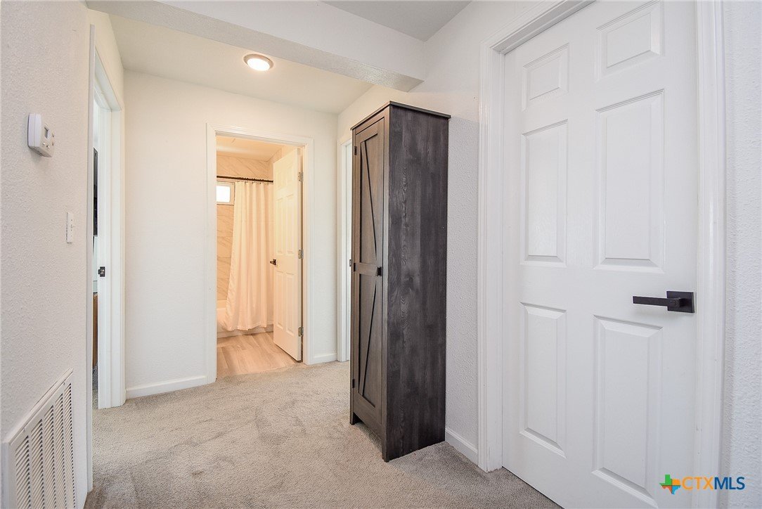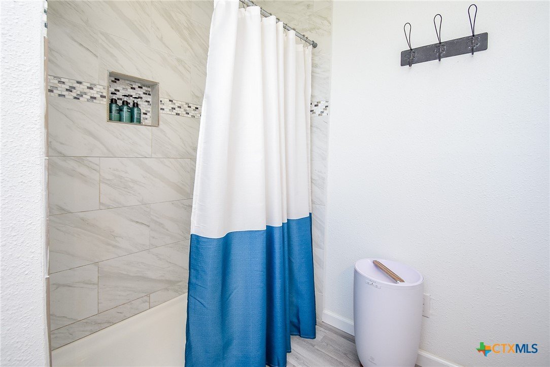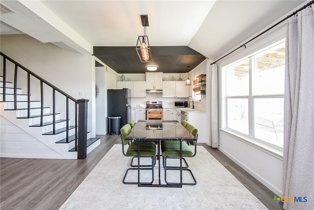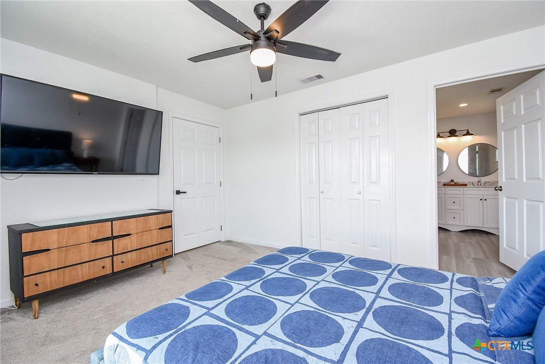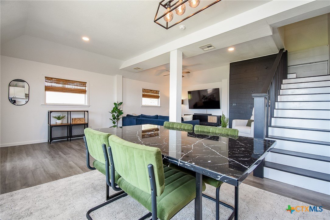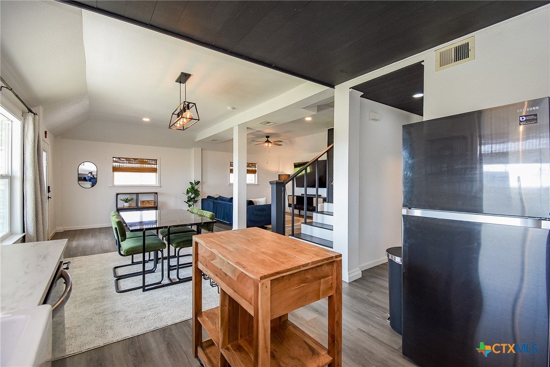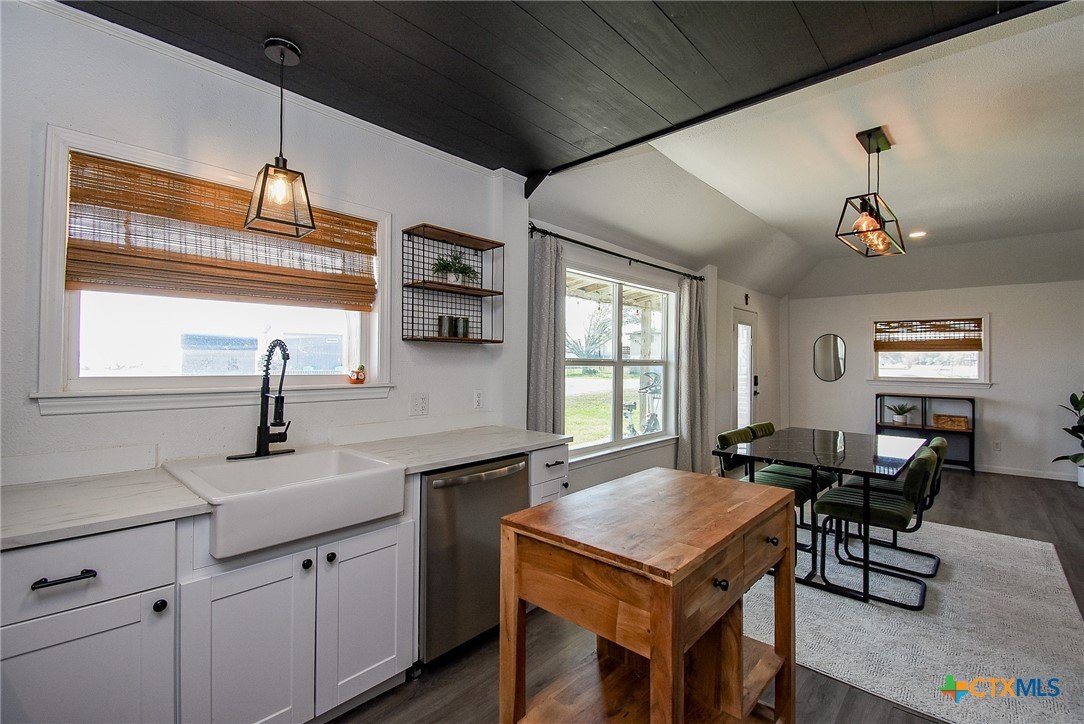 Discover this charming waterview home just one block from the water in the gated Cape Carancahua community! Perfect as a weekend getaway or primary residence, this coastal retreat offers farmhouse charm with shiplap accents, a tin roof, and a wrap-around porch. Inside, an open floor plan connects the kitchen, living, and dining areas, creating a bright, airy atmosphere with a modern white and black color scheme. Upstairs, find a cozy reading nook and three bedrooms with two full baths. The expansive exterior features two double-wide driveways, RV hookups, a large yard, and a 12'x24' storage building on two premium corner lots. Enjoy fantastic community amenities, including a boat ramp, fishing piers, playground, community center, outdoor pavilion, tennis courts, and two swimming pools.