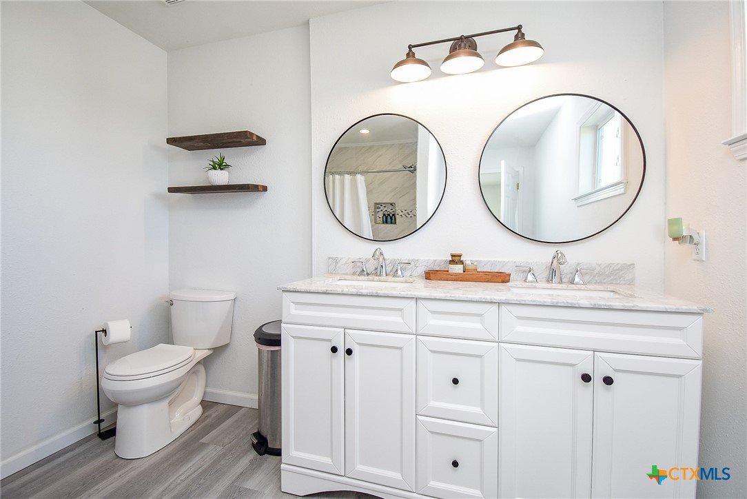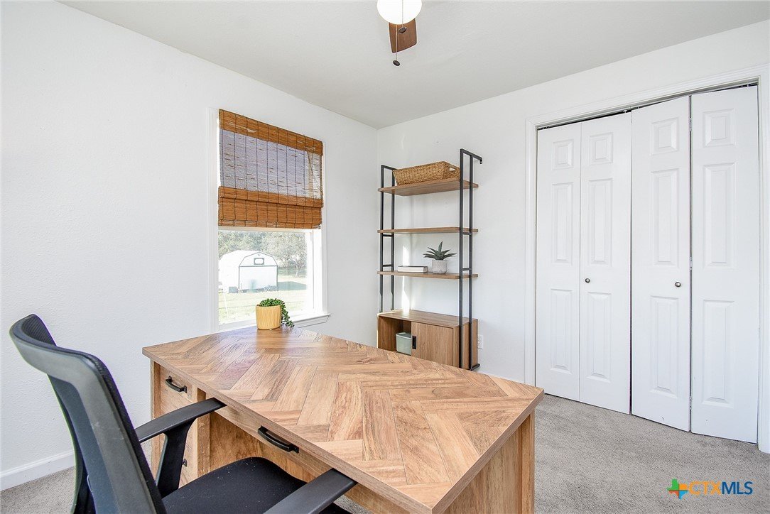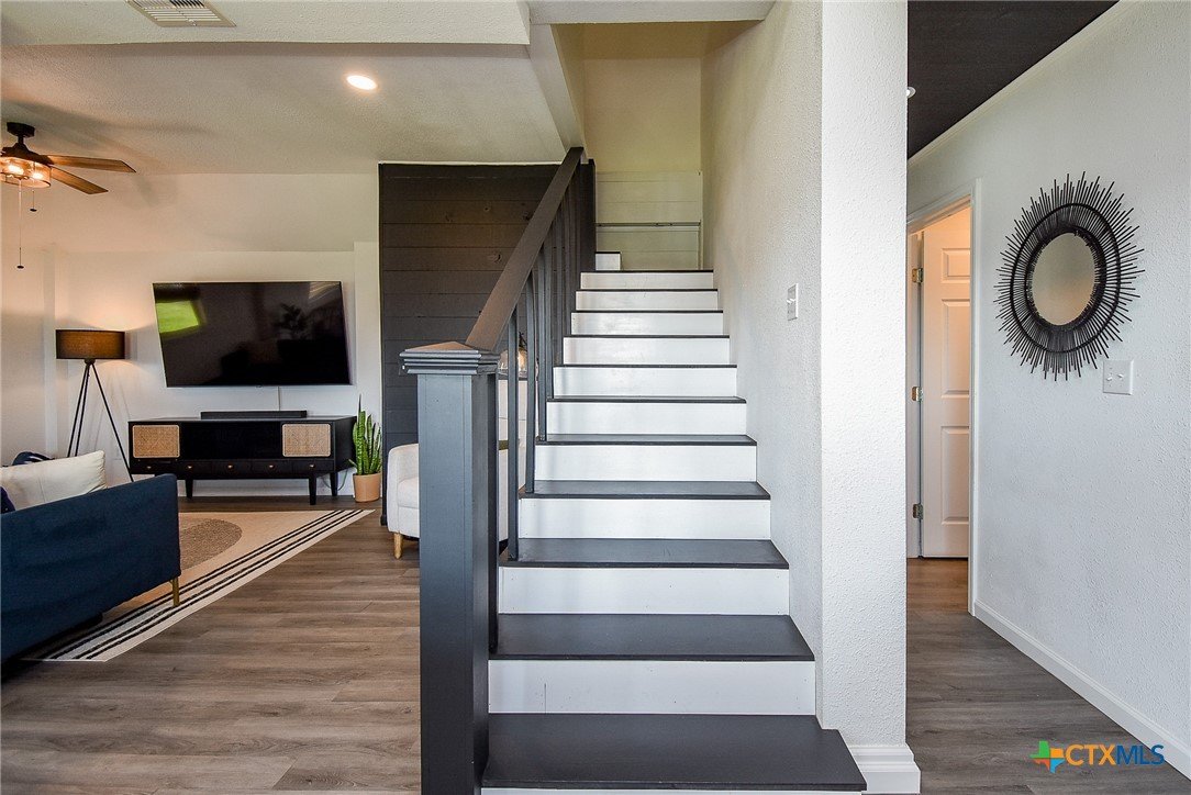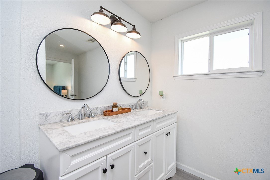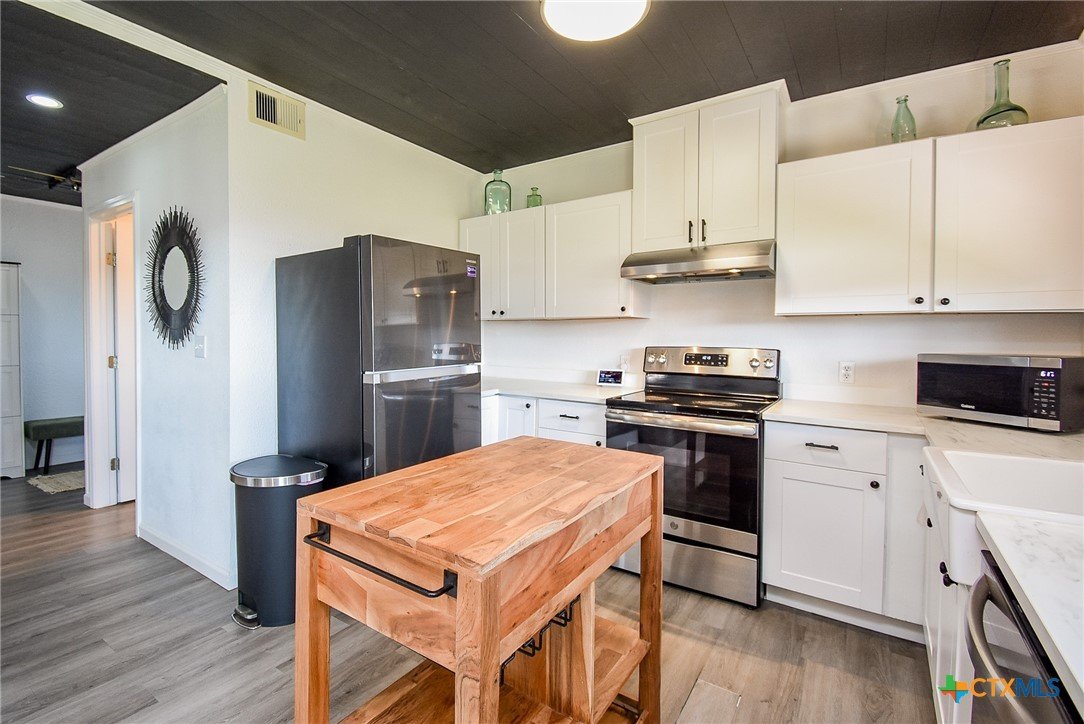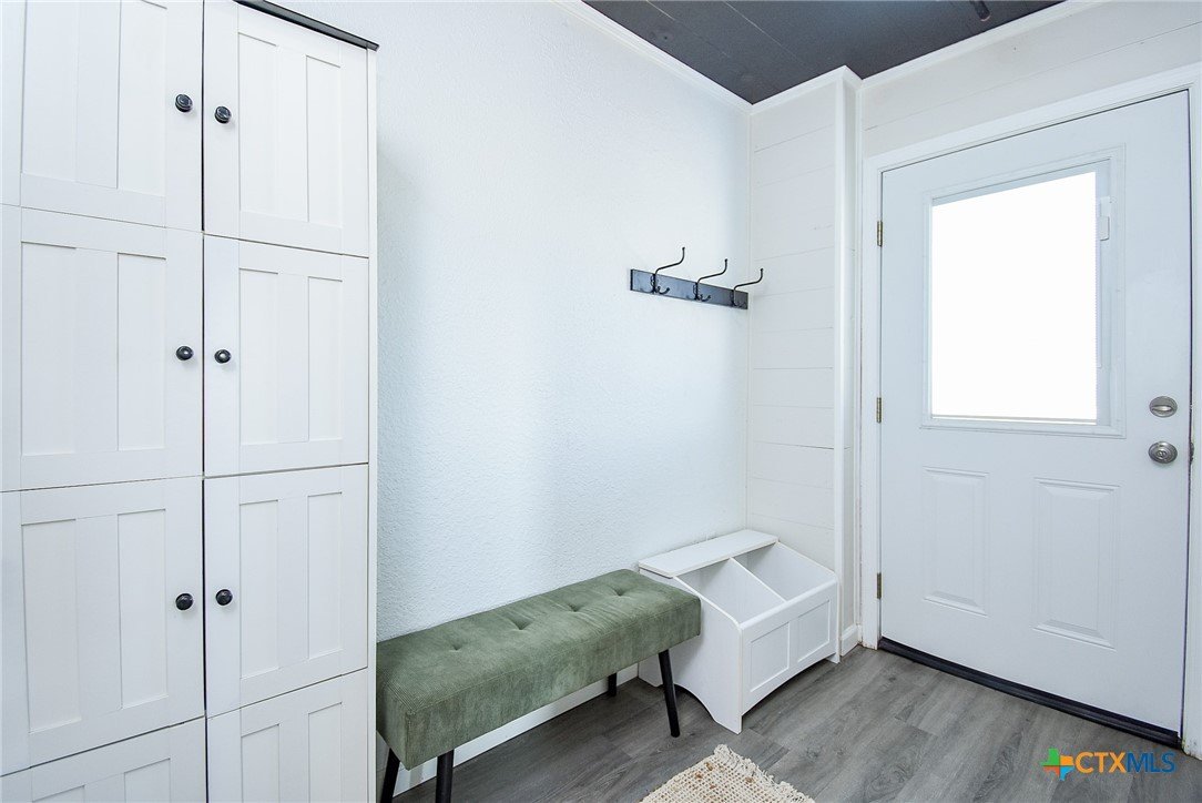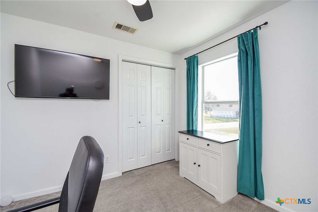 Discover this charming waterview home just one block from the water in the gated Cape Carancahua community! Perfect as a weekend getaway or primary residence, this coastal retreat offers farmhouse charm with shiplap accents, a tin roof, and a wrap-around porch. Inside, an open floor plan connects the kitchen, living, and dining areas, creating a bright, airy atmosphere with a modern white and black color scheme. Upstairs, find a cozy reading nook and three bedrooms with two full baths. The expansive exterior features two double-wide driveways, RV hookups, a large yard, and a 12'x24' storage building on two premium corner lots. Enjoy fantastic community amenities, including a boat ramp, fishing piers, playground, community center, outdoor pavilion, tennis courts, and two swimming pools.