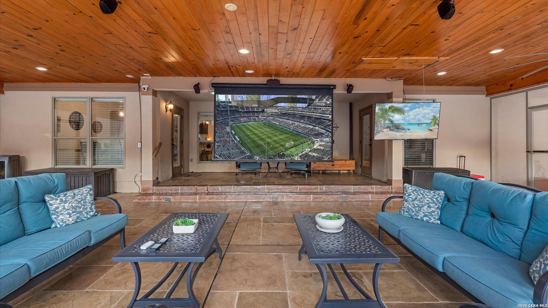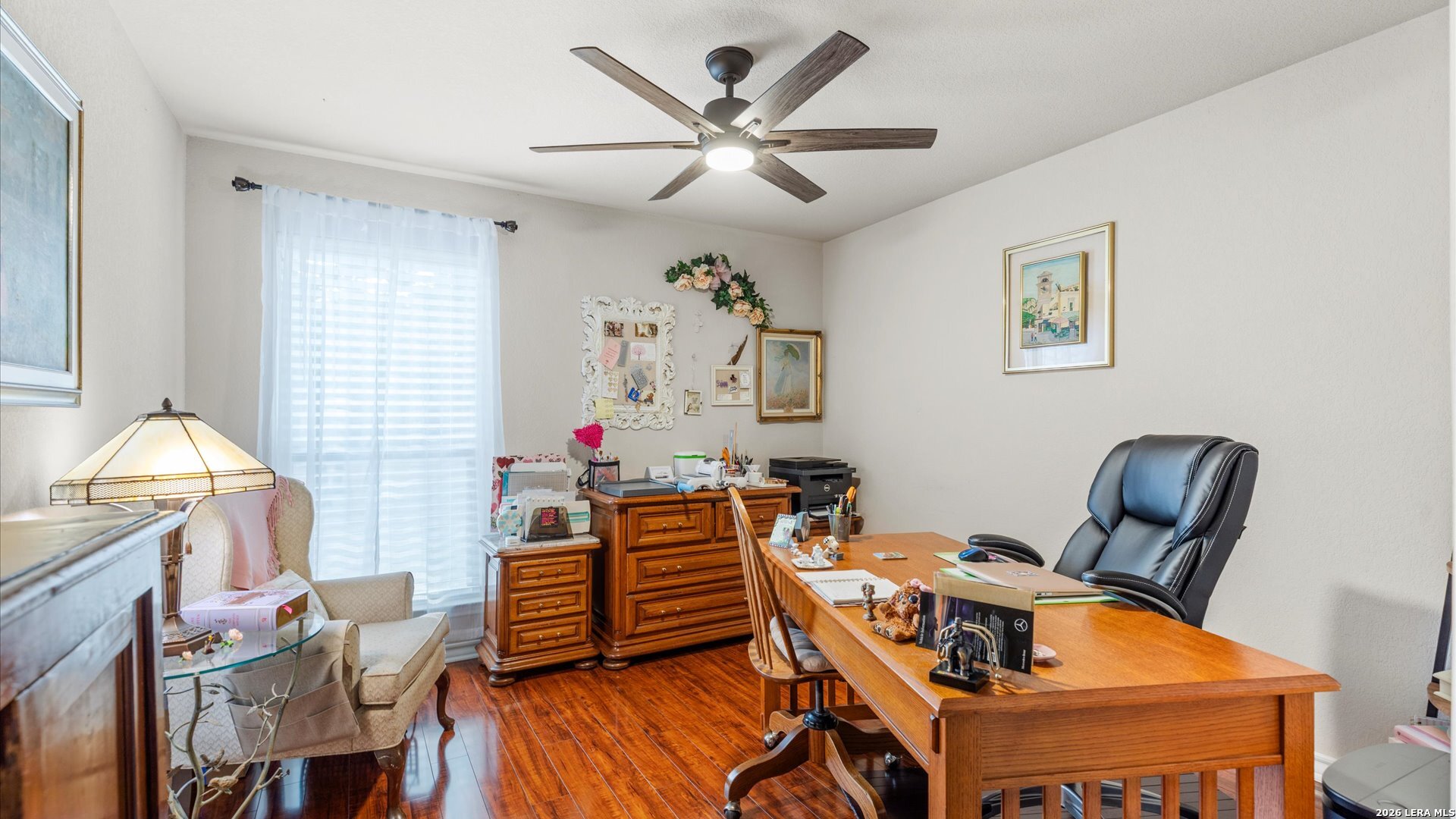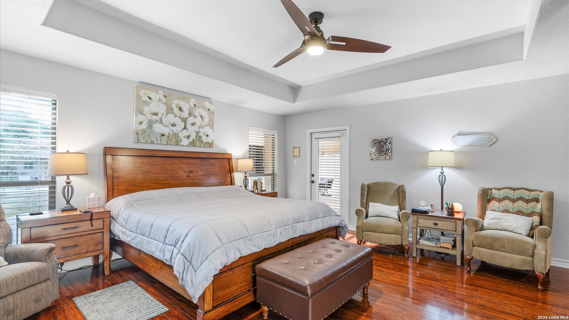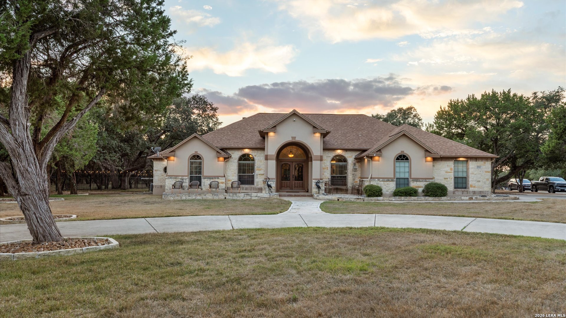 This exquisite hill country home is nestled in an exclusive gated community, offering 3 bedrooms, 3.5 bathrooms, and 2943 square feet of thoughtfully designed living space. A dedicated office with a closet provides the flexibility to serve as a 4th bedroom, currently being used as a family room. The spacious living area features a sophisticated fireplace, creating a warm and inviting atmosphere. The bright and airy kitchen is filled with natural light and boasts abundant cabinet space, expansive counter space, along with a large island perfect for both intimate gatherings and elegant entertaining. The large primary suite is a true sanctuary, featuring private outdoor access and a luxurious en-suite bathroom complete with separate his and hers vanities, a soaking garden tub, a separate walk in shower, and a walk in closet with built-ins. Designed with entertainment in mind, the home also features a formal dining room space and an incredible outdoor living area designed for year-round enjoyment. The expansive covered patio is enhanced with remote controlled electric screens, a fully equipped outdoor kitchen, and a projector with movie screen, creating the ultimate setting for al fresco dining and entertaining family and friends. The backyard oasis showcases a sparkling pool and spa with waterfall, ambient outdoor lighting, and a cozy firepit for relaxing under the Texas sky. Car enthusiasts and hobbyists will appreciate the 2 car attached garage plus a detached 2 car garage offering ample space for vehicles, storage or a workshop. Ideally located just minutes from the dining, shopping, and entertainment of New Braunfels and Gruene, with convenient access to San Antonio, this home offers the perfect blend of privacy, luxury, and accessibility. Schedule your private tour today and experience the elevated lifestyle this exceptional property has to offer.