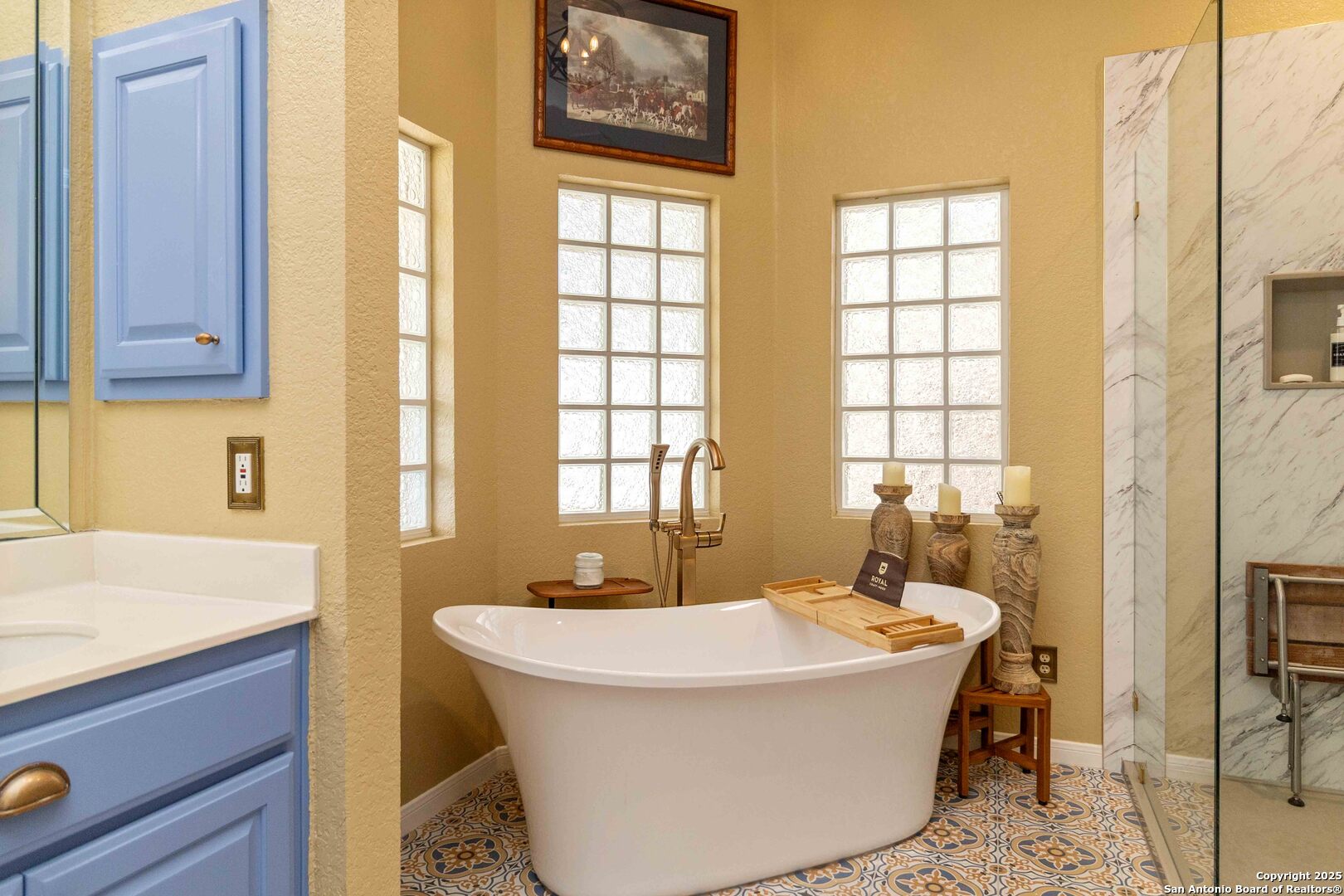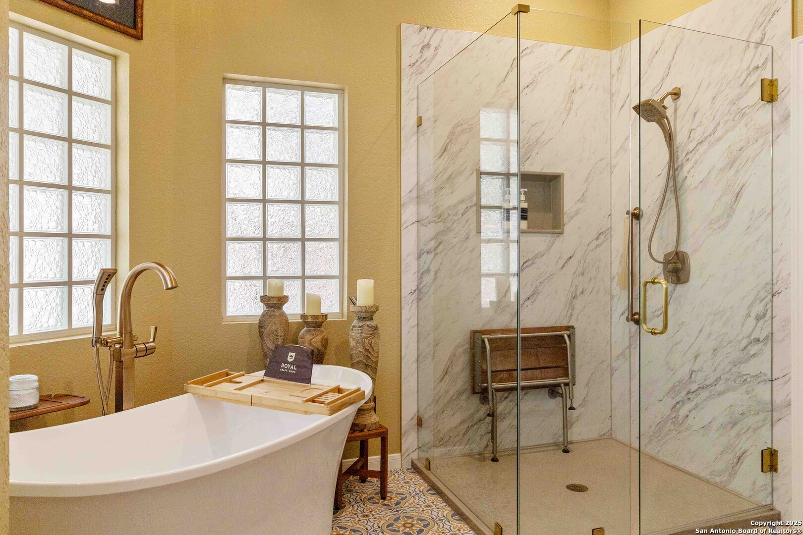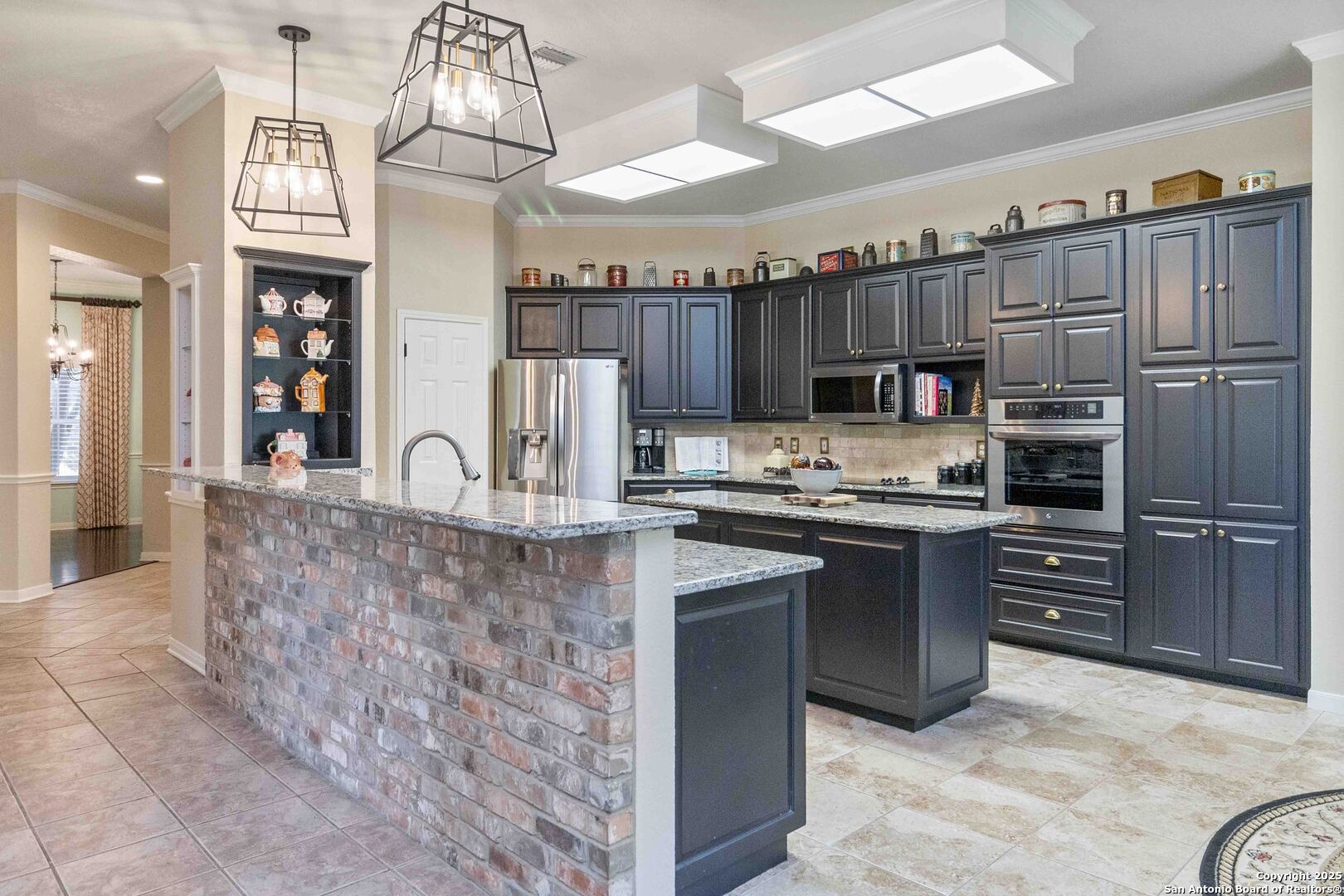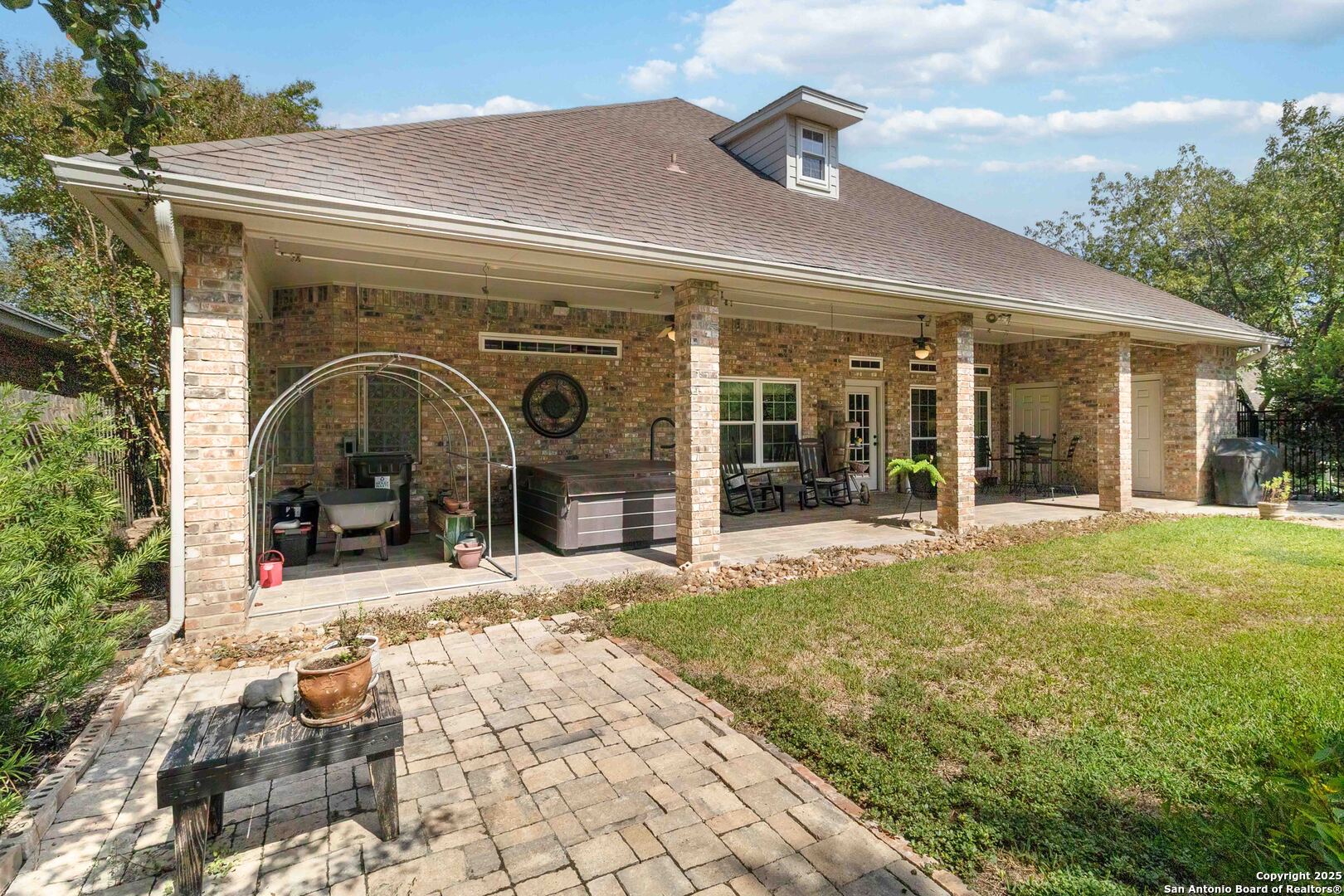 MAJOR PRICE IMPROVEMENT! This beautifully maintained 5-bedroom, 3-bathroom residence offers an impressive 4,021 square feet of luxurious living space, perfect for families seeking comfort and style. Nestled in the tranquil gated community of Gardens at Hunters Creek, this home combines privacy with convenience, making it an ideal retreat. As you step inside, you'll be greeted by an inviting foyer full of built-ins and leads to two guest bedrooms and a full bath. Following the foyer around the bend takes you to the impeccably styled formal dining room. The expansive open-concept layout seamlessly connects the living, dining, and kitchen areas, all of which feature high ceilings. The spacious living room is perfect for entertaining, featuring large windows that fill the space with natural light and provide picturesque views of the greenbelt . The gourmet kitchen is a chef's delight, equipped with brand new modern appliances, ample cabinetry that was just painted, and a generous island. The kitchen layout highlights a breakfast nook and a breakfast bar. Whether you're hosting family gatherings or enjoying quiet evenings, this kitchen is designed for both functionality and style. Retreat to the well-appointed primary suite, complete with a walk-in closet full of built-ins, and a recently remodeled en-suite bathroom featuring dual vanities, a soaking tub, and a large separate shower. Upstairs you will find an additional large bedroom and full bath. The additional upstairs bedrooms provide plenty of space for family and guests; or could be used as flex space for an exercise room or a theatre room. Step outside to discover your full length covered patio with no back neighbors on this greenbelt lot. Enjoy the nicely landscaped yard in peace and privacy. Take advantage of the small greenhouse to hone your gardening skills. Gas grill conveys and hot tub is negotiable. The outdoor space is perfect for entertaining or simply unwinding after a long day. Located just 2 minutes from HEB, additional shopping, dining, and top-rated schools, this home offers both convenience and tranquility. Don't miss your chance to own this exceptional property in a highly sought-after community. Schedule your private tour today and experience the perfect blend of luxury and comfort! Preferred lender discount available. Home is under an active home warranty that can transfer to the buyer.