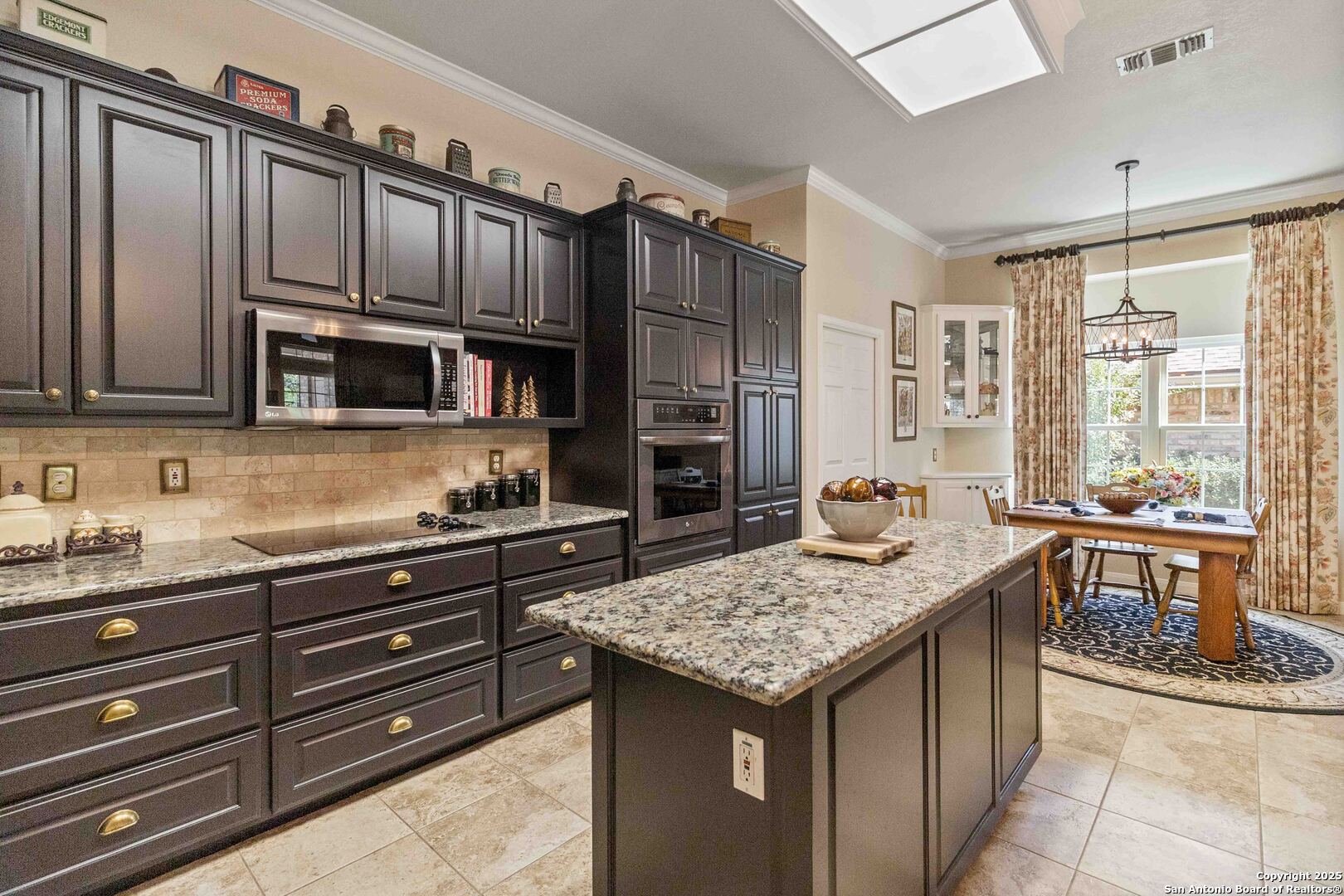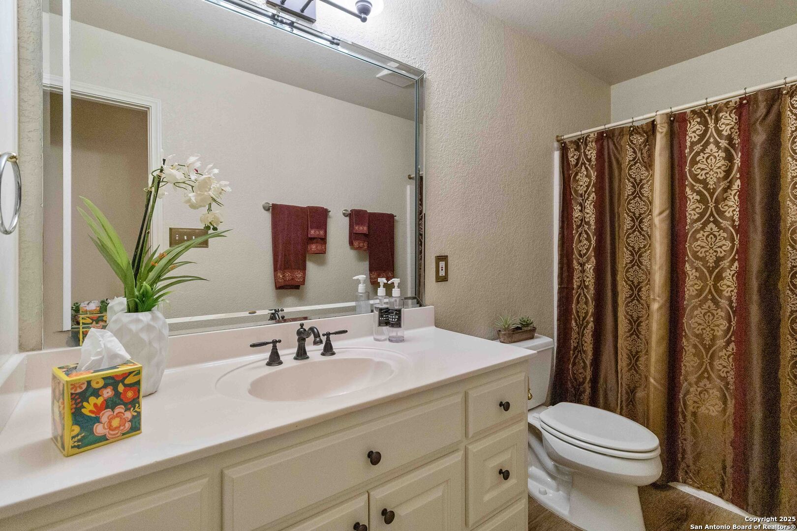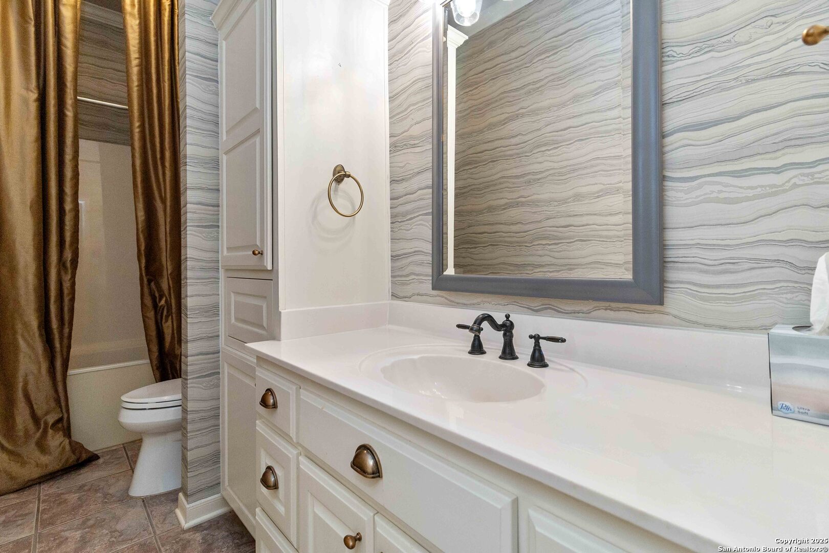 MAJOR PRICE IMPROVEMENT! This beautifully maintained 5-bedroom, 3-bathroom residence offers an impressive 4,021 square feet of luxurious living space, perfect for families seeking comfort and style. Nestled in the tranquil gated community of Gardens at Hunters Creek, this home combines privacy with convenience, making it an ideal retreat. As you step inside, you'll be greeted by an inviting foyer full of built-ins and leads to two guest bedrooms and a full bath. Following the foyer around the bend takes you to the impeccably styled formal dining room. The expansive open-concept layout seamlessly connects the living, dining, and kitchen areas, all of which feature high ceilings. The spacious living room is perfect for entertaining, featuring large windows that fill the space with natural light and provide picturesque views of the greenbelt . The gourmet kitchen is a chef's delight, equipped with brand new modern appliances, ample cabinetry that was just painted, and a generous island. The kitchen layout highlights a breakfast nook and a breakfast bar. Whether you're hosting family gatherings or enjoying quiet evenings, this kitchen is designed for both functionality and style. Retreat to the well-appointed primary suite, complete with a walk-in closet full of built-ins, and a recently remodeled en-suite bathroom featuring dual vanities, a soaking tub, and a large separate shower. Upstairs you will find an additional large bedroom and full bath. The additional upstairs bedrooms provide plenty of space for family and guests; or could be used as flex space for an exercise room or a theatre room. Step outside to discover your full length covered patio with no back neighbors on this greenbelt lot. Enjoy the nicely landscaped yard in peace and privacy. Take advantage of the small greenhouse to hone your gardening skills. Gas grill conveys and hot tub is negotiable. The outdoor space is perfect for entertaining or simply unwinding after a long day. Located just 2 minutes from HEB, additional shopping, dining, and top-rated schools, this home offers both convenience and tranquility. Don't miss your chance to own this exceptional property in a highly sought-after community. Schedule your private tour today and experience the perfect blend of luxury and comfort! Preferred lender discount available. Home is under an active home warranty that can transfer to the buyer.