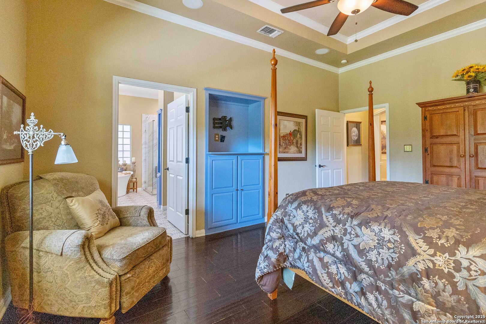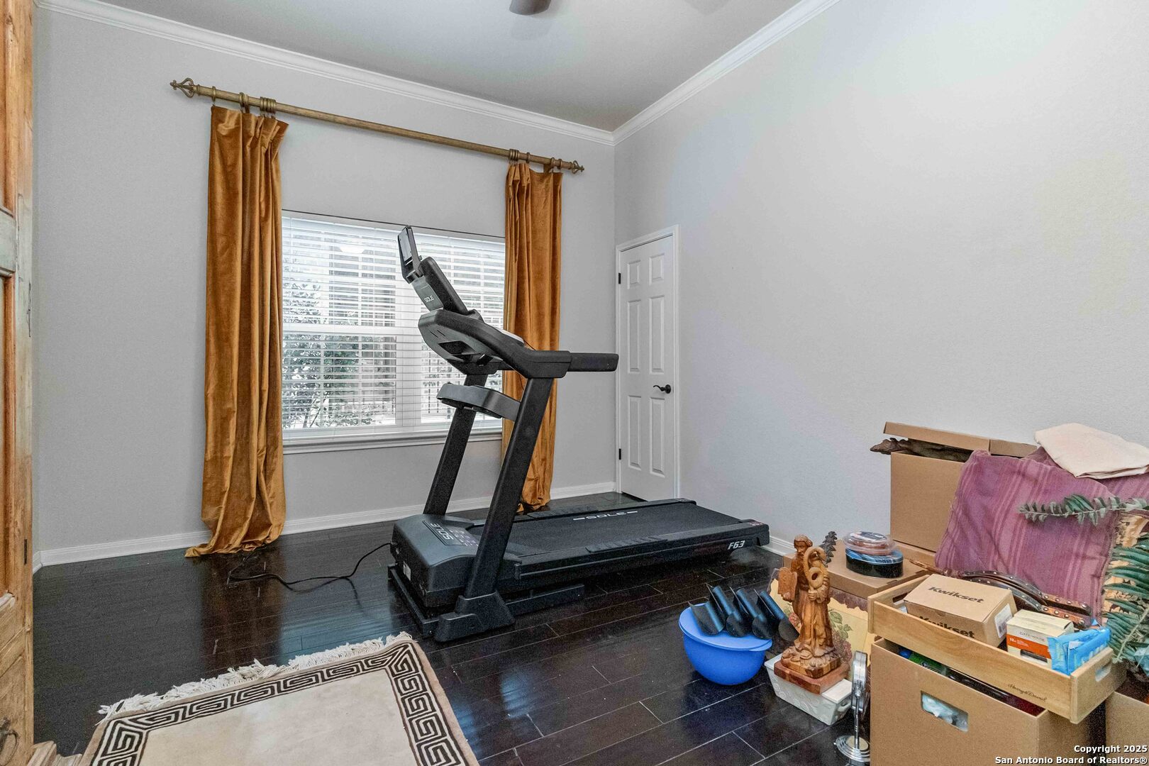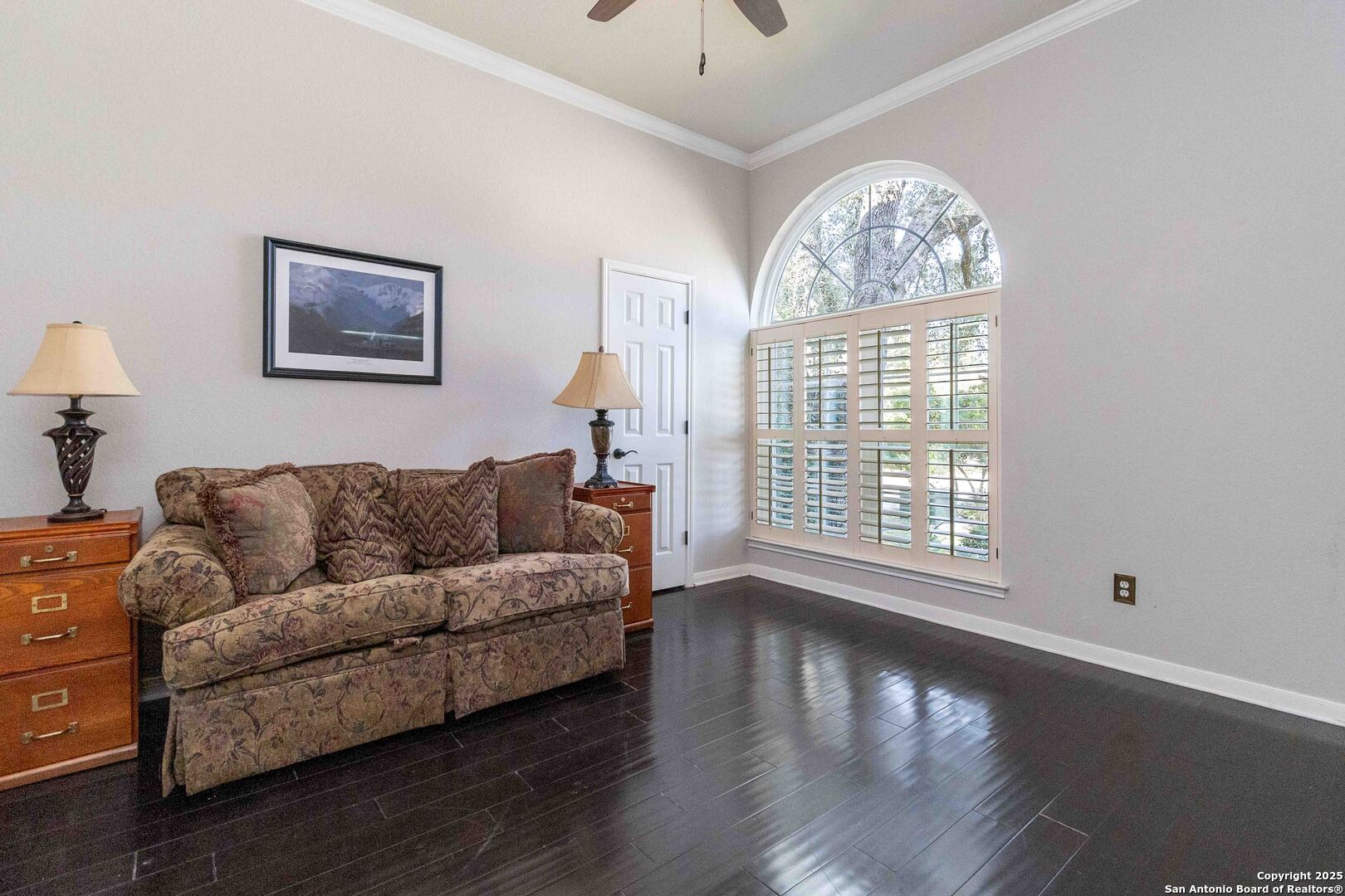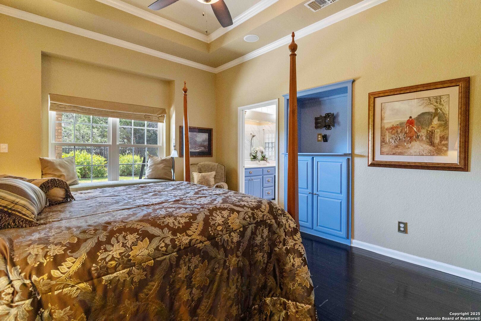 MAJOR PRICE IMPROVEMENT! This beautifully maintained 5-bedroom, 3-bathroom residence offers an impressive 4,021 square feet of luxurious living space, perfect for families seeking comfort and style. Nestled in the tranquil gated community of Gardens at Hunters Creek, this home combines privacy with convenience, making it an ideal retreat. As you step inside, you'll be greeted by an inviting foyer full of built-ins and leads to two guest bedrooms and a full bath. Following the foyer around the bend takes you to the impeccably styled formal dining room. The expansive open-concept layout seamlessly connects the living, dining, and kitchen areas, all of which feature high ceilings. The spacious living room is perfect for entertaining, featuring large windows that fill the space with natural light and provide picturesque views of the greenbelt . The gourmet kitchen is a chef's delight, equipped with brand new modern appliances, ample cabinetry that was just painted, and a generous island. The kitchen layout highlights a breakfast nook and a breakfast bar. Whether you're hosting family gatherings or enjoying quiet evenings, this kitchen is designed for both functionality and style. Retreat to the well-appointed primary suite, complete with a walk-in closet full of built-ins, and a recently remodeled en-suite bathroom featuring dual vanities, a soaking tub, and a large separate shower. Upstairs you will find an additional large bedroom and full bath. The additional upstairs bedrooms provide plenty of space for family and guests; or could be used as flex space for an exercise room or a theatre room. Step outside to discover your full length covered patio with no back neighbors on this greenbelt lot. Enjoy the nicely landscaped yard in peace and privacy. Take advantage of the small greenhouse to hone your gardening skills. Gas grill conveys and hot tub is negotiable. The outdoor space is perfect for entertaining or simply unwinding after a long day. Located just 2 minutes from HEB, additional shopping, dining, and top-rated schools, this home offers both convenience and tranquility. Don't miss your chance to own this exceptional property in a highly sought-after community. Schedule your private tour today and experience the perfect blend of luxury and comfort! Preferred lender discount available. Home is under an active home warranty that can transfer to the buyer.