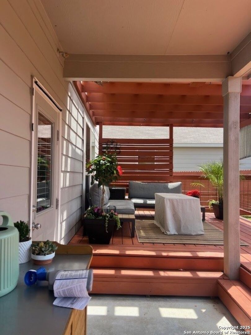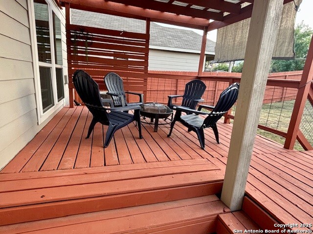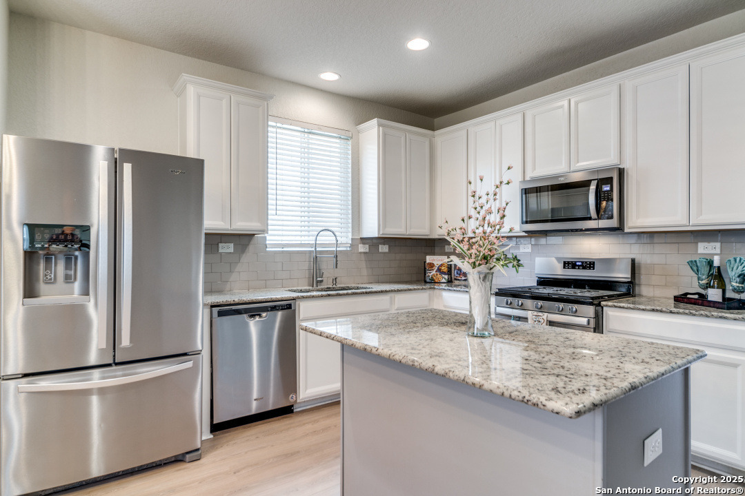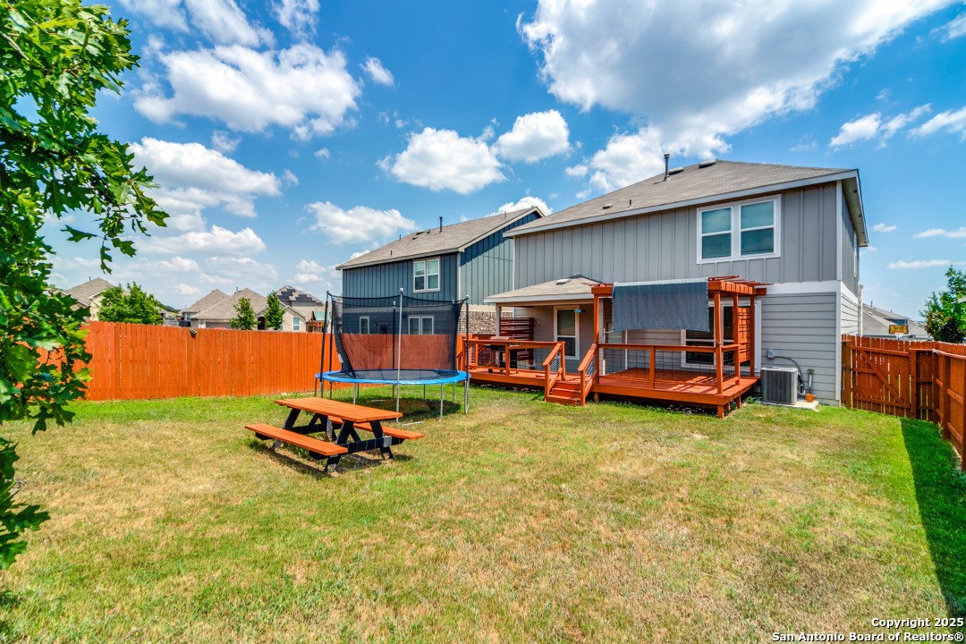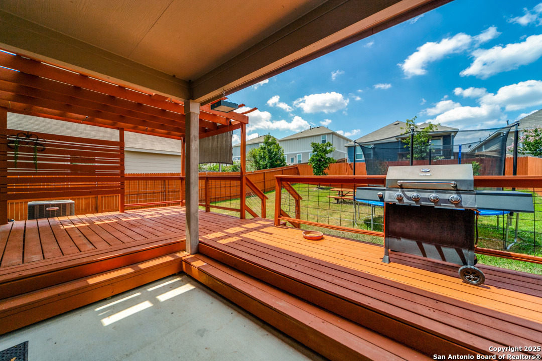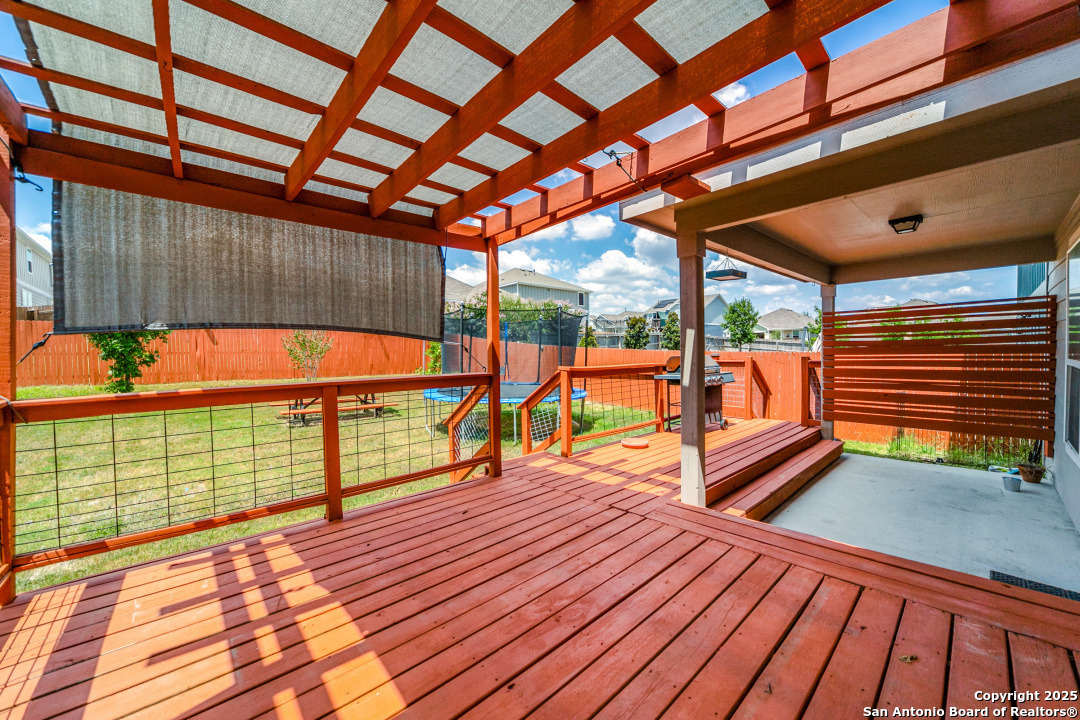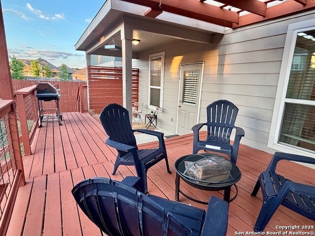 Welcome to Your Dream Home in Cielo Ranch! Discover the perfect blend of comfort, style, and functionality in this stunning 4-bedroom, 3-bath Pulte home, nestled in the highly desirable Cielo Ranch community of Boerne. From the moment you arrive, the updated front door welcomes you with charm and brightness, setting the tone for the beauty that awaits inside. This thoughtfully designed home offers a versatile layout ideal for modern living. A full bedroom and bath on the main level provide the perfect setup for guests, multi-generational living, or a private office. The heart of the home - the gourmet kitchen - features elegant granite countertops, stainless steel appliances, gas cooking, a central island, and a unique coffee bar that's sure to impress. Whether you're hosting or enjoying a quiet morning, this space is designed for it all. Throughout the main living areas, enjoy the warmth of recently installed luxury flooring, 9' ceilings, and an open, inviting atmosphere. Upstairs, retreat to your private primary suite with a massive walk-in closet and a luxurious spa-like walk-in shower. You'll also find a convenient upstairs laundry room, a generously sized loft that functions perfectly as a second living area, game room, or play space, plus two additional bedrooms that share a full bath. Step outside and be amazed by the expansive backyard-a true highlight of this property. Relax under the Pergola-covered deck and patio, perfect for outdoor entertaining or peaceful evenings at home. Additional features include: * Remote control ceiling fans * Smart technology thermostat * Owned water softener * Reverse osmosis system in the kitchen * Refrigerator, washer, and dryer included! All of this, located in the highly acclaimed Boerne ISD, makes this home a rare find. Community Pool and Playground. Don't miss your opportunity to own this beautiful, move-in ready home in Cielo Ranch. Schedule your private tour today - this one won't last!