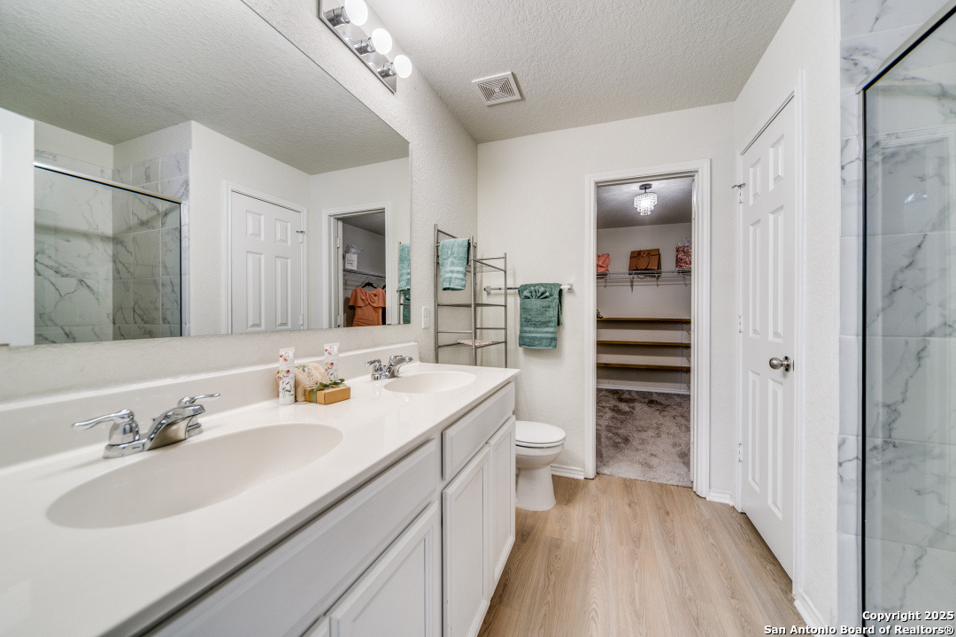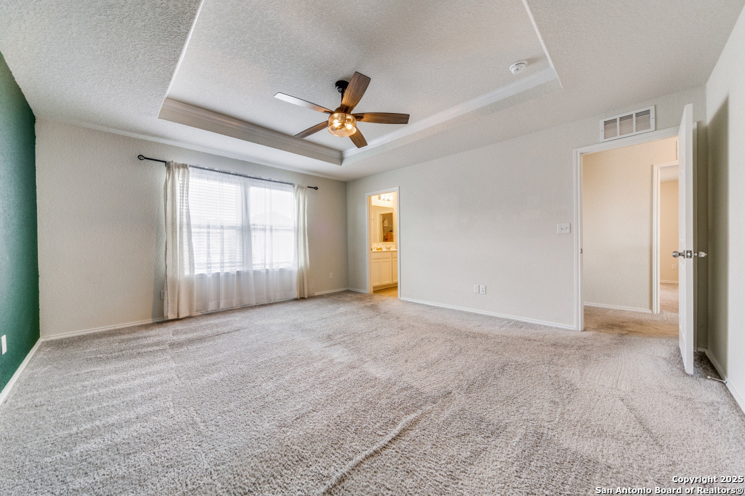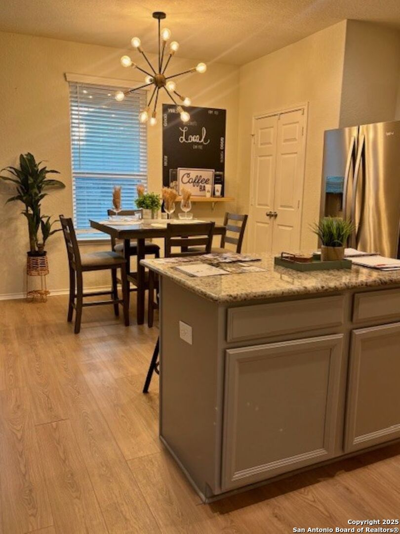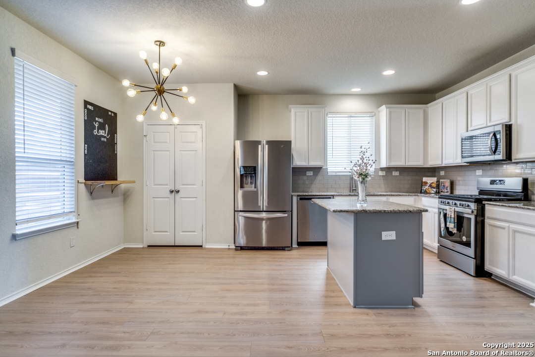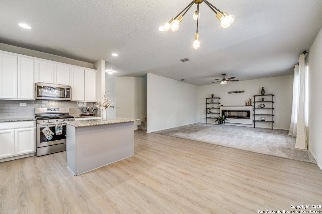 Welcome to Your Dream Home in Cielo Ranch! Discover the perfect blend of comfort, style, and functionality in this stunning 4-bedroom, 3-bath Pulte home, nestled in the highly desirable Cielo Ranch community of Boerne. From the moment you arrive, the updated front door welcomes you with charm and brightness, setting the tone for the beauty that awaits inside. This thoughtfully designed home offers a versatile layout ideal for modern living. A full bedroom and bath on the main level provide the perfect setup for guests, multi-generational living, or a private office. The heart of the home - the gourmet kitchen - features elegant granite countertops, stainless steel appliances, gas cooking, a central island, and a unique coffee bar that's sure to impress. Whether you're hosting or enjoying a quiet morning, this space is designed for it all. Throughout the main living areas, enjoy the warmth of recently installed luxury flooring, 9' ceilings, and an open, inviting atmosphere. Upstairs, retreat to your private primary suite with a massive walk-in closet and a luxurious spa-like walk-in shower. You'll also find a convenient upstairs laundry room, a generously sized loft that functions perfectly as a second living area, game room, or play space, plus two additional bedrooms that share a full bath. Step outside and be amazed by the expansive backyard-a true highlight of this property. Relax under the Pergola-covered deck and patio, perfect for outdoor entertaining or peaceful evenings at home. Additional features include: * Remote control ceiling fans * Smart technology thermostat * Owned water softener * Reverse osmosis system in the kitchen * Refrigerator, washer, and dryer included! All of this, located in the highly acclaimed Boerne ISD, makes this home a rare find. Community Pool and Playground. Don't miss your opportunity to own this beautiful, move-in ready home in Cielo Ranch. Schedule your private tour today - this one won't last!