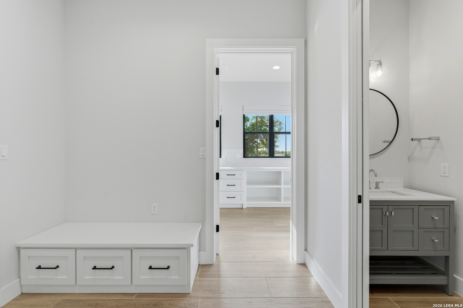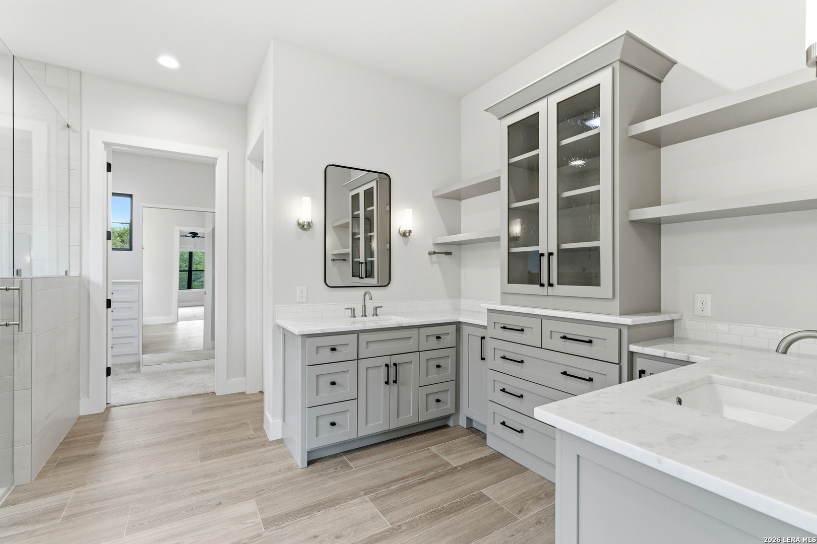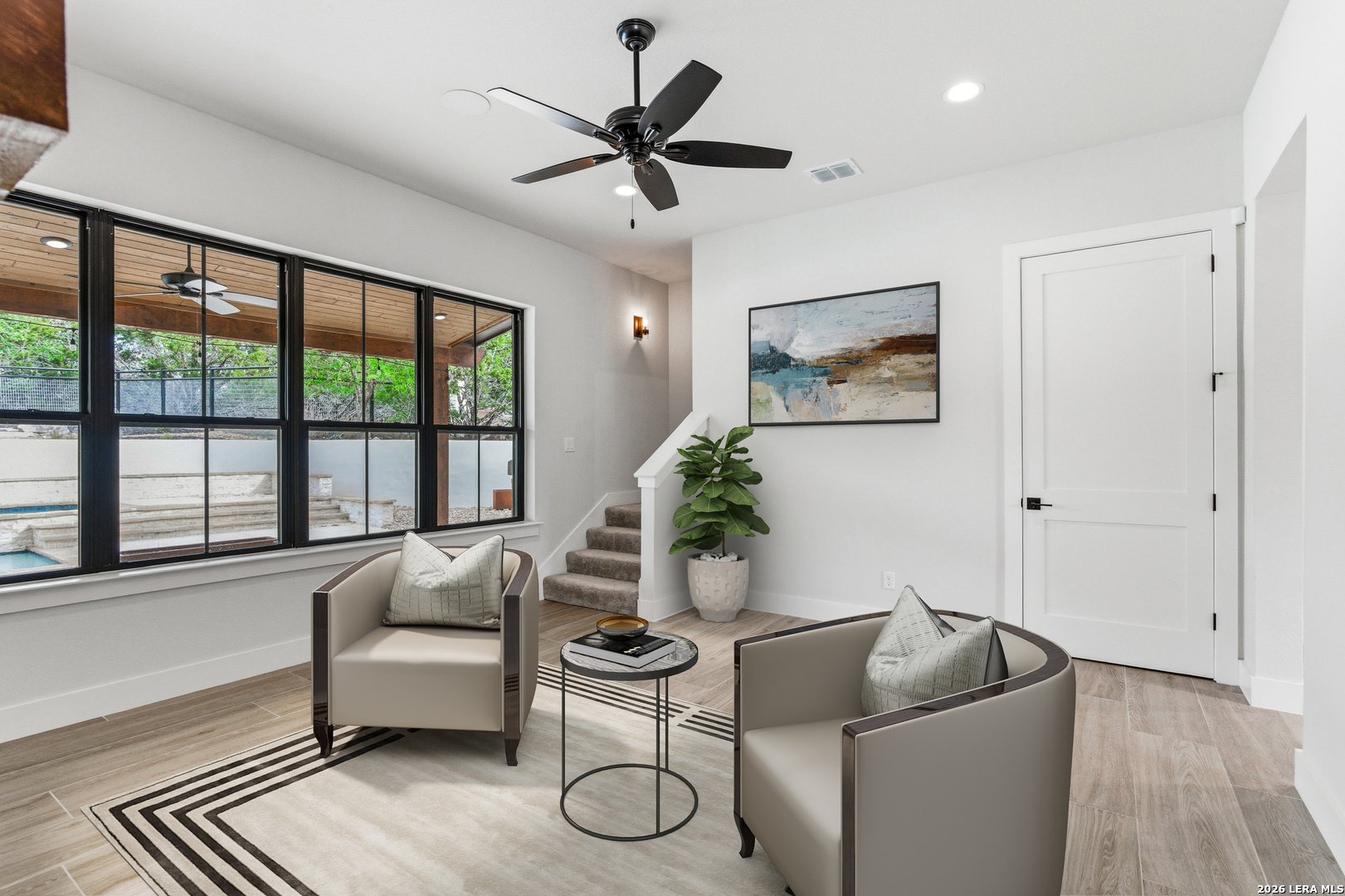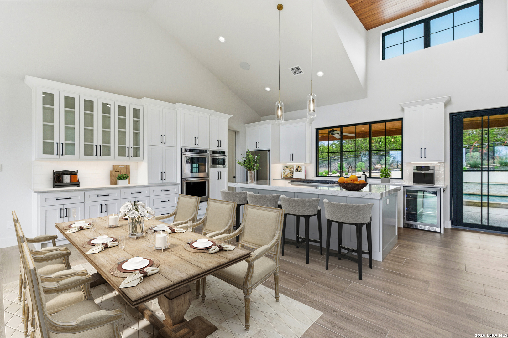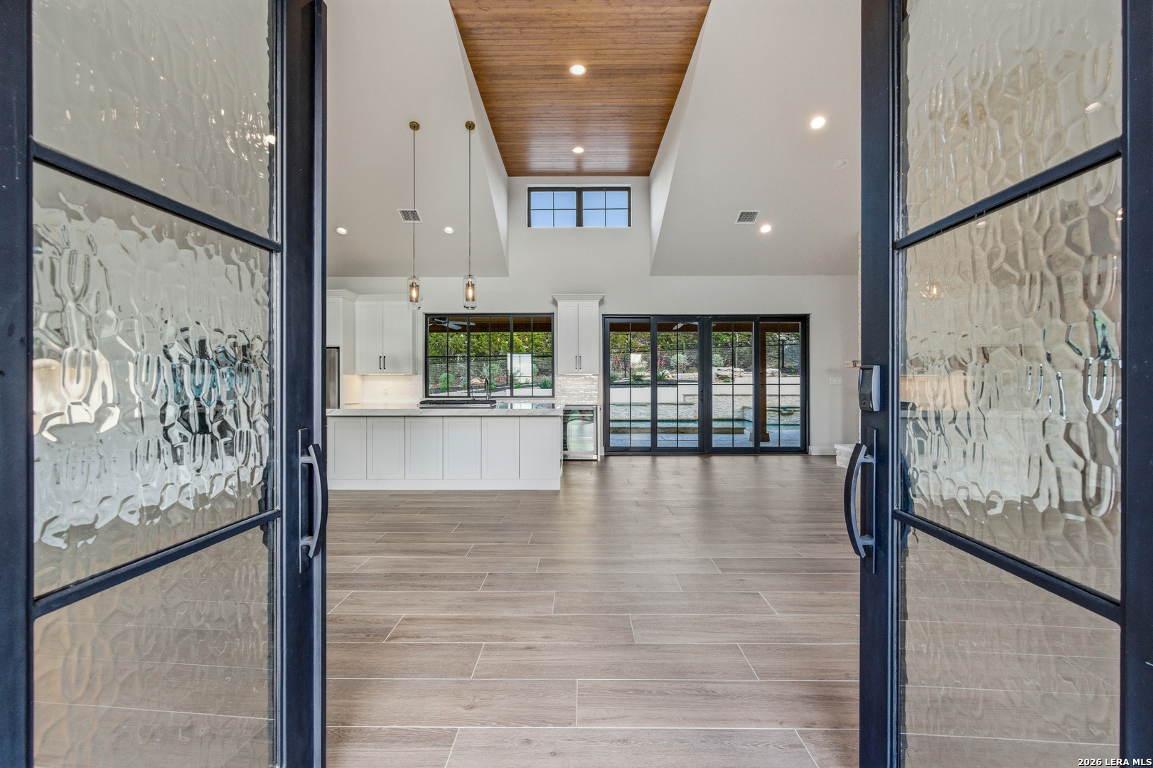 Set behind the gates of Ramble Ridge Ranch on 1.4 private acres, this fully-custom Hill Country modern farmhouse designed by Austin's acclaimed Vanguard Architecture makes a striking first impression with custom iron front doors crafted by San Marcos Iron Doors, setting the tone for the level of design and craftsmanship found throughout. A large front porch welcomes you in, offering a front-row seat to the surrounding landscape and unforgettable Hill Country sunsets. Inside, the home opens with clean lines, abundant natural light, and a seamless flow between living spaces. The great room and dining area are anchored by a striking double-sided fireplace, enhanced by Klipsch surround sound speakers that elevate both everyday living and entertaining. At the heart of the home, the kitchen is thoughtfully designed for both function and presence. A 9-foot island with a dramatic 3-inch drop countertop is complemented by custom Schmidt Brothers cabinetry, a spacious walk-in pantry, and premium appliances including double ovens, a 5-burner gas cooktop, a high-end Zephyr wine fridge, and an included refrigerator. Details such as a touch-activated faucet, under-cabinet lighting, and reverse osmosis filtration system reflect the level of care throughout. A serving window opens directly to the covered patio, creating an effortless indoor-outdoor connection. The primary suite offers a private retreat with a spa-inspired bath featuring a rain shower and a custom-designed closet. Additional spaces include a dedicated study and a hidden room (upstairs)-perfect for a quiet escape, creative studio, or media space. Practical features such as a large under-stairs storage area and a utility room with cabinetry, counters, sink, and a pet wash station add everyday convenience. 2nd bedroom with ensuite downstairs. Upstairs, 2 additional bedrooms are connected by a Jack-and-Jill bath with a convenient laundry chute, while the oversized three-car side-entry garage provides ample room for storage and hobbies. The home is also supported by two underground propane tanks (approximately 250 and 500 gallons) and an outdoor sprinkler system for ease of maintenance. Outdoor living is where this home truly shines. The resort-style backyard is professionally landscaped and enclosed with custom ranch-style fencing, offering both privacy and a sense of openness. The centerpiece is a Belize-blue pool with spillovers, featuring in-pool lounging areas and bar-style stools, complemented by a hot tub, and firepit. The large covered patio, also equipped with Klipsch speakers, is designed for gathering, relaxing, and taking in the views. This is more than a home-it's a carefully designed Hill Country retreat where craftsmanship, comfort, and setting come together to create something truly exceptional.