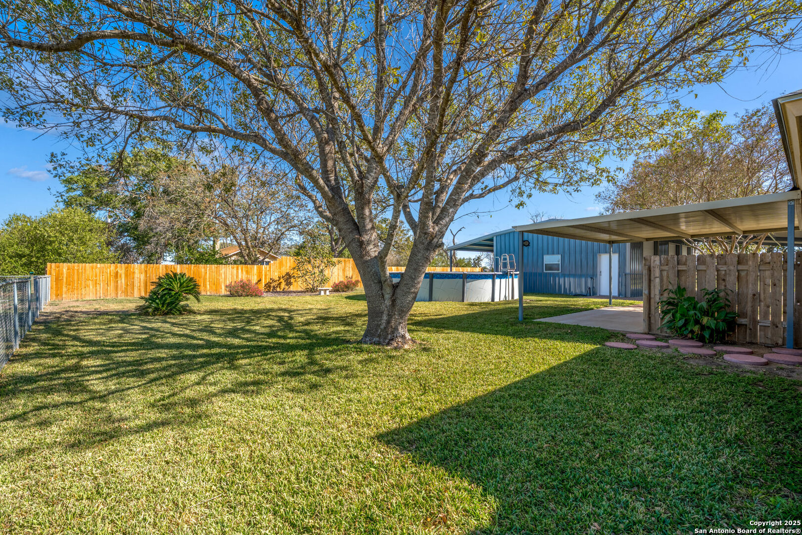 New Pictures,looks much better with new rehabs! Welcome to country living with city convenience! You are going to love this property! This spacious 3BR/2BA home on 1.763 acres (fully fenced with chain-link & privacy fencing) offers 1,974 SF per tax records, featuring two large living areas- one which is perfect for a media room, home office, game room, or potential 4th bedroom. Freshly painted interior with easy-care Travertine tile flooring, and beautiful wood look Luxury Vinyl in the Bedrooms and front Living Area,no carpet! The large kitchen boasts ample counter space, an island, and a stylish tile backsplash. Enjoy outdoor living on the oversized 20x18 covered back patio. The property includes and you will love this also, a massive 25x50 garage/workshop with 3 overhead doors, a 25x50 front carport, and a 12x50 rear covered area. Approximately 1250 Sq.Ft. inside! There is a partial sprinkler system around the house and two sides of the garage! Plus Radiant barrier and blown in insulation! Located in Cibolo city limits, just 2 miles from I-10 and minutes to FM 78. Don't miss this rare find with space, flexibility, and functionality!