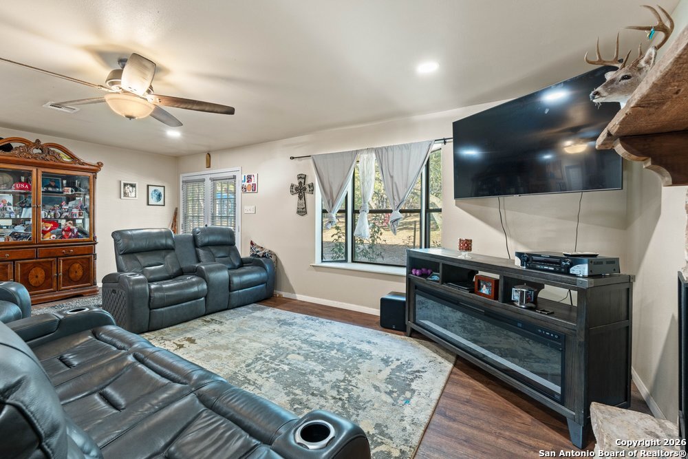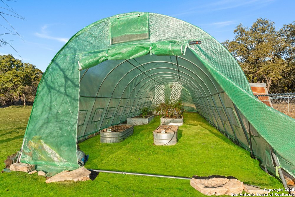 Discover the perfect blend of modern comfort and Hill Country charm with this beautifully remodeled 3-bedroom, 2-bath single-story home set on 9.95 unrestricted acres in the heart of the Texas Hill Country. Designed for both relaxation and functionality, the home features an inviting open-concept living layout with wood flooring throughout and an oversized owner's retreat for ultimate privacy. The spacious kitchen is a standout, showcasing open shelving, large butcher block countertops, and a stainless steel gas cooking range, ideal for both everyday living and entertaining. Thoughtful updates include new HVAC, updated electrical inside and out, all new well components, and a newly built porch, ensuring peace of mind and modern efficiency. Outside, the property is equally impressive with new fencing, two covered car patios, a greenhouse, storage, chicken coop, and a covered hot tub area-perfect for enjoying serene Hill Country sunsets. With no HOA and no city taxes, this property offers true freedom, privacy, and endless possibilities for country living, homesteading, or a private retreat.***With 5 Covered Parking Spots!***