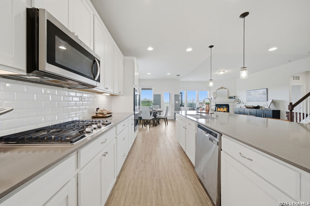 Situated in the sought-after Cielo Ranch community, 27710 Alpine Tundra showcases a thoughtfully designed 5-bedroom, 3-bath Pulte home with a spacious and functional layout, complemented by great views. The main living areas connect seamlessly, creating an open-concept environment ideal for both daily living and entertaining. At the center of the home, the bright white kitchen features an oversized island, double ovens, a gas cooktop, abundant cabinetry, and generous counter space-flowing effortlessly into the dining and living areas. The expansive primary suite offers a private retreat, complete with a large walk-in closet and an en-suite bath featuring dual vanities, a garden tub, and a walk-in shower. Upstairs, additional living space includes a versatile second living area and a dedicated media room, providing flexibility for entertainment or relaxation. Additional features include a private home office, laundry room, and a 3-car garage. Schedule your showing today!