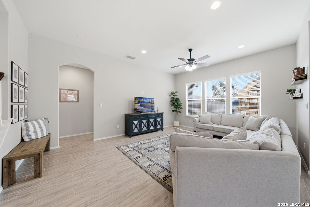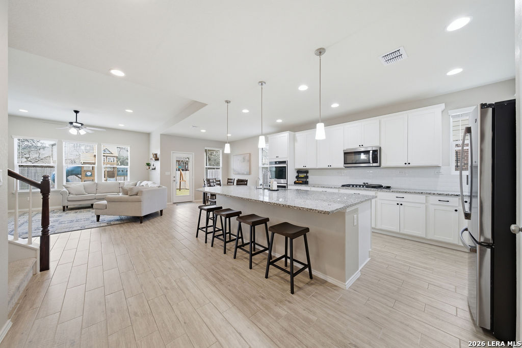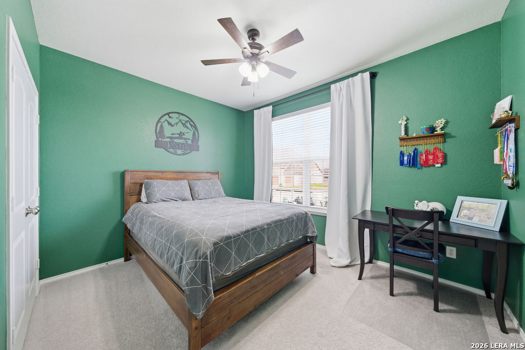 Located in the desirable Cielo Ranch community, 27719 Alpine Tundra is a beautifully designed 5-bedroom, 4-bath Pulte home offering spacious living and a functional open layout. The main living areas flow seamlessly together, with the kitchen opening directly into the dining and living spaces-ideal for both everyday living and entertaining. The modern white kitchen features an oversized island, double ovens, a gas cooktop, ample counter space, and generous cabinetry, creating a bright and inviting centerpiece of the home. The oversized primary suite provides a private retreat with a large walk-in closet and a well-appointed bathroom featuring dual vanities and a walk-in shower. Upstairs, the home offers even more flexibility with a second living area and a dedicated media room, perfect for movie nights, gaming, or additional entertaining space. Additional highlights include a dedicated home office, laundry room, and a 3-car garage. The home is equipped with a whole-house water filtration and softener system, and solar panels which greatly reduce the energy cost of the home. Step outside to enjoy the oversized side yard, offering additional outdoor space and flexibility for recreation or entertaining. This thoughtfully designed home combines modern finishes, energy efficiency, and comfortable living in a sought-after neighborhood.