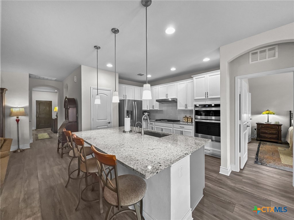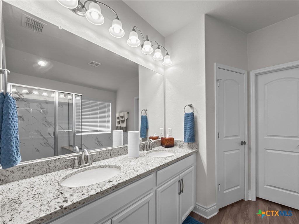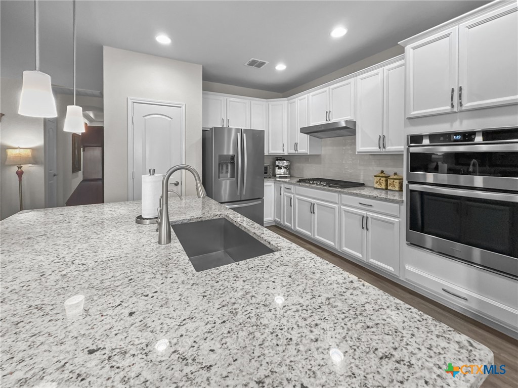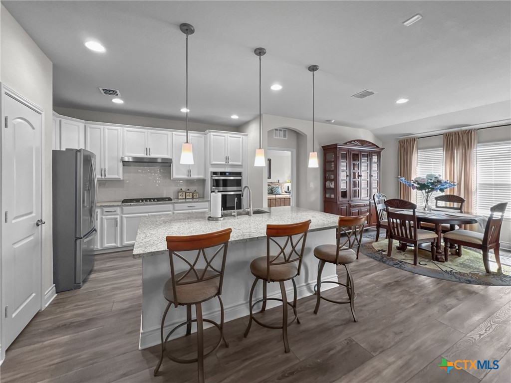 Come home to New Braunfels, Texas! This charming single-story home is a gracious blend of comfort, style, & convenience. This spacious residence spans 1,666 square feet & features 3 bedrooms, 2 bathrooms, & a host of modern upgrades designed to elevate your living experience. Enjoy effortless living with an open-plan kitchen, dining area, and spacious great room, ideal for gatherings with ample room for entertaining. Luxury vinyl plank throughout the home beautifully accents the open-concept layout, providing multiple entertaining configurations with the freedom to flow easily between the living, dining, and kitchen areas. The master suite includes an extended bay-style wall with ample lighting through numerous oversized windows. The spacious master bathroom features dual vanities, an oversized shower & tub, and a walk-in closet. A well-maintained and landscaped front and backyard, complete with a lawn irrigation system, is ideal for kids and pets. AC System maintained and up to date. Washer, dryer, and refrigerator convey with sale. Natural gas cooktop and heat. The community pool offers the perfect spot to cool off on hot summer days & socialize with neighbors. Conveniently located close to schools, shopping, dining, the river, & other essential amenities - Whether you're running errands or exploring the local attractions, everything you need is just minutes away. Don't miss your opportunity to own this exceptional home, where modern comfort meets timeless charm. Schedule your showing today & experience the best of suburban living!