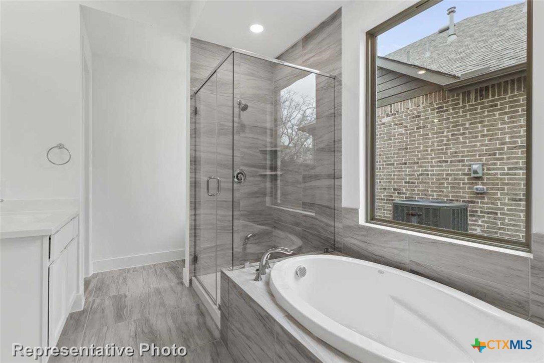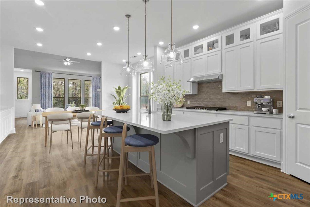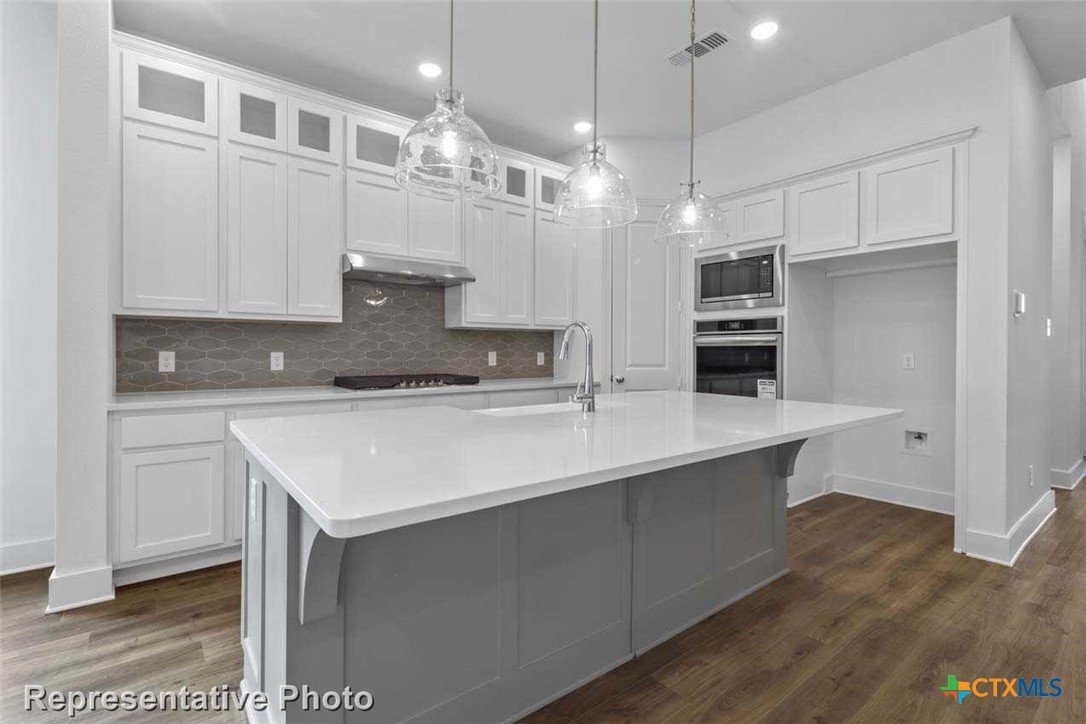 MLS 563276 - Built by Highland Homes - March completion! ~ Two story home with brick elevation features gourmet kitchen with built-in stainless steel oven, microwave and dishwasher as well as a 36 gas cooktop with stainless steel vent hood. Other features include 8' doors downstairs, master bay window extension, freestanding rectangular tub at master with separate shower, open railing at stairs ilo half walls, extended outdoor living area. Full sprinkler system included!!!