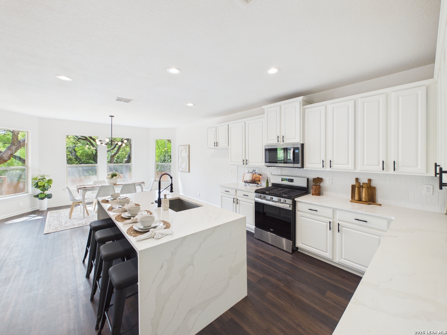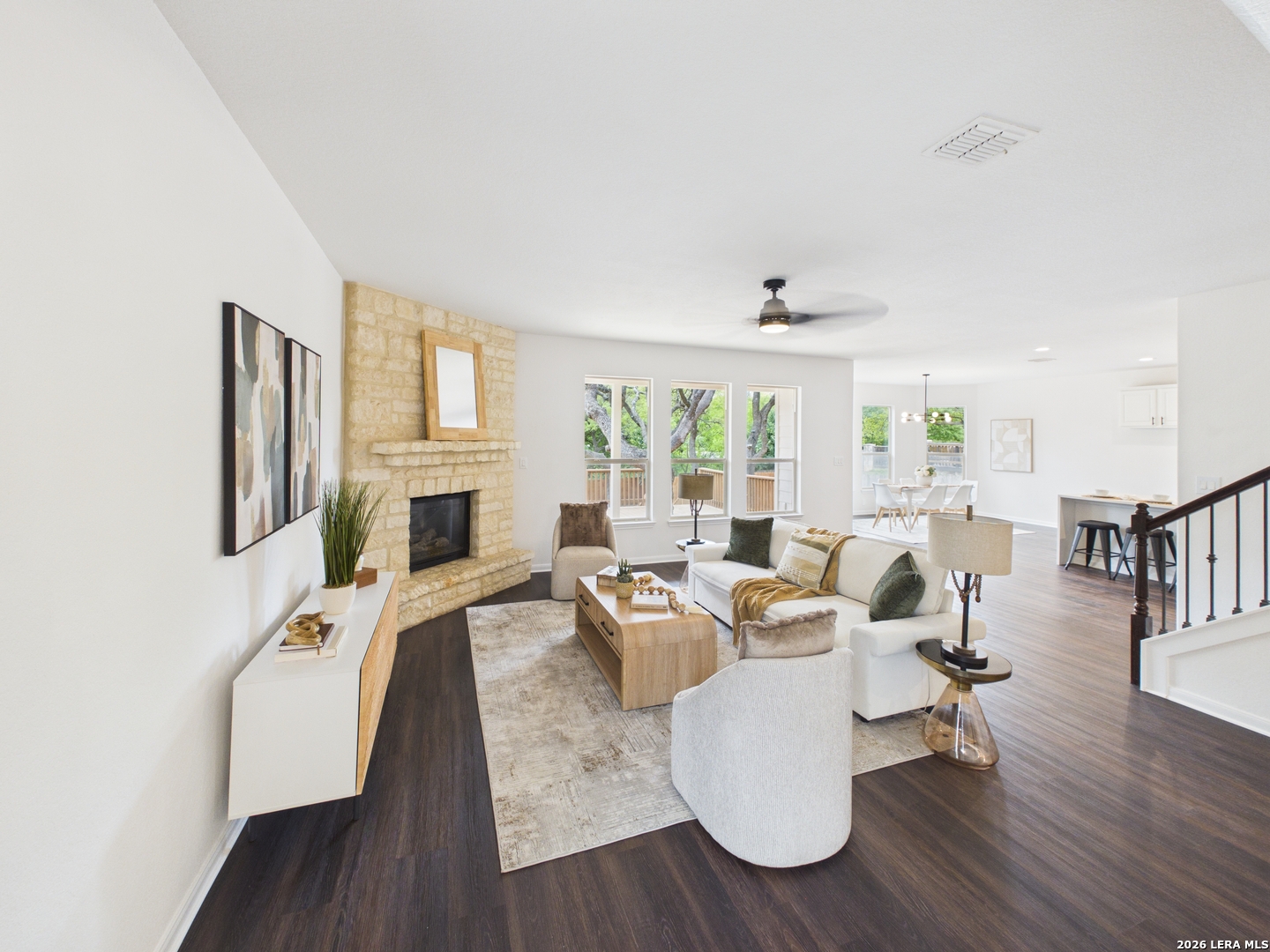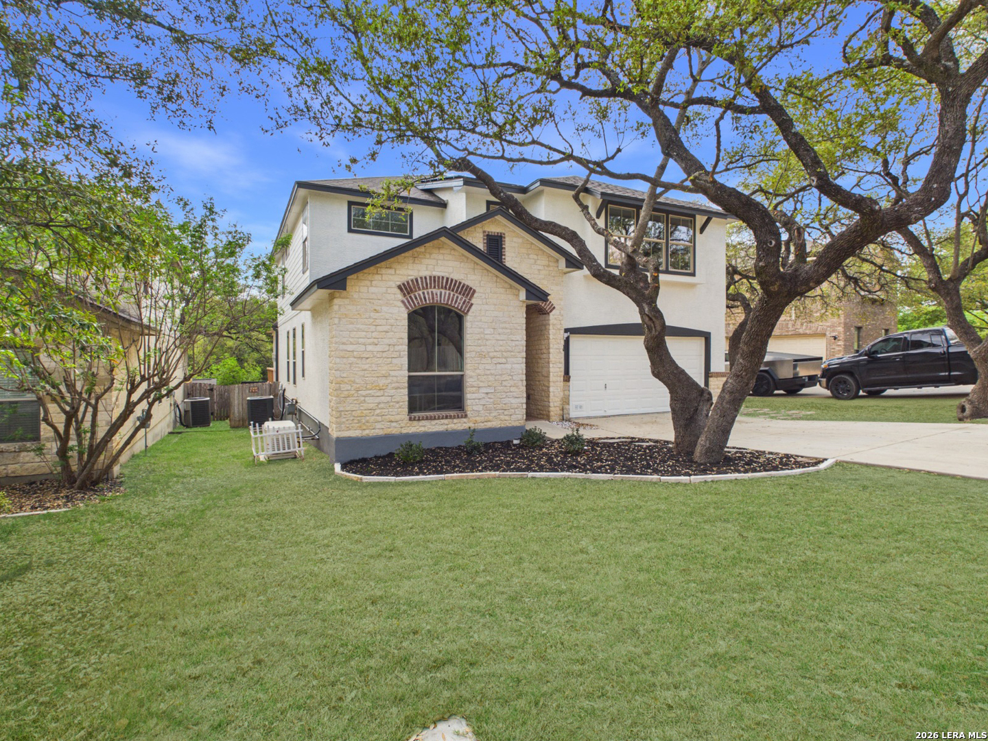 Welcome to 27943 Sonoma Ambre, where modern elegance meets everyday comfort in the heart of Boerne! Coming with paid off solar panels, and a fully operable generator, this beautifully updated 4-bedroom, 3 bath home offers a spacious and thoughtfully designed layout with stylish finishes throughout, perfectly suited for both entertaining and daily living. Step inside to soaring ceilings and a light-filled entry that immediately sets the tone. Rich luxury vinyl plank flooring flows throughout the main living areas, complemented by fresh, neutral tones and clean architectural lines. The open-concept living room is warm and inviting, anchored by a stunning stone fireplace and surrounded by large windows that bring in abundant natural light. The chef-inspired kitchen is a true centerpiece, featuring sleek quartz countertops, crisp white cabinetry, stainless steel appliances, and an oversized island with bar seating-perfect for hosting or casual dining. It opens seamlessly to a bright breakfast area with picturesque backyard views, creating a natural flow for gatherings. A dedicated front office provides the ideal work-from-home setup, while the spacious dining area offers flexibility for formal or casual entertaining. Upstairs and throughout, the home continues to impress with well-sized secondary bedrooms and updated finishes. The primary suite serves as a private retreat, complete with ample space, natural light, and a beautifully upgraded en-suite bathroom featuring modern fixtures, dual vanities, and a sleek walk-in shower. Outside, enjoy a peaceful, tree-lined setting with mature oaks, fresh landscaping, and a private backyard-perfect for relaxing evenings or weekend get-togethers. The home also features a wide driveway and a two-car garage for added convenience. Located in a desirable Boerne community with easy access to top-rated schools, shopping, dining, and major highways, this home offers the perfect balance of style, location, and livability. Move-in ready and thoughtfully upgraded, 27943 Sonoma Ambre is a rare opportunity you don't want to miss-schedule your private showing today!