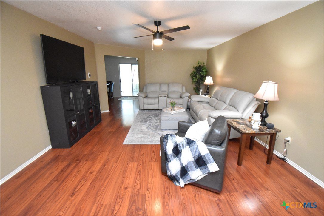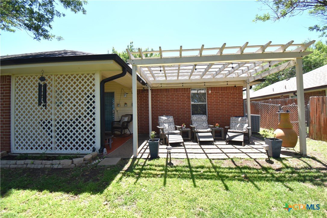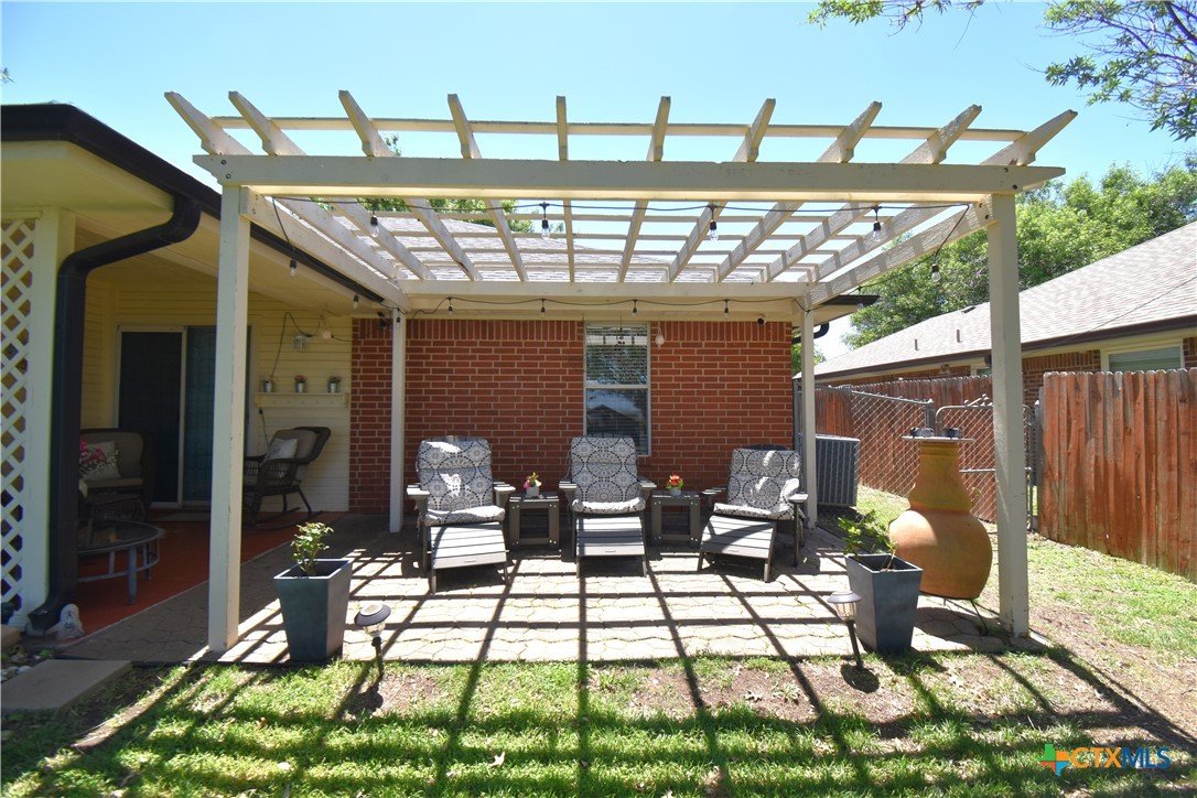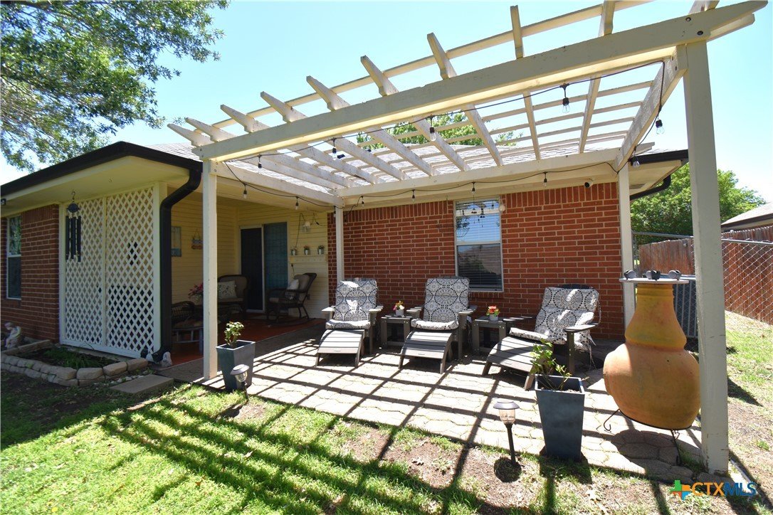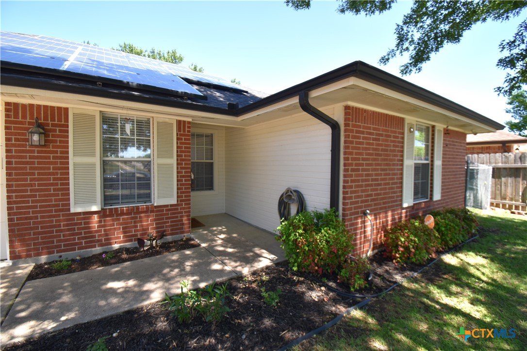 Pride of ownership! This beautifully maintained home is packed with value and ready to move in. Solars panels are included no cost of the buyer! Say goodbye to high energy bills, meaning you’ll start saving on electricity from day one! Enjoy peace of mind with a brand-new roof installed in March 2025, a 2020 AC unit, gutters all around the home, and a water softener already in place as of 2020. Inside, the spacious living room features elegant plank flooring, perfect for both everyday living and entertaining. A separate dining area flows into a modern kitchen complete with a center island, walk-in pantry, and plenty of cabinet space. Retreat to the large primary suite, boasting a walk-in closet, ceiling fan, and a spa-like bathroom with a relaxing tub and shower. Minor bedrooms are generously sized, offering comfort for everyone. Step outside to your personal oasis—unwind under the covered patio or soak up the sunshine beneath the pergola. The nice-sized backyard includes mature trees for added shade and a storage shed for all your extras. Home is close to Fort Cavazos, schools, and shopping areas.