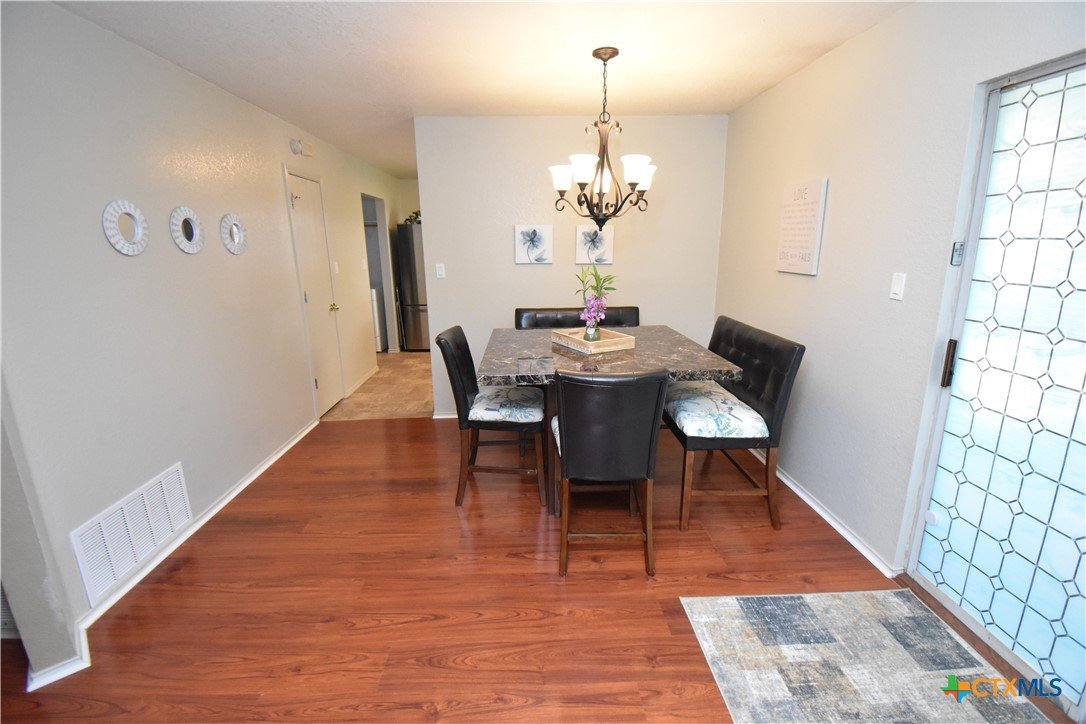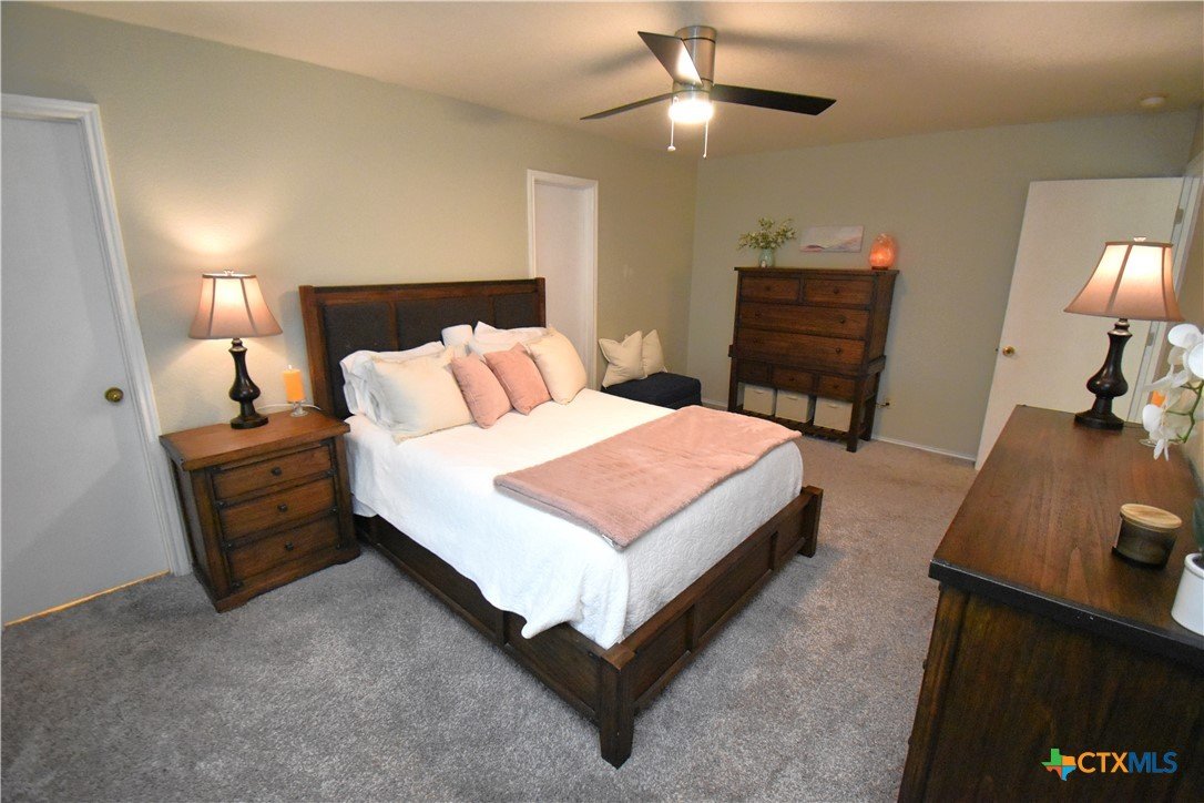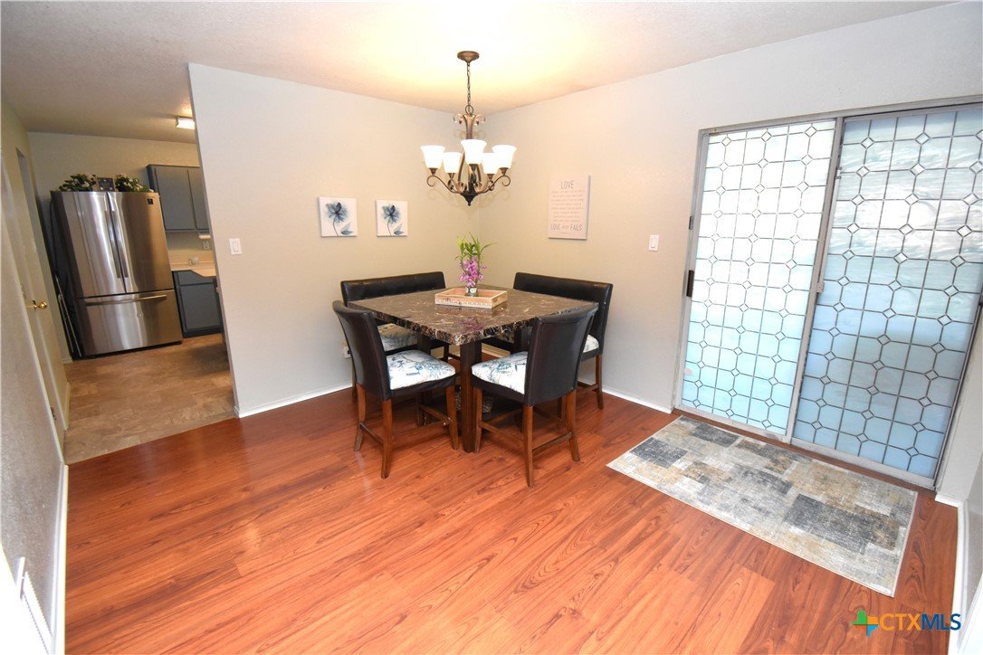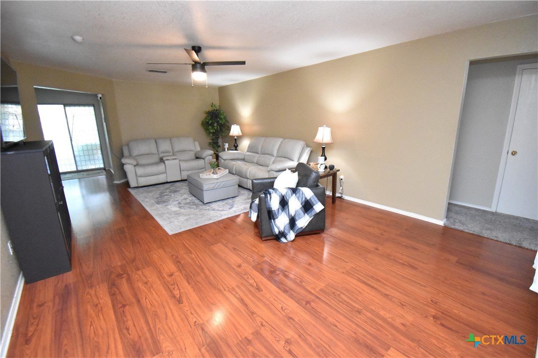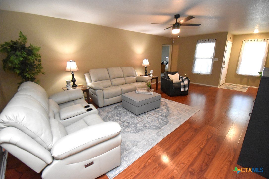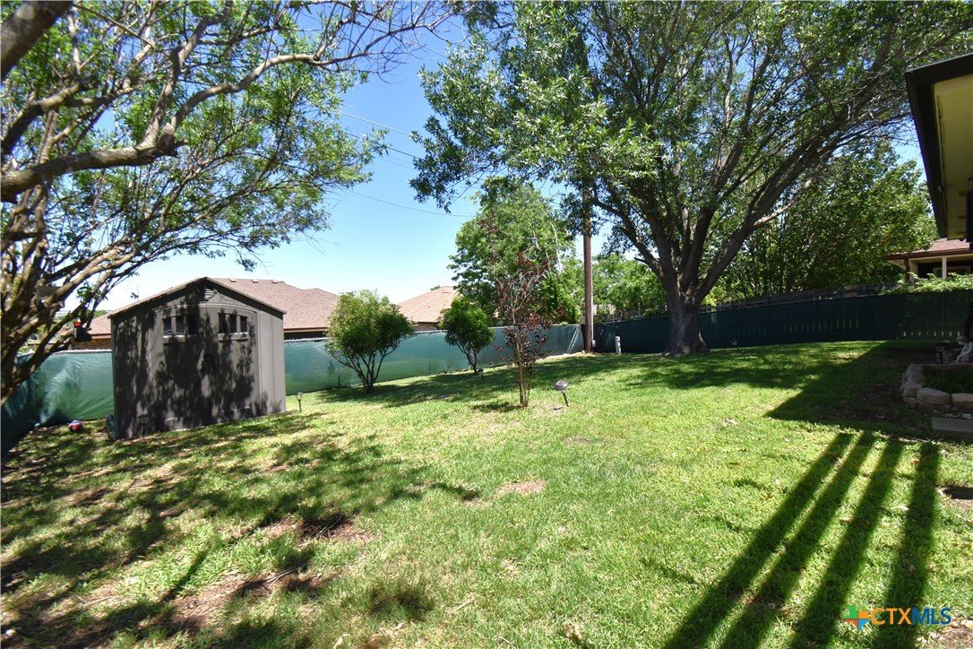 Pride of ownership! This beautifully maintained home is packed with value and ready to move in. Solars panels are included no cost of the buyer! Say goodbye to high energy bills, meaning you’ll start saving on electricity from day one! Enjoy peace of mind with a brand-new roof installed in March 2025, a 2020 AC unit, gutters all around the home, and a water softener already in place as of 2020. Inside, the spacious living room features elegant plank flooring, perfect for both everyday living and entertaining. A separate dining area flows into a modern kitchen complete with a center island, walk-in pantry, and plenty of cabinet space. Retreat to the large primary suite, boasting a walk-in closet, ceiling fan, and a spa-like bathroom with a relaxing tub and shower. Minor bedrooms are generously sized, offering comfort for everyone. Step outside to your personal oasis—unwind under the covered patio or soak up the sunshine beneath the pergola. The nice-sized backyard includes mature trees for added shade and a storage shed for all your extras. Home is close to Fort Cavazos, schools, and shopping areas.