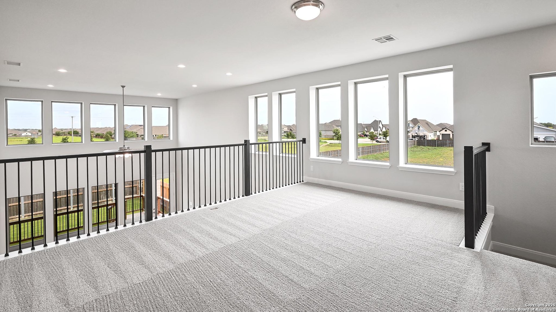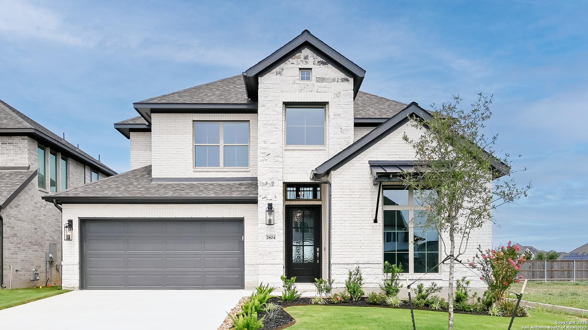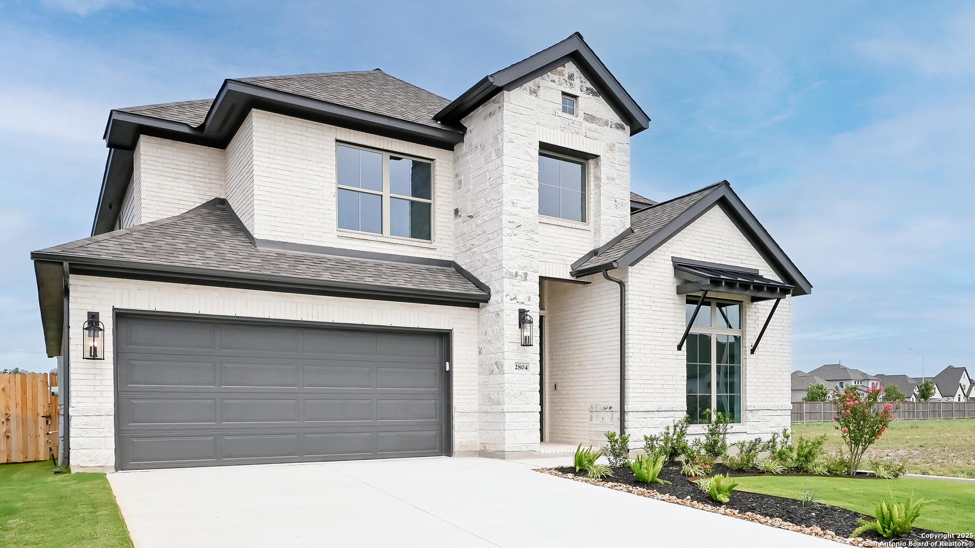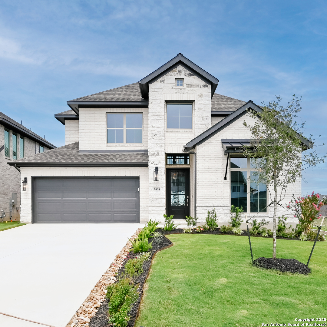 READY FOR MOVE-IN! Home office with French doors set at two-story entry. Open kitchen offers deep walk-in pantry, 5-burner gas cooktop and generous island with built-in seating space. Dining area opens to two-story family room with wall of windows. Primary suite with 10-foot ceiling. Dual vanities, garden tub, separate glass-enclosed shower and large walk-in closet in primary bath. A second bedroom is downstairs. A game room and secondary bedrooms are upstairs. Covered backyard patio. Mud room off two-car garage.