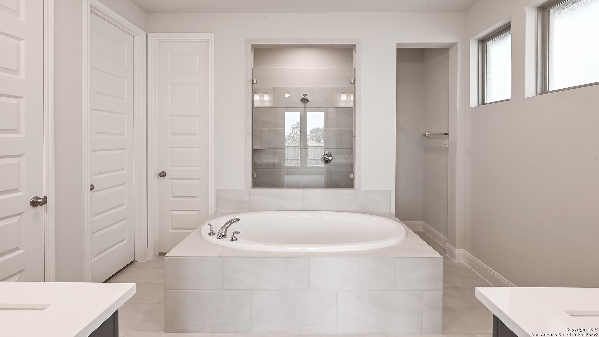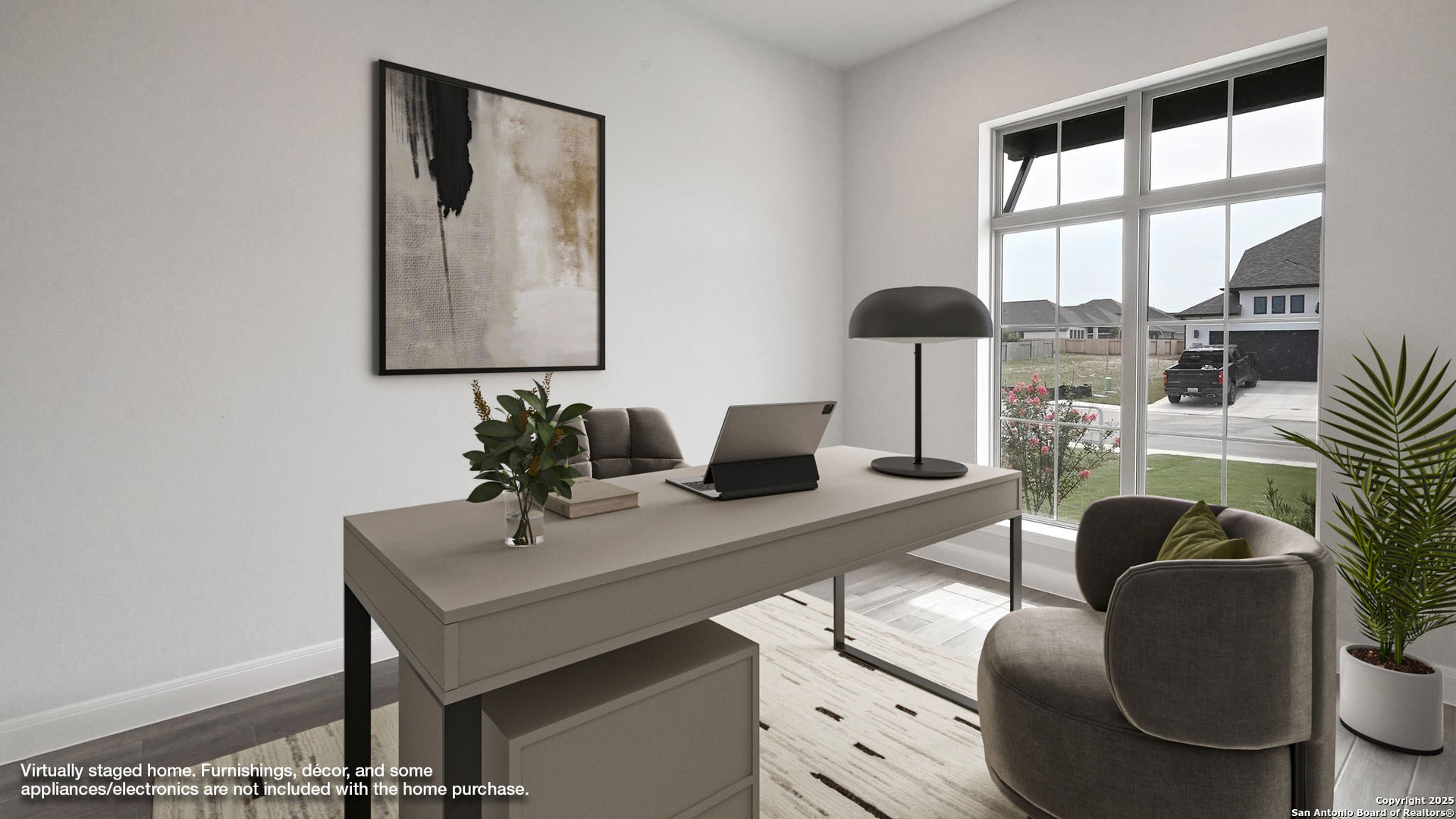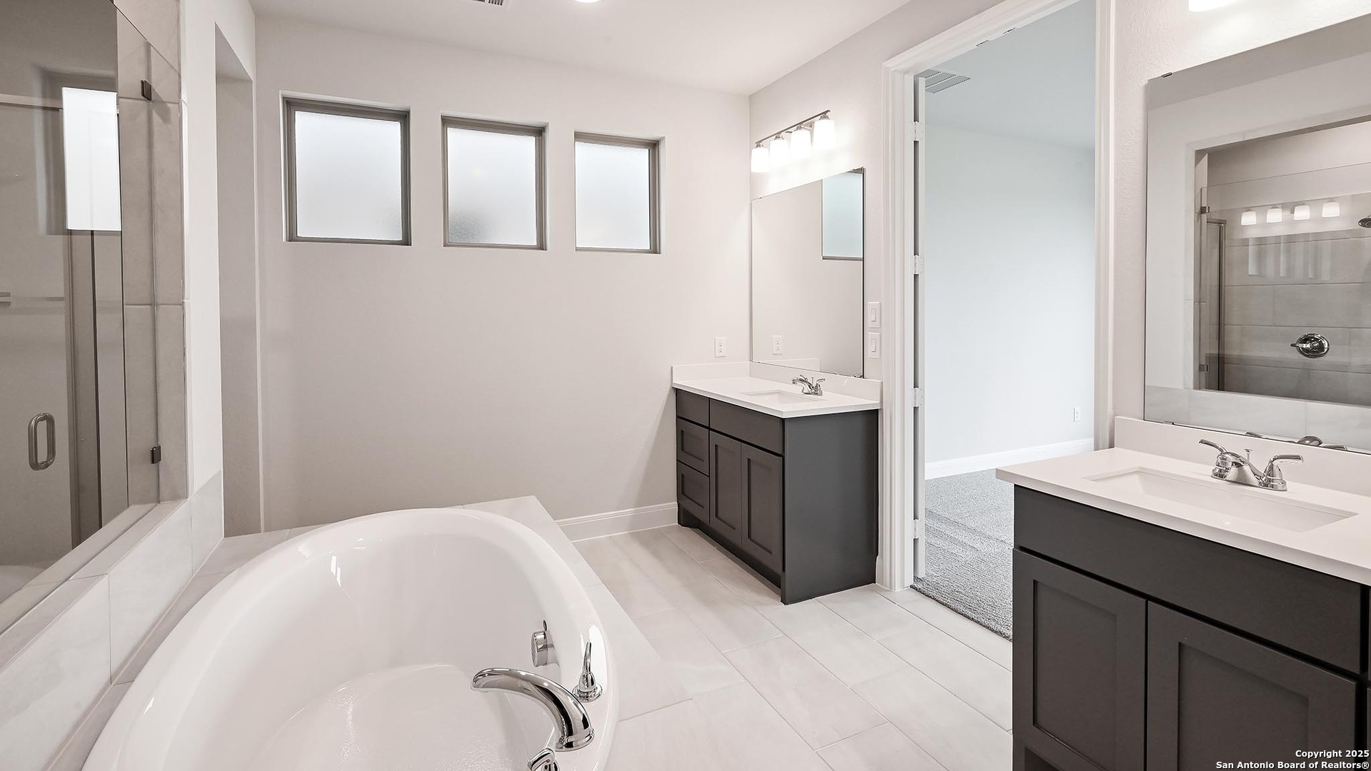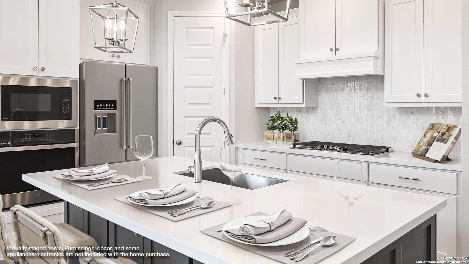 READY FOR MOVE-IN! Home office with French doors set at two-story entry. Open kitchen offers deep walk-in pantry, 5-burner gas cooktop and generous island with built-in seating space. Dining area opens to two-story family room with wall of windows. Primary suite with 10-foot ceiling. Dual vanities, garden tub, separate glass-enclosed shower and large walk-in closet in primary bath. A second bedroom is downstairs. A game room and secondary bedrooms are upstairs. Covered backyard patio. Mud room off two-car garage.