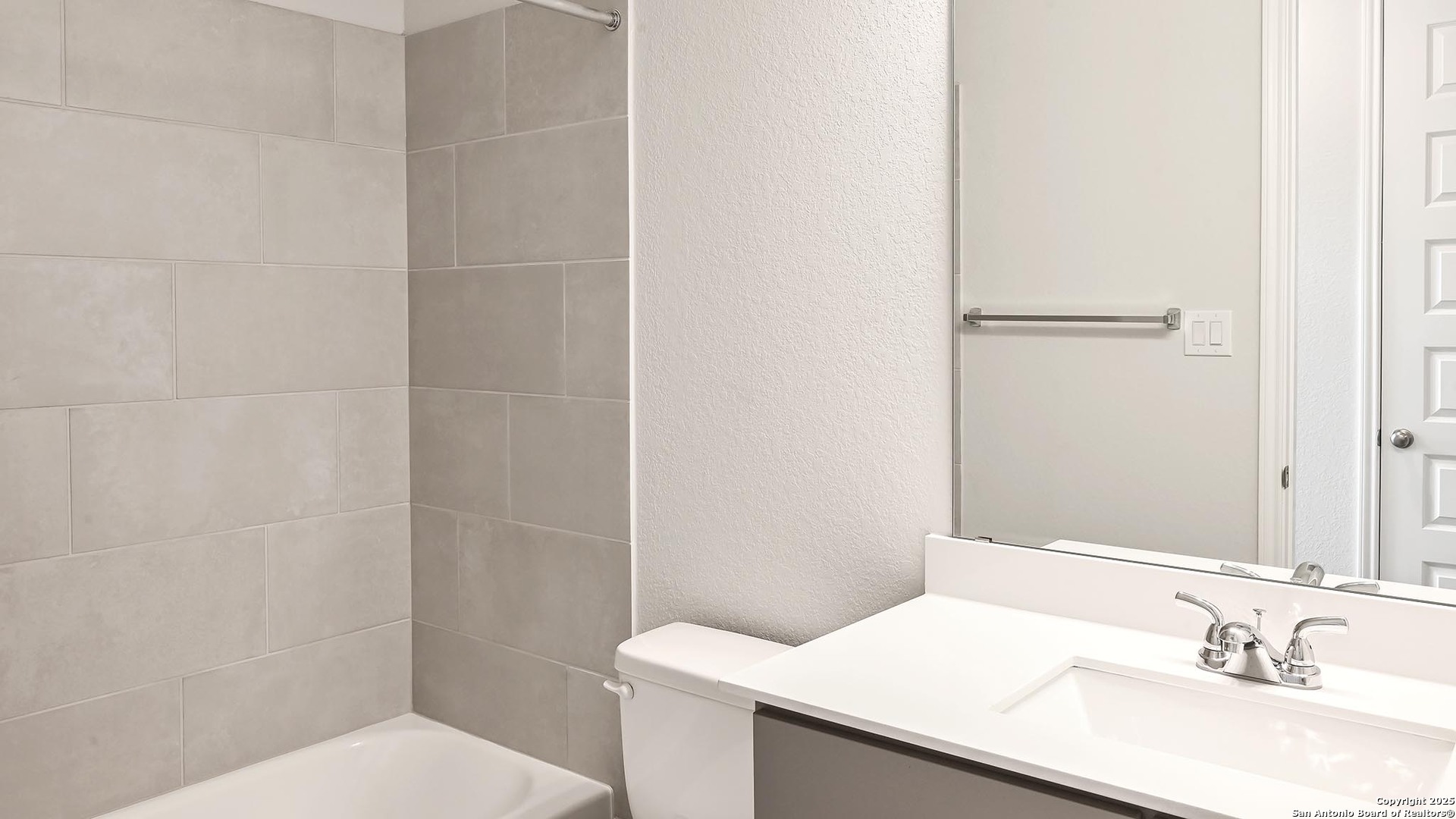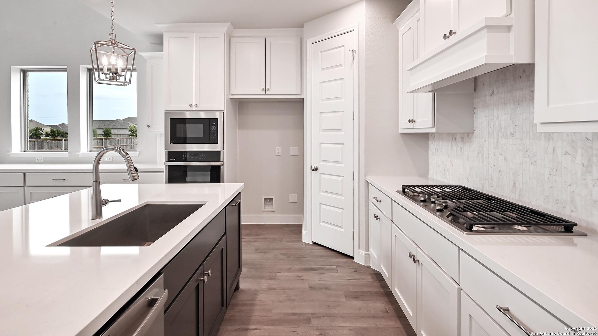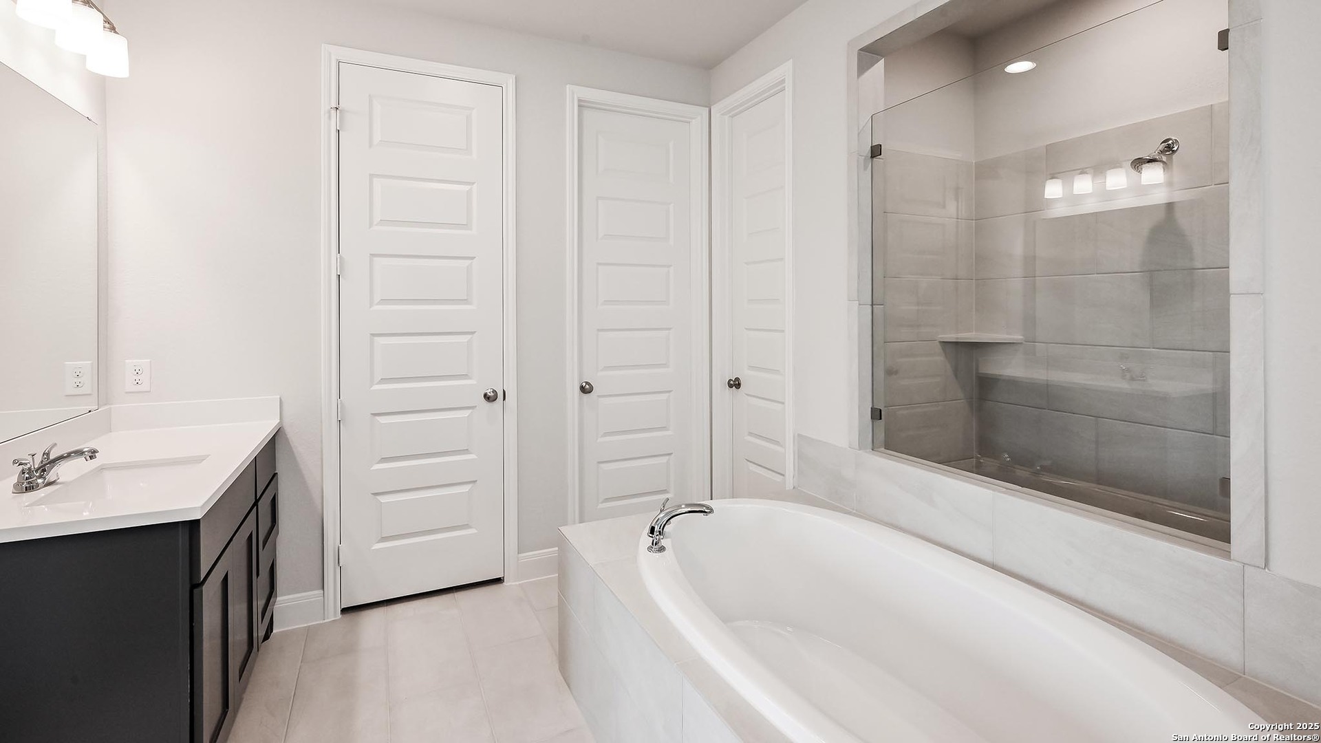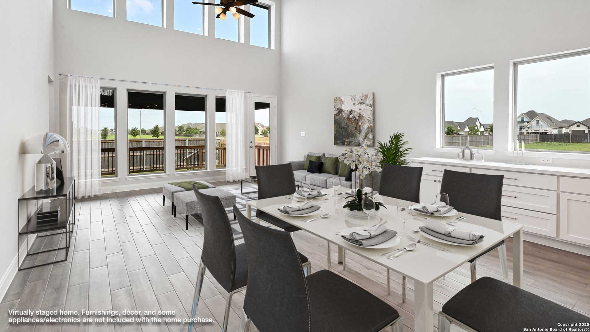 READY FOR MOVE-IN! Home office with French doors set at two-story entry. Open kitchen offers deep walk-in pantry, 5-burner gas cooktop and generous island with built-in seating space. Dining area opens to two-story family room with wall of windows. Primary suite with 10-foot ceiling. Dual vanities, garden tub, separate glass-enclosed shower and large walk-in closet in primary bath. A second bedroom is downstairs. A game room and secondary bedrooms are upstairs. Covered backyard patio. Mud room off two-car garage.