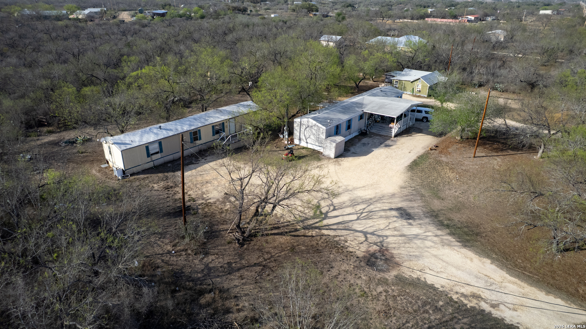 This 5.23-acre income producing property in Uvalde Estates offers a rare combination of cash flow, flexibility, and future upside just outside the city limits of Uvalde with convenient access off Highway 83. The property is serviced by a private well, avoiding reliance on the Windmill water system, and is equipped with two septic systems and three separate electric meters, allowing each unit to operate independently. Improvements include three currently leased residences: a two bedroom, two bath mobile home with a large covered porch renting for $750 per month, a second two bedroom, two bath unit also renting for $750 per month, and a one bedroom, one bath cabin renting for $600 per month. The property generates approximately $25,200 in annual gross income with low taxes, insurance, and operating expenses totaling just over $6,000, resulting in an estimated net income near $19,000 per year. Only about one-third of the acreage is currently utilized, leaving significant room for expansion with additional rental units, mobile homes, or RV development. With no restrictions and no HOA, the property also offers potential for commercial or industrial use. Located approximately three miles south of Uvalde, this property provides a quiet country setting with convenient proximity to town for shopping, dining, and everyday needs.