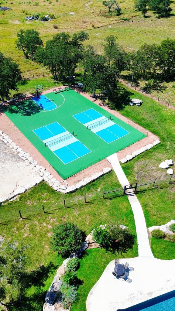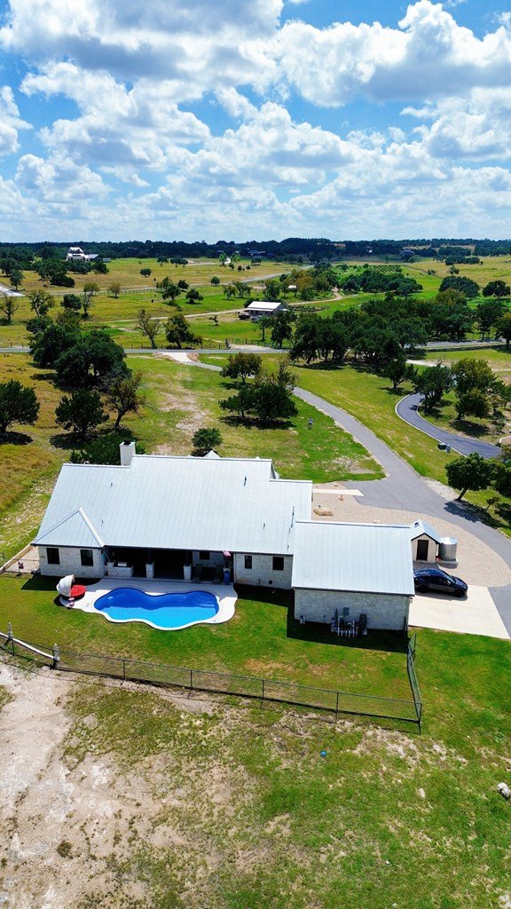 Welcome to 281 Inspiration Loop, a stunning custom-built 4 bedroom, 3 bath home in the highly desirable Hidden Springs community of Fredericksburg. This home blends Hill Country charm with modern design, offering an open-concept floor plan, soaring ceilings, and abundant natural light throughout. The gourmet kitchen is a showpiece with custom cabinetry, premium appliances, and a large island that flows seamlessly into the dining and living spaces. The private owner's suite features a spa-like bath, while three additional bedrooms provide comfort for family, guests, or a home office. Step outside to your personal retreat — a custom-designed pool with expansive patio space perfect for entertaining or relaxing under the Texas sky. Living in Hidden Springs means enjoying resort-style amenities including pickleball courts, a large community pool, clubhouse, gardens, and scenic walking trails — all just minutes from Fredericksburg's Main Street, fine dining, and award-winning wineries.