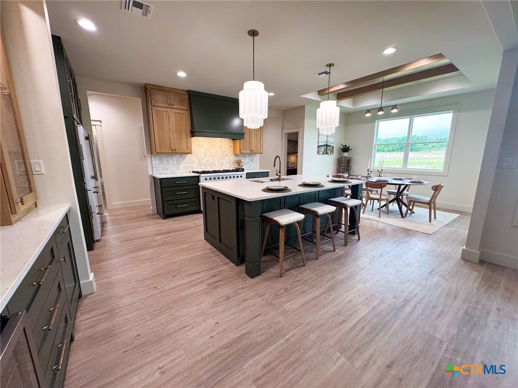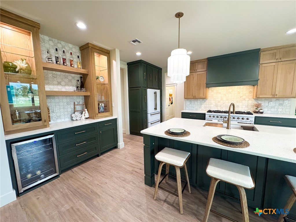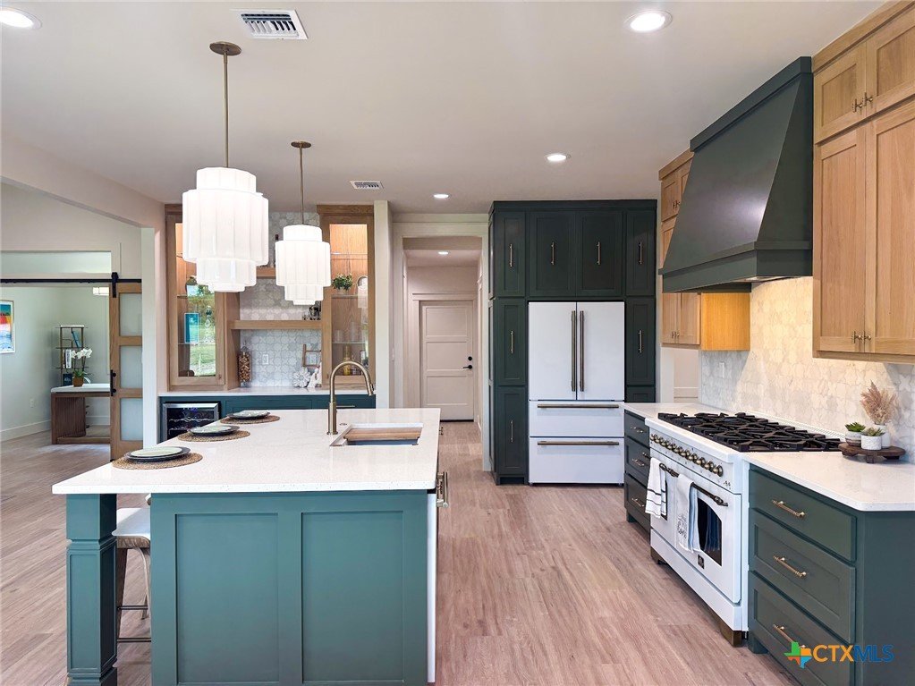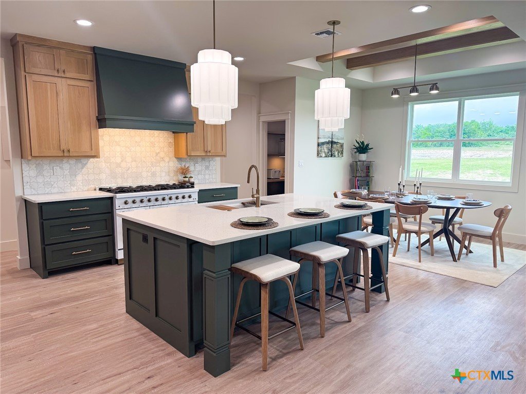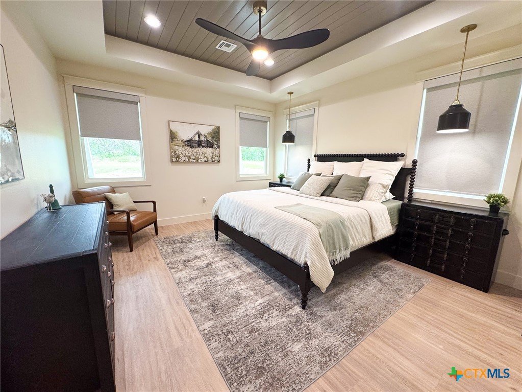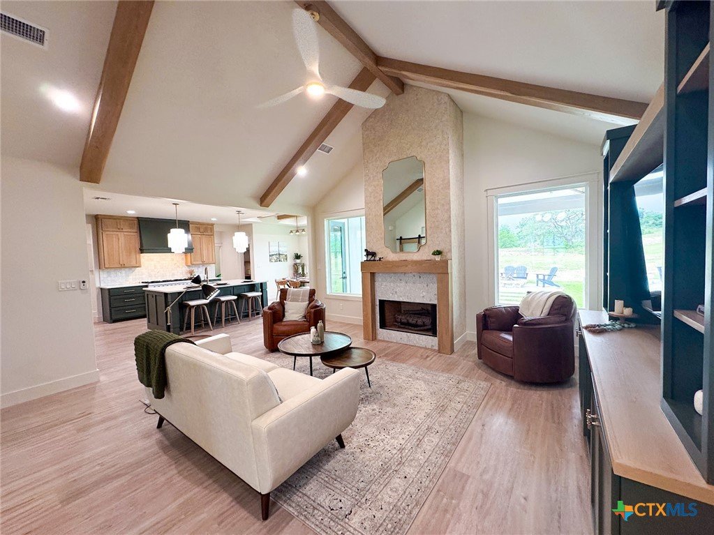 Introducing a stunning 5-bedroom, 3-bath new construction home crafted by the renowned JW Moore Construction on 1.6 acres. From the moment you step inside, this home exudes unparalleled craftsmanship and modern elegance that is synonymous with JW Moore Construction. Imagine yourself relaxing on the wrap-around porch with tongue and groove ceilings, creating the perfect setting for your dreams to come to life. The lush landscaping, majestic oak trees, and abundant wildlife provide a daily oasis of tranquility. Step into the living room with its soaring ceilings, exquisite built-ins, and a stunning fireplace that serves as the focal point of the room. The kitchen boasts custom cabinets, state-of-the-art Forno appliances, quartz countertops, and a spacious center island for all your culinary creations. The split floor plan offers a luxurious primary suite overlooking the picturesque oak trees, complete with a soaking tub, beautifully tiled shower, double vanity, and a rock star walk-in closet. Entertain in style in the bonus media room equipped with built-in speakers, perfect for hosting your next movie night. Outside, a fire pit awaits for you to enjoy breathtaking Mission Valley sunsets and cold beverages with friends. This home is a true masterpiece, seamlessly blending luxury and comfort for the ultimate living experience. Don't miss your chance to own this exceptional property.