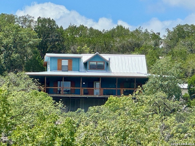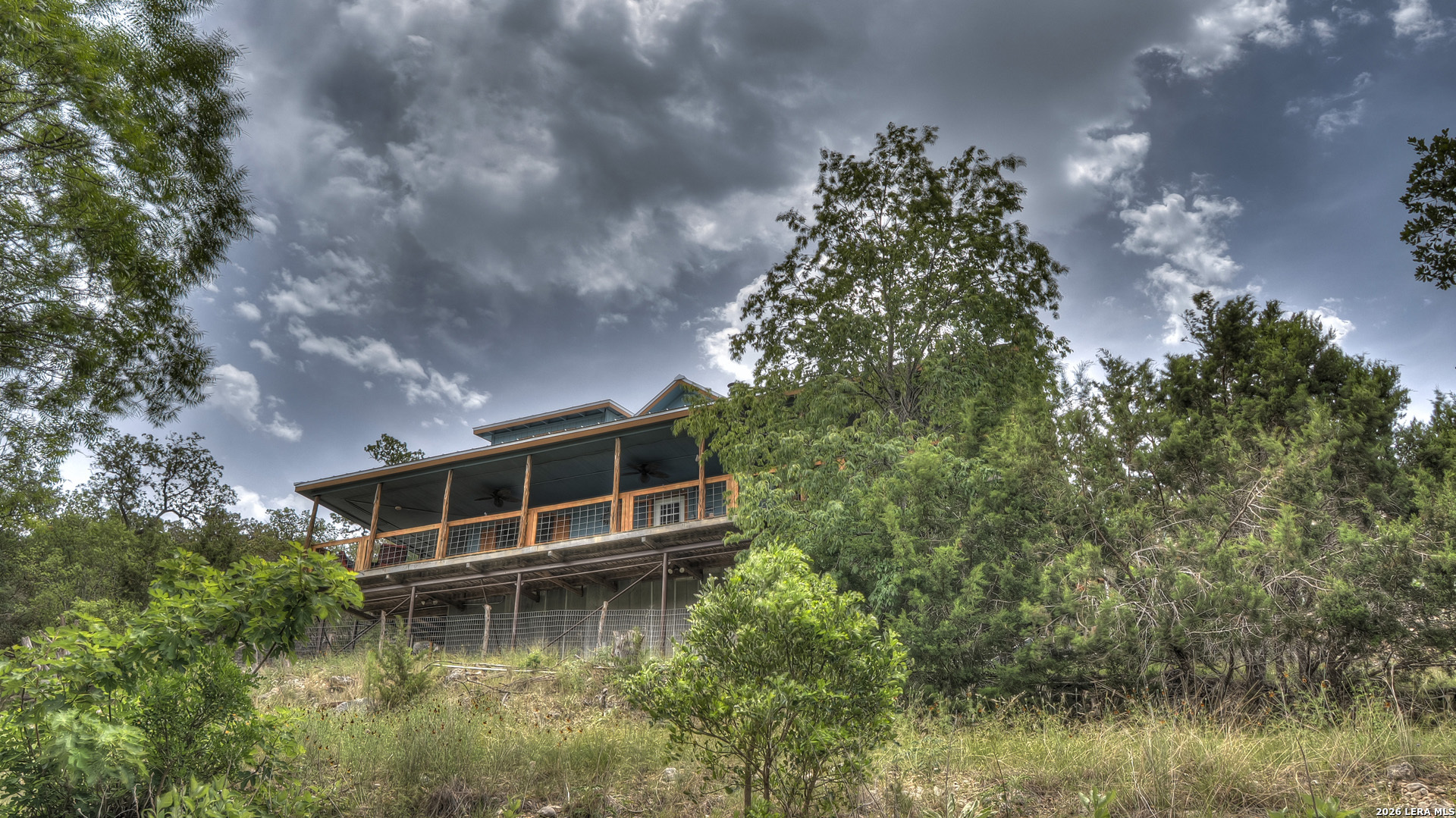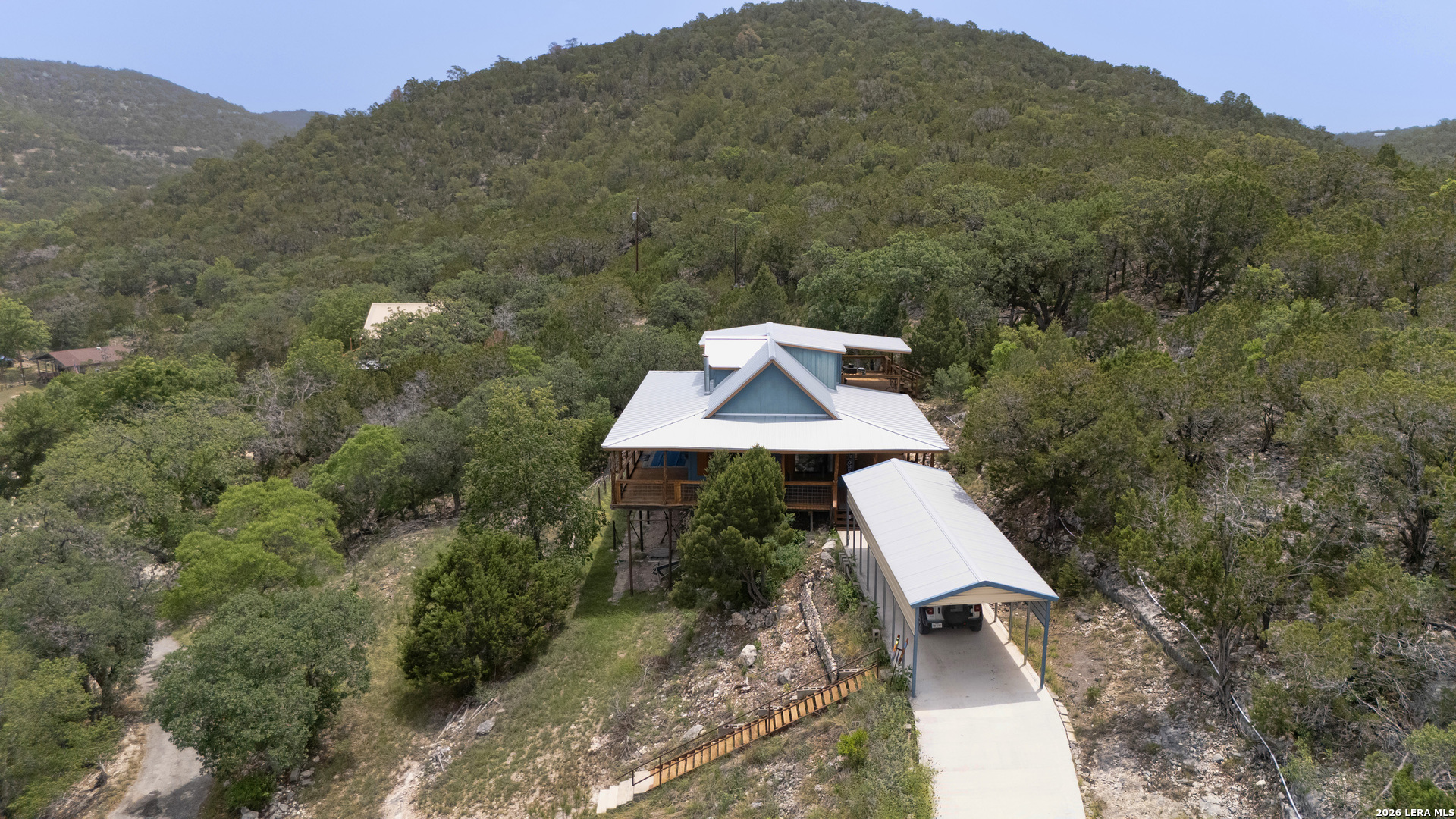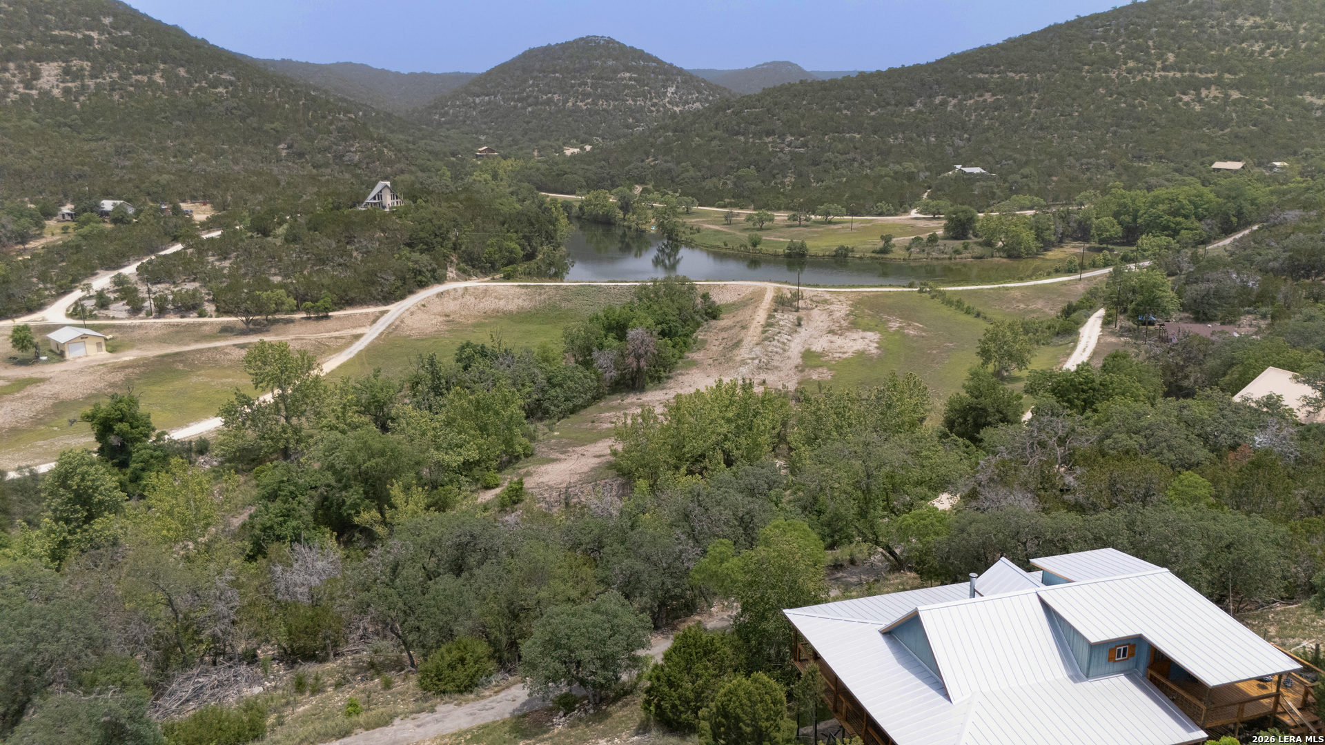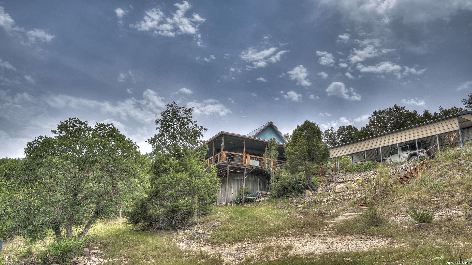 Located in gated Roaring Springs, approximately 12 miles west of Leakey, landowners will have access to a 50+ acre common park area with a spring fed creek, cascading waterfalls down chiseled rock formations, a deep swimming hole and a stocked lake for fishing and paddle boarding! The home has been recently remodeled and the wide, covered, porch wraps around the entire home for lots of outdoor entertaining and relaxing. The 3BR/2B home takes in the views with large picture windows in the living/dining area. The kitchen is an efficient galley style with a large utility room off of it. On the main level is the master bedroom and bath with a walk-in closet, equipped with built ins. The second floor offers two bedrooms, bathroom and loft area along with a private deck off the back bedroom. There is a cozy casita perfect for those wanting their own space and a fenced area for the pets! Nestled into a hillside the home provides long beautiful views of the spring fed lake and you can hear the trickling creek below. Home will come mostly furnished and includes water gear to enjoy at the lake! Dark skies perfect for star gazing!! All this is situated on 7.22 acres and should push all the buttons for those looking for a family retreat or someone wanting a quiet lake life! $449,000.