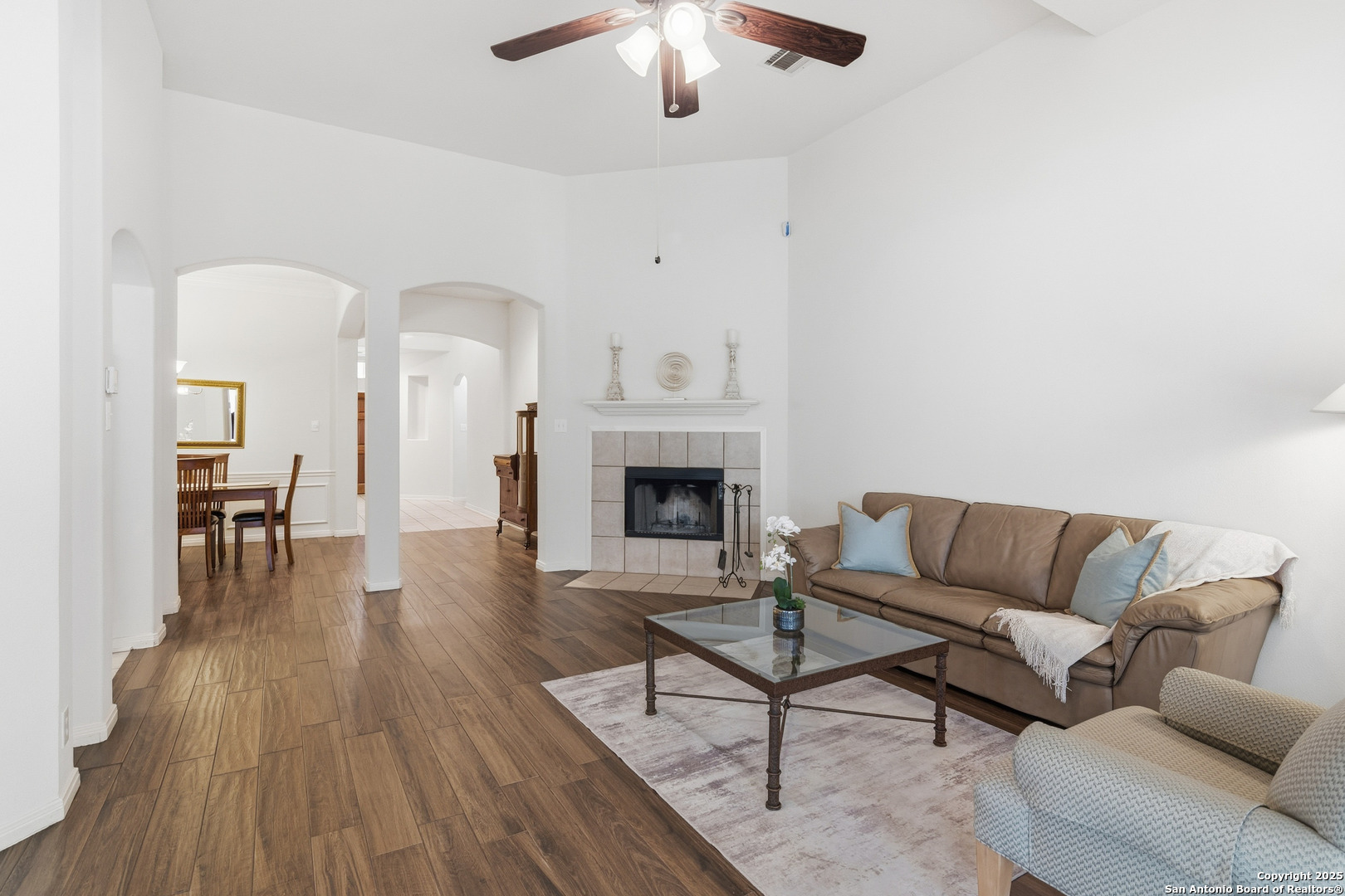 Welcome to this charming 4 bedroom, 2 bath home in the Greenshire community. Designed for everyday living, gorgeous curb appeal, open and bright spacious living room features a cozy fireplace and the large kitchen offers plenty of counter space and a walk-in pantry. The primary bedroom includes a large full bath for added convenience, while the secondary bedrooms are well-sized to suit your needs. Step outside to enjoy a backyard built for both fun and function. A covered patio area provides room to entertain or unwind. A privacy fence completes the space, offering a sense of retreat. Located near parks and schools with easy access to shopping and I-35, this home combines comfort with convenience.