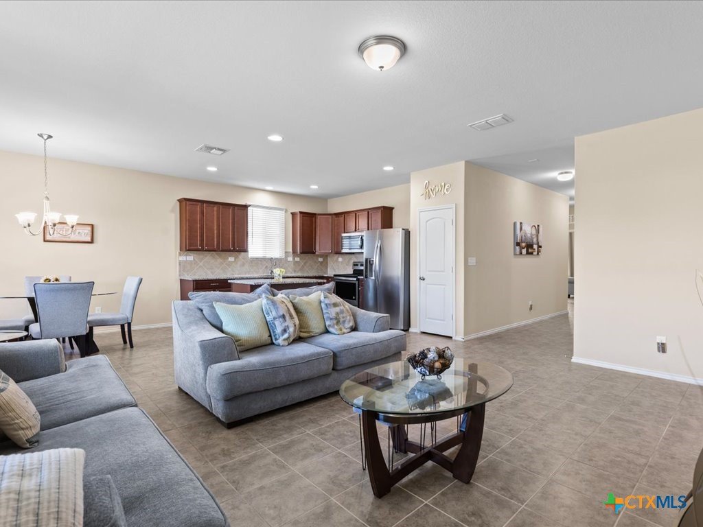 Beautiful Open-Concept Pulte Home Built in 2019! Welcome to this spacious and well-maintained 3-bedroom home in New Braunfels, offering the perfect blend of comfort, style, and convenience. Designed with an inviting open-concept layout, this home is ideal for both everyday living and entertaining. The bright and airy living area flows seamlessly into the dining space and kitchen, creating a warm and welcoming atmosphere filled with natural light. Tile flooring runs throughout the main living areas, with carpet only in the bedrooms for added comfort. The kitchen is truly the heart of the home, featuring granite countertops, a center island, stainless steel appliances, and abundant cabinetry—perfect for cooking, gathering, and making memories. Just off the kitchen, the dining area overlooks the backyard and offers easy access to the patio. The private primary suite provides a relaxing retreat with a spacious bedroom, dual vanities, a walk-in shower, and a generous walk-in closet. The secondary bedrooms are well-sized and versatile, making them ideal for family, guests, or a home office. Step outside to the backyard, a great space for pets, play, or weekend get-togethers. With its functional floor plan and thoughtful design, this home offers both comfort and convenience. Located in a desirable New Braunfels neighborhood with easy access to IH-35, shopping, dining, and top-rated schools, this home is ready for its next owner.