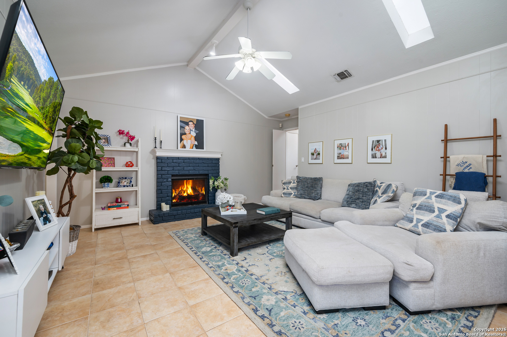 From the moment you arrive, the home feels fresh and inviting. Mature oak trees frame the property, and the classic exterior paired with a well-kept lawn creates strong curb appeal in the stunning neighborhood of Whispering Oaks. Inside, abundant natural light fills the space through oversized windows and skylights, giving the home an open, airy feel throughout. Fresh interior paint enhances the brightness and creates a clean, move-in-ready atmosphere. Multiple living and dining areas offer flexibility for both everyday living and entertaining, with a layout that flows comfortably from room to room. The kitchen sits at the center of the home, featuring granite countertops, stainless steel appliances, and generous cabinet space. Positioned to overlook the backyard, it connects seamlessly to the adjacent family room, where a fireplace adds warmth and character while keeping the space open and inviting. The backyard is a true highlight. Set on a spacious lot with mature trees, it offers privacy and a peaceful setting rarely found this close to city conveniences. The expanded patio provides an ideal space for outdoor dining, relaxing, or hosting gatherings, with ample room to personalize the yard or plan for future enhancements. All bedrooms are conveniently located on one level, including a well-sized primary suite that offers separation and comfort. The overall floor plan feels intuitive and functional, balancing openness with defined spaces. Located just minutes from major highways, shopping, dining, and neighborhood amenities, this home blends light, space, and outdoor living.