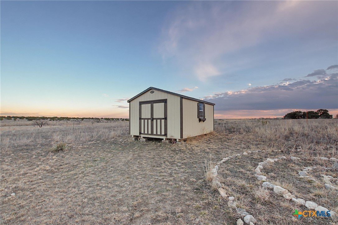 Escape the noise and discover your own piece of Texas tranquility on 10.01 acres in Lampasas County. The charming 2021 Champion Athens Park Model-tiny home offers 432 sq ft of thoughtfully designed living space, complete with 1 bedroom, 1 bath, full kitchen, living area, and laundry. The home features a 30 year metal roof, 304 square foot covered porch, 2 mini splits, whirlpool appliances, and an additional 12'X16' Ulrich storage shed with perimeter fencing. Relax on the covered porch and soak in the breathtaking sunsets, peaceful surroundings, and endless sky views. This property is ideal as a weekend getaway, or a simple, low-maintenance lifestyle. The perfect place to unplug—yet still close to town.