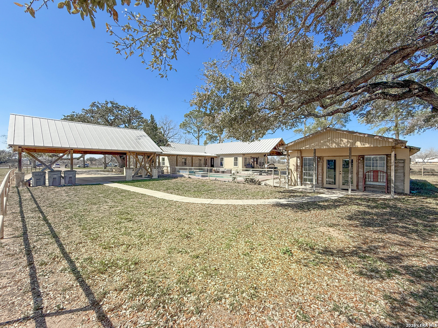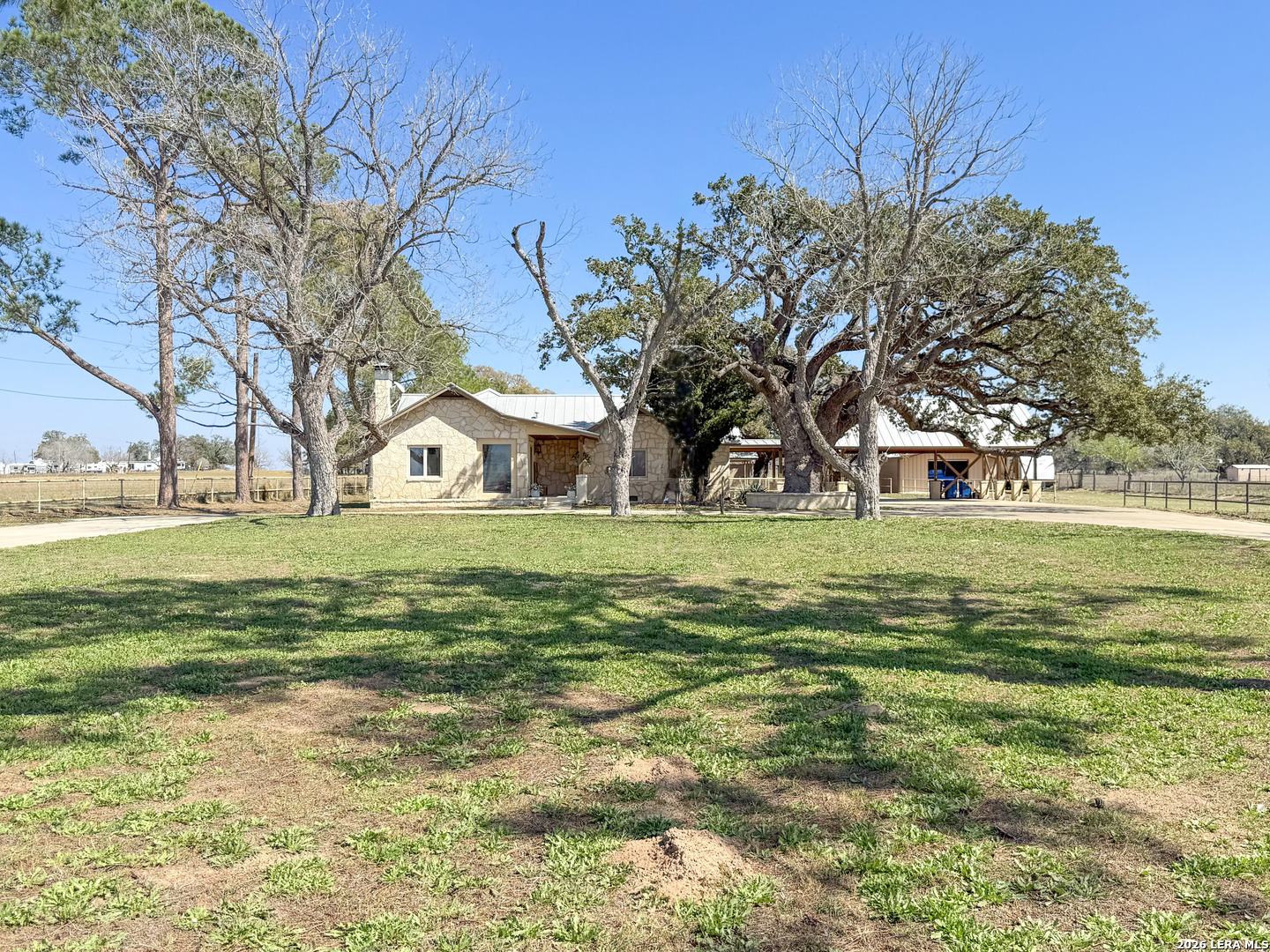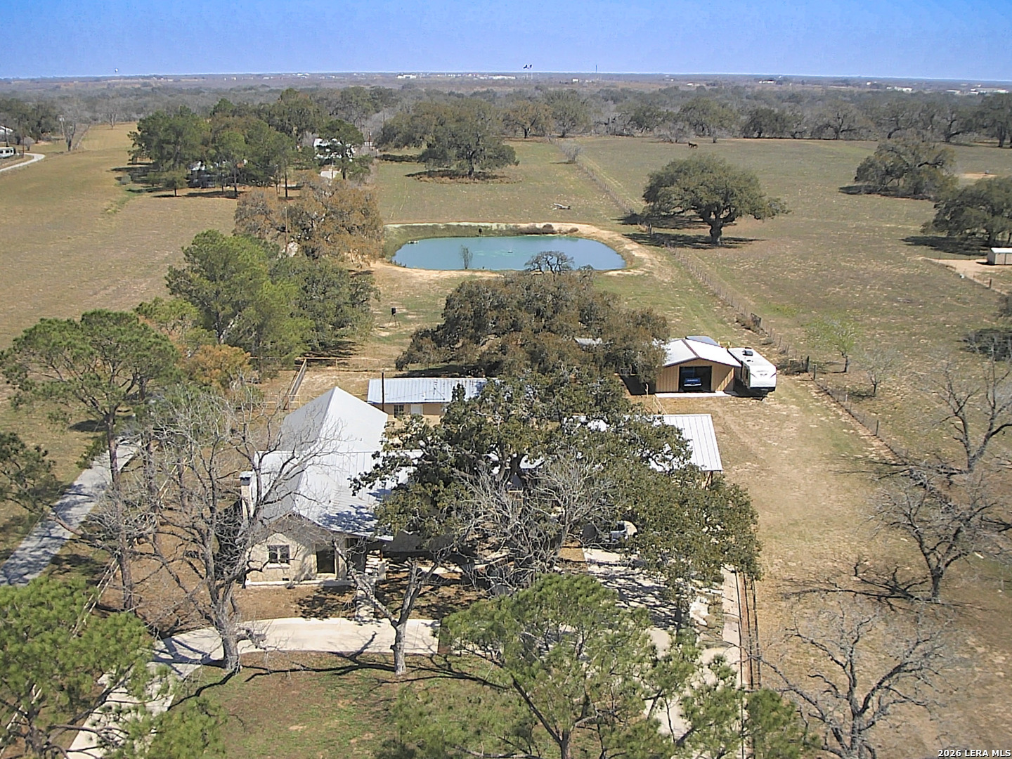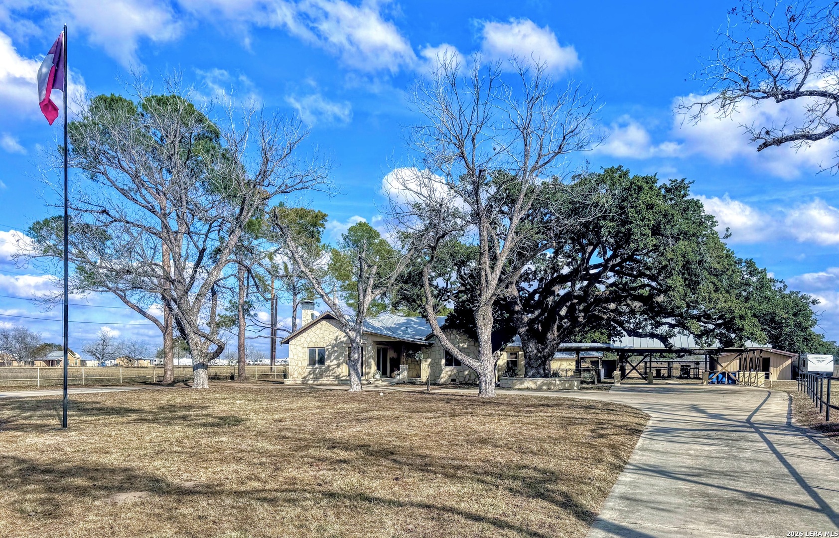 Set on 5.93 picturesque acres, this property offers space, comfort, and so much more! The main home features 2 thoughtfully designed bedrooms and 3 full bathrooms, while a separate guest house provides added flexibility with 1 bedroom, 1 bathroom, a kitchenette, and a private living area, ideal for extended family, guests, or a home office. Inside the main home, you're welcomed into an inviting living room enhanced by vaulted ceilings and oversized windows that flood the space with natural light. The family room flows seamlessly into the breakfast nook and kitchen, creating a layout perfect for entertaining or hosting gatherings at home. The kitchen is a chef's delight, offering stainless steel appliances, a glass cooktop, generous cabinetry, and a large center island with breakfast bar seating. Each bedroom serves as its own private retreat, featuring en suite bathrooms and ample closet space. Outside you will enjoy expansive outdoor living, where a covered patio overlooks the in-ground pool, making it the perfect setting for Texas summers. The sprawling acreage offers endless opportunities. Additional features include a shipping container for extra storage, a three-car carport, a private water well supplying both the pond and sprinkler system, horse stalls, tack room, and a barn with a roll-up door, completing this truly one-of-a-kind property. Schedule your private showing today and experience your own piece of Texas!