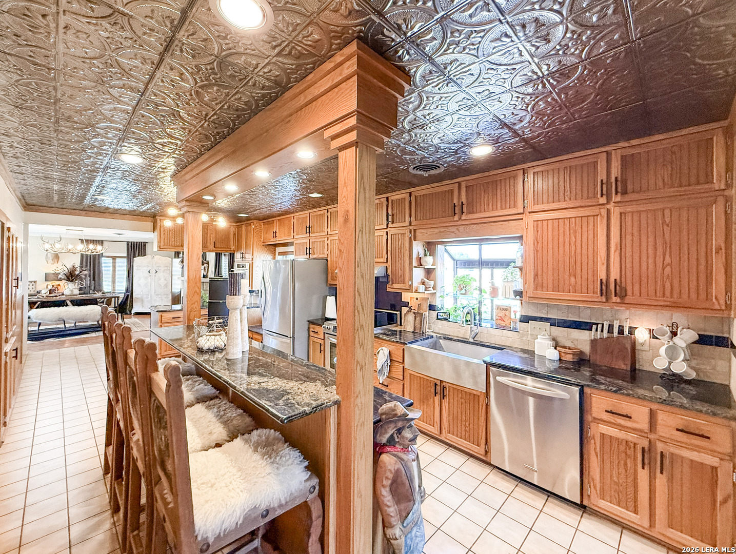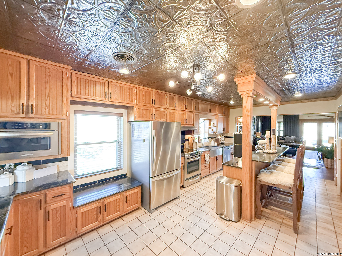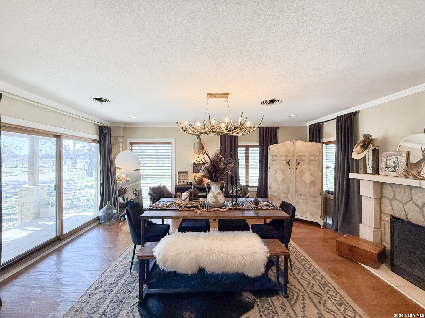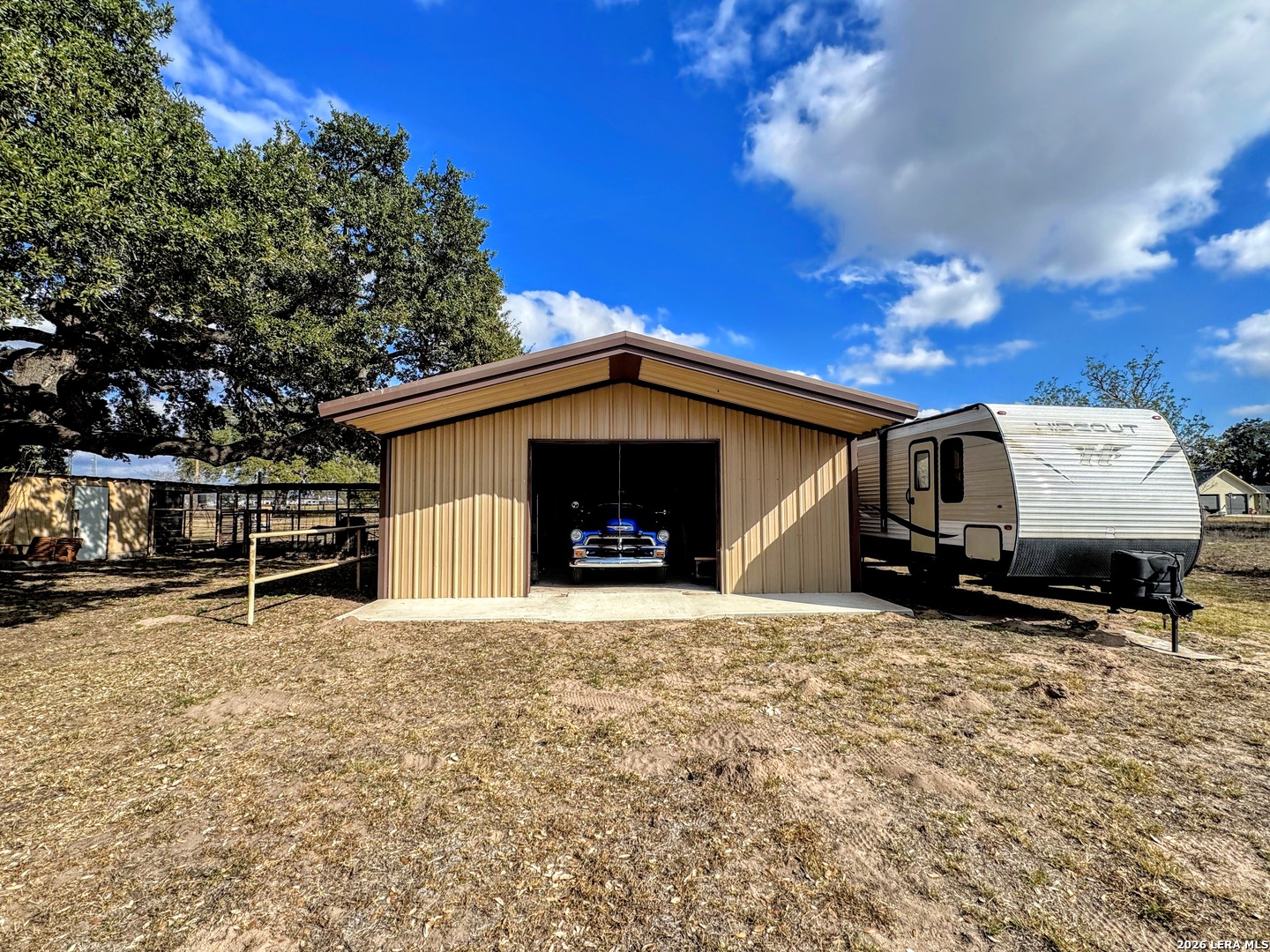 Set on 5.93 picturesque acres, this property offers space, comfort, and so much more! The main home features 2 thoughtfully designed bedrooms and 3 full bathrooms, while a separate guest house provides added flexibility with 1 bedroom, 1 bathroom, a kitchenette, and a private living area, ideal for extended family, guests, or a home office. Inside the main home, you're welcomed into an inviting living room enhanced by vaulted ceilings and oversized windows that flood the space with natural light. The family room flows seamlessly into the breakfast nook and kitchen, creating a layout perfect for entertaining or hosting gatherings at home. The kitchen is a chef's delight, offering stainless steel appliances, a glass cooktop, generous cabinetry, and a large center island with breakfast bar seating. Each bedroom serves as its own private retreat, featuring en suite bathrooms and ample closet space. Outside you will enjoy expansive outdoor living, where a covered patio overlooks the in-ground pool, making it the perfect setting for Texas summers. The sprawling acreage offers endless opportunities. Additional features include a shipping container for extra storage, a three-car carport, a private water well supplying both the pond and sprinkler system, horse stalls, tack room, and a barn with a roll-up door, completing this truly one-of-a-kind property. Schedule your private showing today and experience your own piece of Texas!