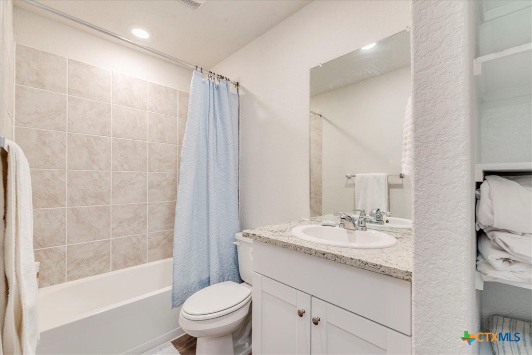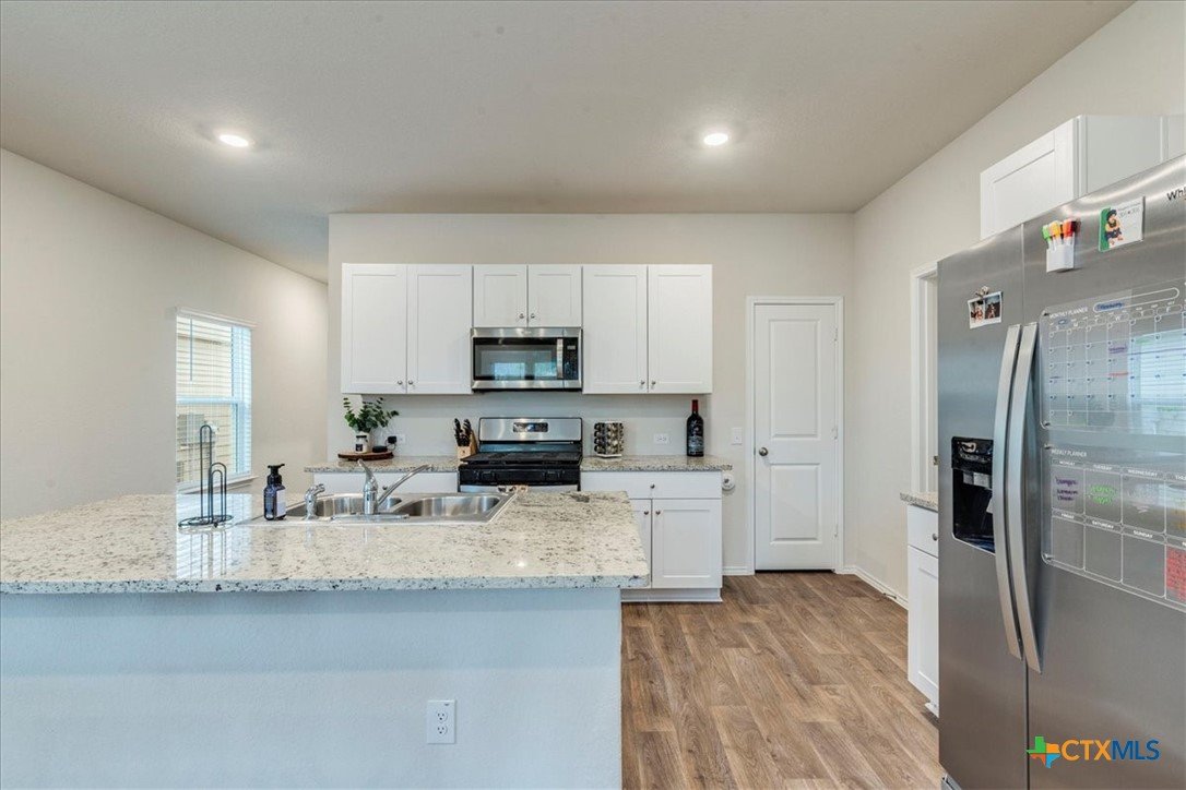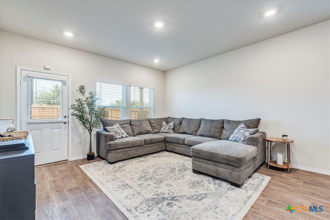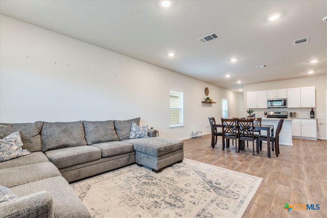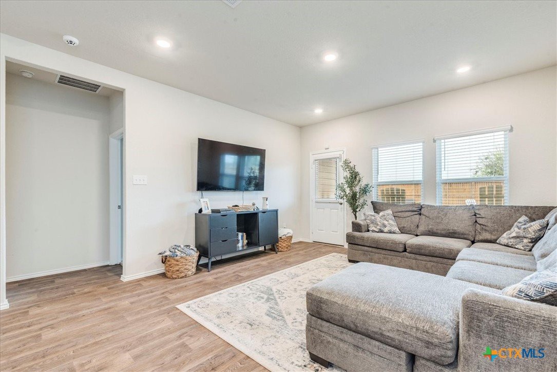 Beautiful home featuring three bedrooms and two and half bathrooms. The open concept floorplan includes a large kitchen island, stainless steel appliances, granite countertops and spacious living room with tons of natural light. The roomy master bedroom is located on the main floor with ensuite bathroom complete with grand walk-in shower and large walk-in closet. The laundry room and half bathroom are also located on the main level. Up the stairs, you'll find an additional living space; perfect for a playroom or home office, along with two well sized bedrooms and a full bathroom. The oversized backyard completes this amazing home and makes it a great place to call home! Conveniently located to all of what New Braunfels has to offer! Including the Creekside shops and restaurants, just 5 mins away. Enjoy your weekends in downtown Historic Gruene, just 5 mins away! Or the nightlife and shops in Downtown New Braunfels, just 10 minutes away. Schedule a showing today!