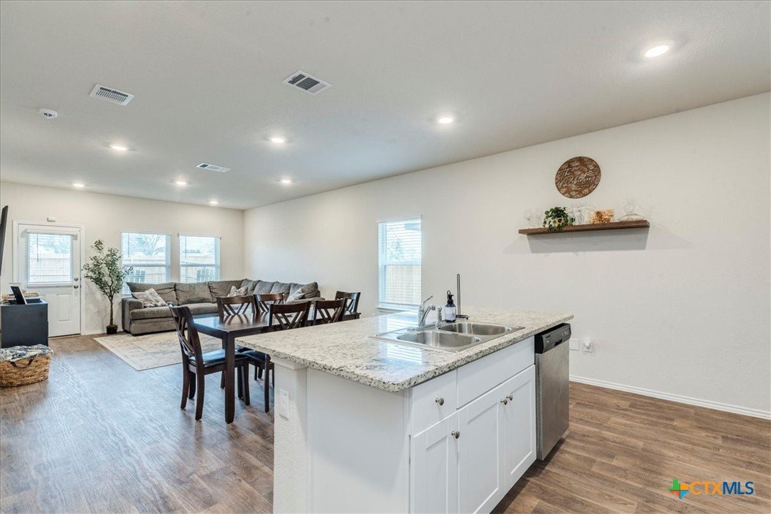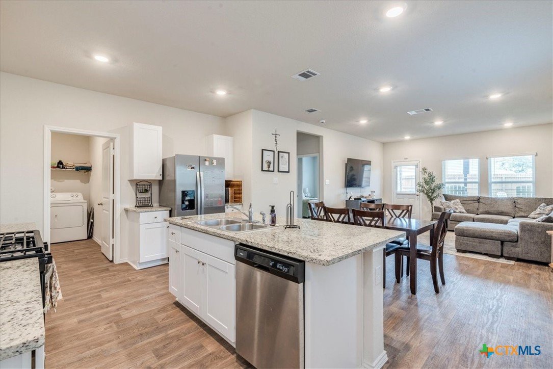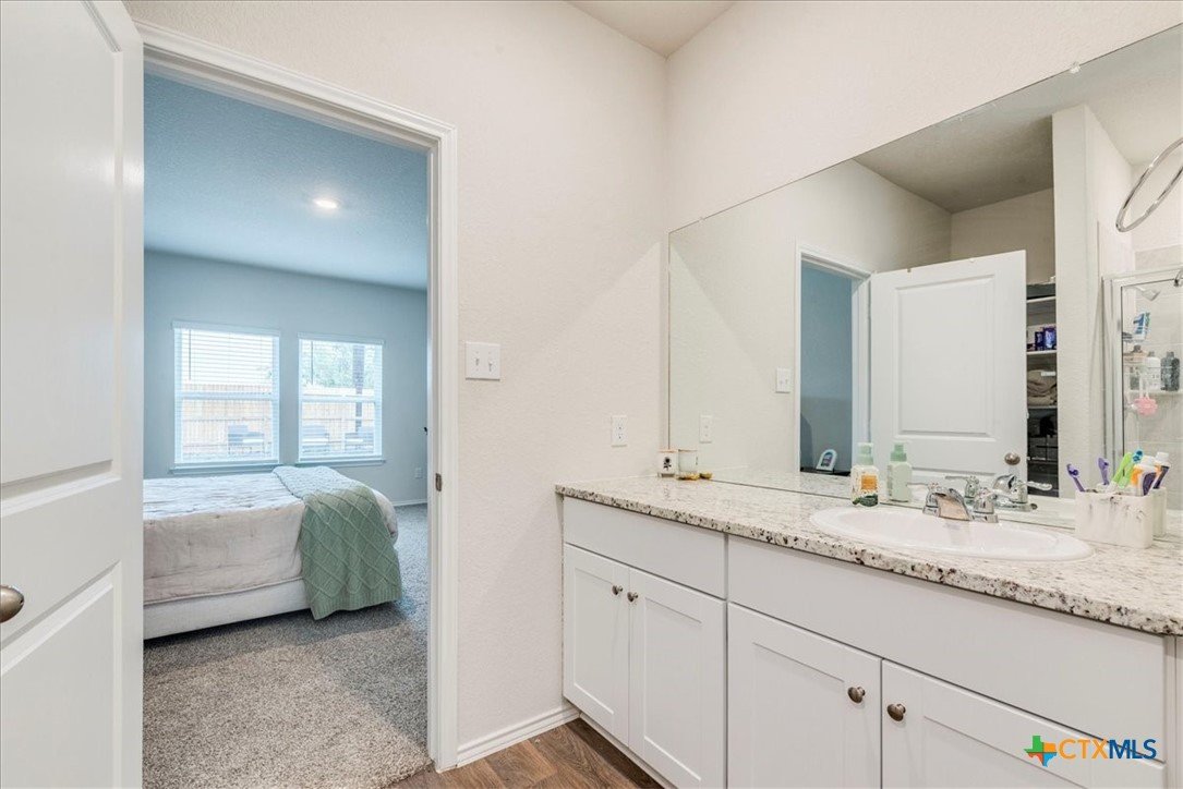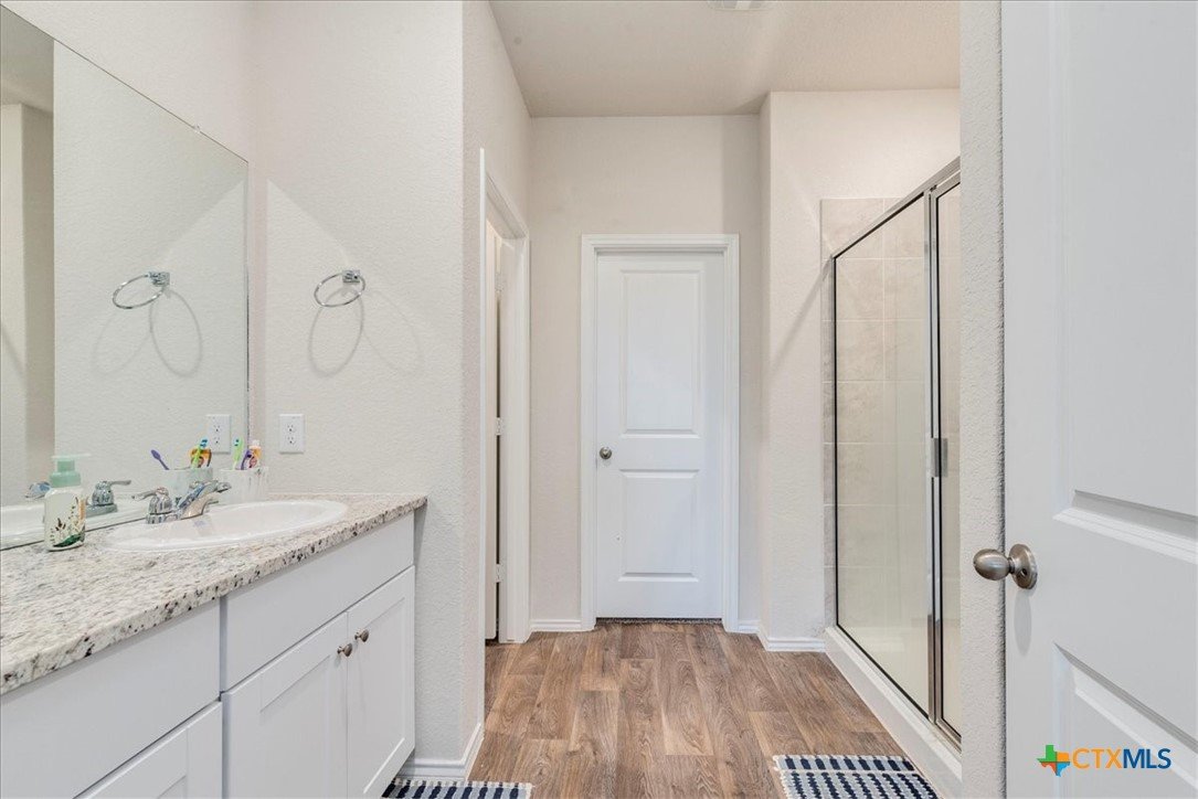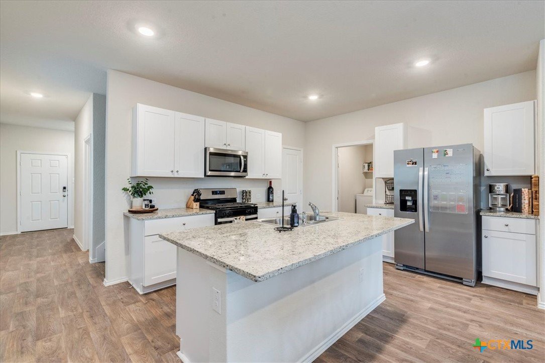 Beautiful home featuring three bedrooms and two and half bathrooms. The open concept floorplan includes a large kitchen island, stainless steel appliances, granite countertops and spacious living room with tons of natural light. The roomy master bedroom is located on the main floor with ensuite bathroom complete with grand walk-in shower and large walk-in closet. The laundry room and half bathroom are also located on the main level. Up the stairs, you'll find an additional living space; perfect for a playroom or home office, along with two well sized bedrooms and a full bathroom. The oversized backyard completes this amazing home and makes it a great place to call home! Conveniently located to all of what New Braunfels has to offer! Including the Creekside shops and restaurants, just 5 mins away. Enjoy your weekends in downtown Historic Gruene, just 5 mins away! Or the nightlife and shops in Downtown New Braunfels, just 10 minutes away. Schedule a showing today!