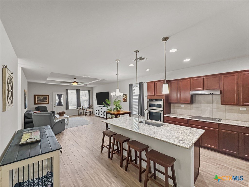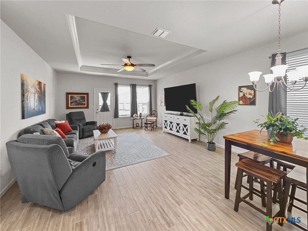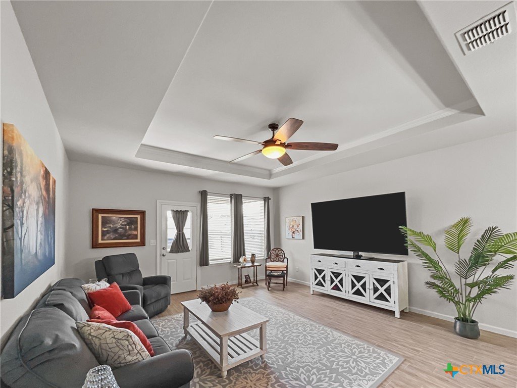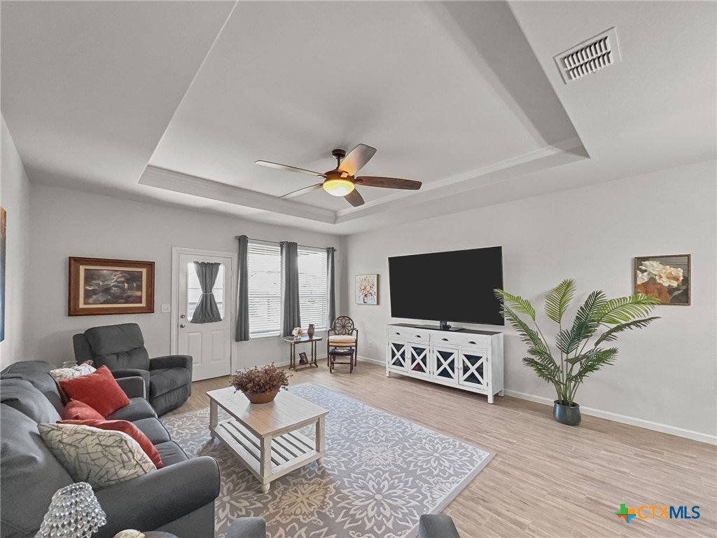 Welcome home to the heart of the vibrant New Braunfels community; this single-story home offers the perfect blend of comfort, style, & convenience. Built in 2020, this meticulously maintained residence spans 1,895 square feet & features 3 bedrooms and 2 bathrooms; an open-concept layout provides seamless flow between the living, dining, and kitchen areas, making it ideal for both everyday living & entertaining. The kitchen features an oversized granite island & ample cabinet space. The master suite includes a spacious bathroom featuring dual vanities, an oversized shower & a walk-in closet offering abundant storage space for your wardrobe & accessories. Spacious backyard for kids and pets, complete with a lawn irrigation system. The large flex room at the front of the home is perfect for workouts, nursery, or office. AC System maintained and up to date. The community pool offers the perfect spot to cool off on hot summer days & socialize with neighbors. Conveniently located close to schools, shopping, dining, the river, & other essential amenities - Whether you're running errands or exploring the local attractions, everything you need is just minutes away. Don't miss your opportunity to own this exceptional home, where modern comfort meets timeless charm. Schedule your showing today & experience the best of suburban living! Refrigerator, Washer and Dryer to convey with sale.