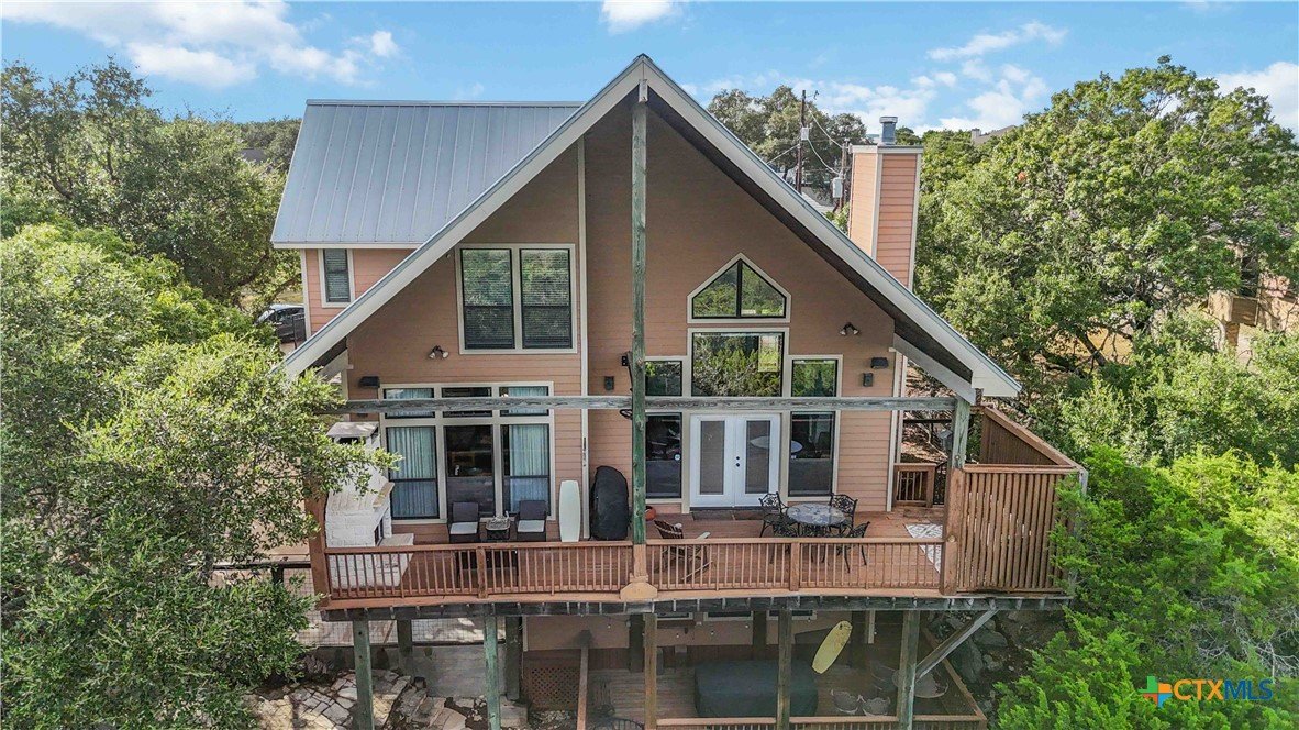 Waterfront home with stunning views and direct lake access! Enjoy true lakefront living with this 4-bedroom, 3-bath home situated directly on Canyon Lake. Take in unobstructed water views and step outside to the pathway that leads directly to the shoreline-perfect for swimming, paddleboarding, or just relaxing by the water. This multi-level home features spacious indoor living areas and expansive outdoor spaces designed for entertaining. The oversized patio and wraparound decks offer plenty of room to gather, complete with a large stone fireplace that adds both charm and functionality for year-round enjoyment. Whether you're looking for a full-time residence, or a vacation getaway, this property combines comfort, location, and lifestyle in one of Canyon Lake's most desirable settings!