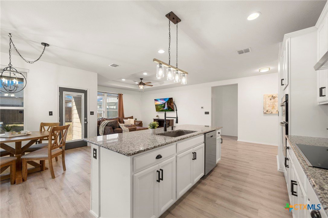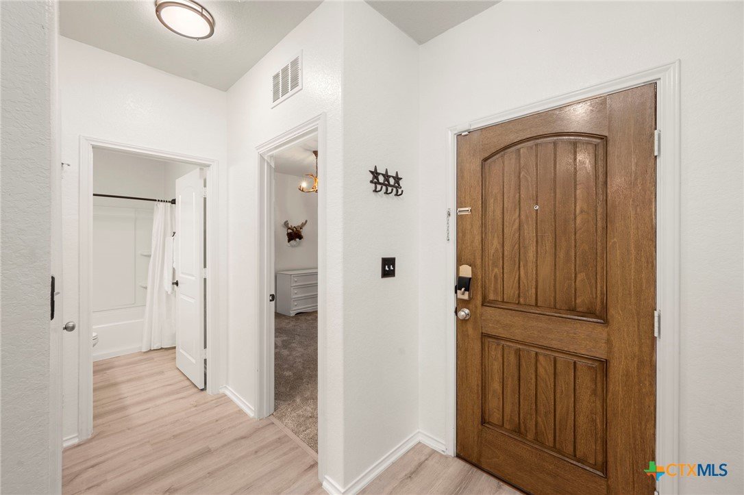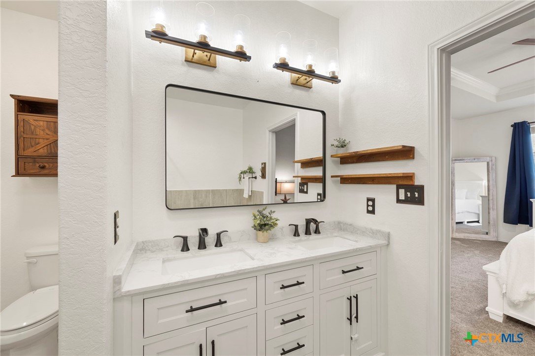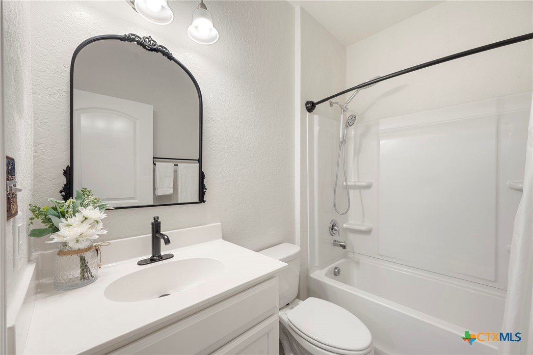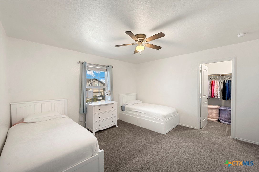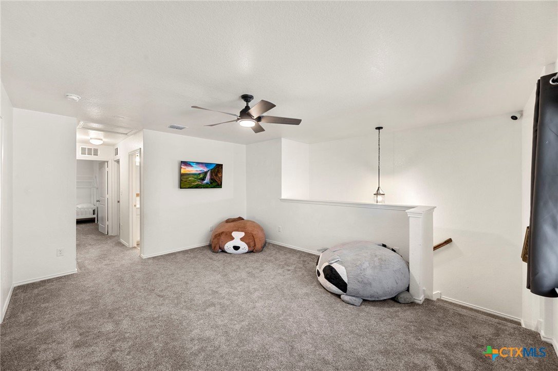 Welcome to this beautifully maintained 5-bedroom, 3-bath home in the desirable Ridgemont subdivision. With 2,701 square feet, this spacious two-story layout offers both comfort and functionality. The open floor plan is ideal for everyday living and entertaining, complemented by a separate dining room for gatherings. The primary suite and a secondary guest bedroom are conveniently located on the main level, offering added convenience for guests or a private workspace. The primary retreat features a tray ceiling, double vanity, soaking tub, and separate shower. Upstairs, you'll find three additional bedrooms plus a generous loft that can serve as a game room, media area, or home office. Thoughtful updates within the last year include LVP flooring and new carpet throughout, a new water heater, insulated garage doors, and a charming pergola that's perfect for enjoying the backyard. The home is also just a short distance from the community pool and nearby school, adding to its everyday convenience. Move-in ready and wonderfully cared for, this home is an excellent opportunity in a prime New Braunfels location.