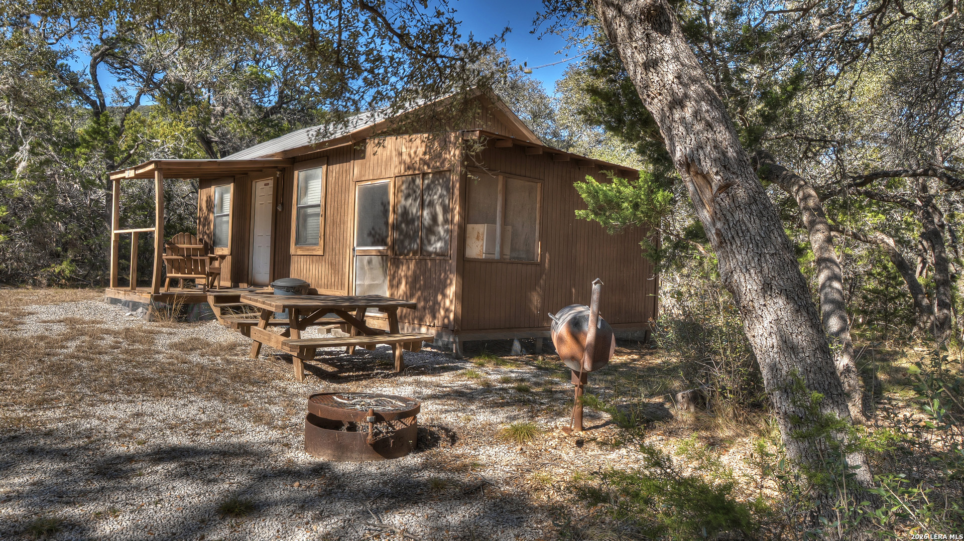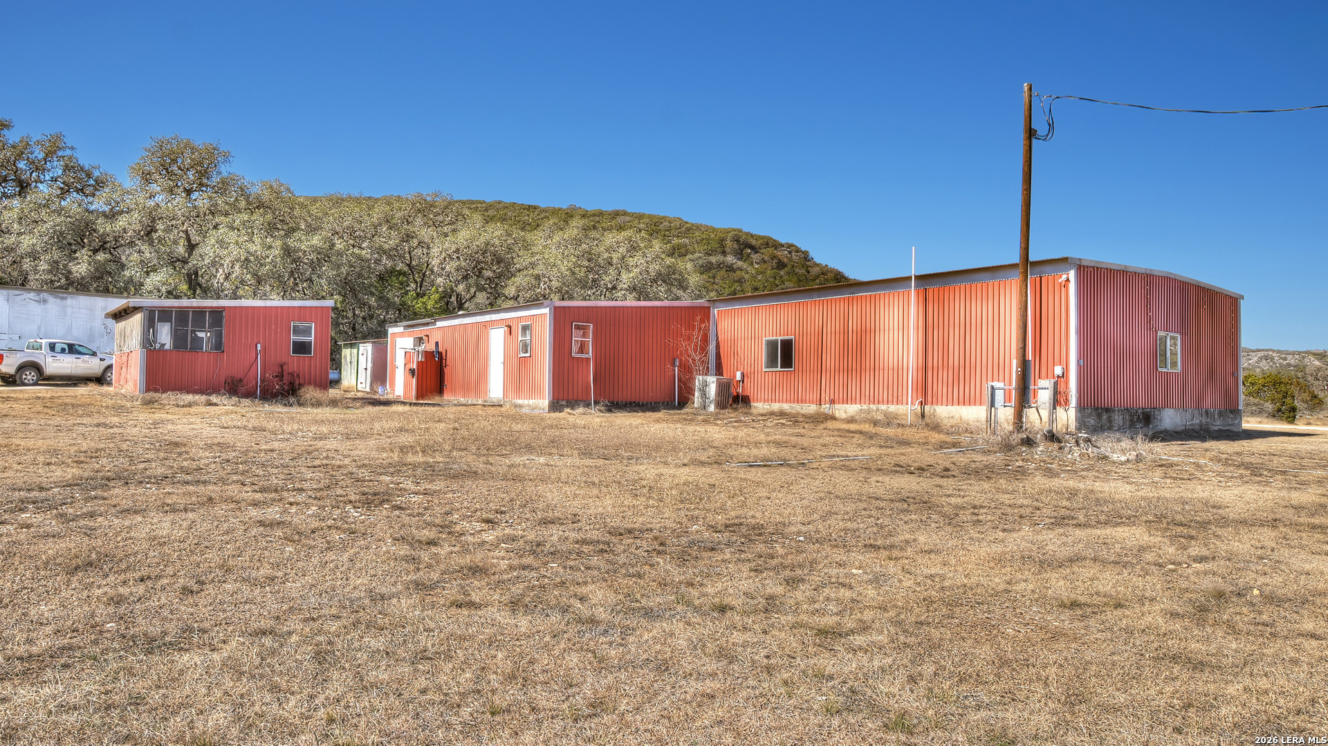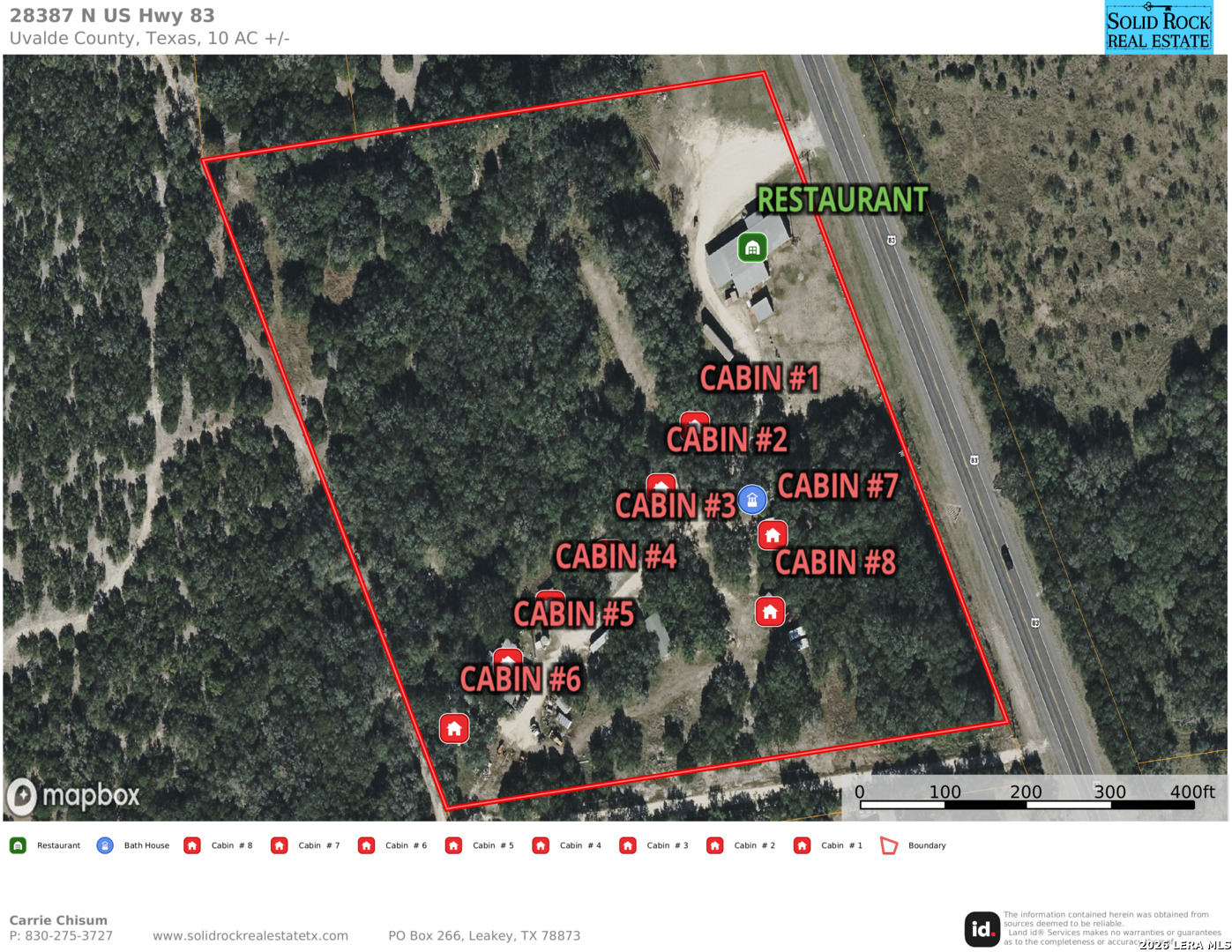 Exceptional commercial real estate investment in the heart of the Texas Hill Country, perfect for investors seeking income-producing hospitality or development opportunities. This 10-acre property features eight rustic cabins, a bathhouse, and an eye-catching 2,500 sq.ft. red metal building fully outfitted as a restaurant and bar venue-ideally situated between the high-traffic areas of Concan and Garner State Park. With over 675 feet of prime frontage on US Highway 83 and a 60-foot commercial driveway, the property offers outstanding visibility and easy access for guests. The restaurant building includes an office, a fully equipped commercial kitchen, and three bathrooms (one with a shower/tub combo). A roll-up drive-thru door on one end adds operational flexibility. All essential utilities are on site, including a dedicated water well, two septic systems, electricity, telephone, and high-speed Wi-Fi. The gently sloping terrain is mostly wooded with majestic live oaks, presenting the potential to create a park-like retreat with scenic Hill Country vistas through selective clearing. There is ample space for expansion-add RV sites or more cabins to maximize returns. The property is located outside the 100-year floodplain, with no known easements, and includes all existing furniture, fixtures, and equipment for turnkey operation. Don't miss this rare opportunity to acquire a versatile, revenue-generating asset in one of Texas's most desirable tourism corridors.