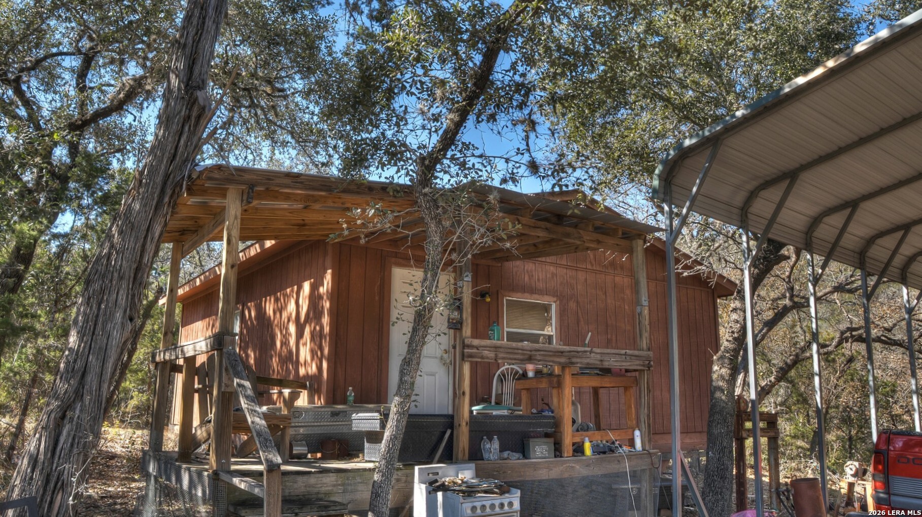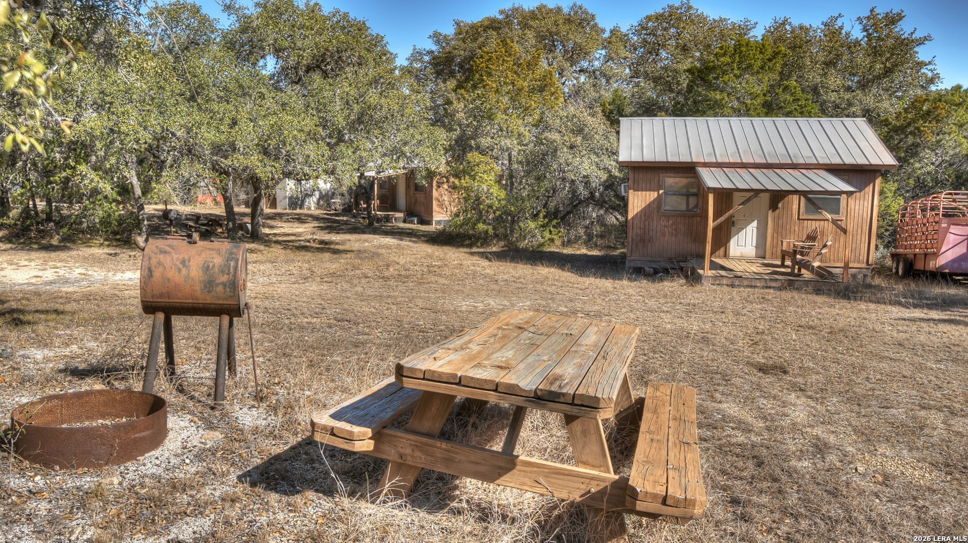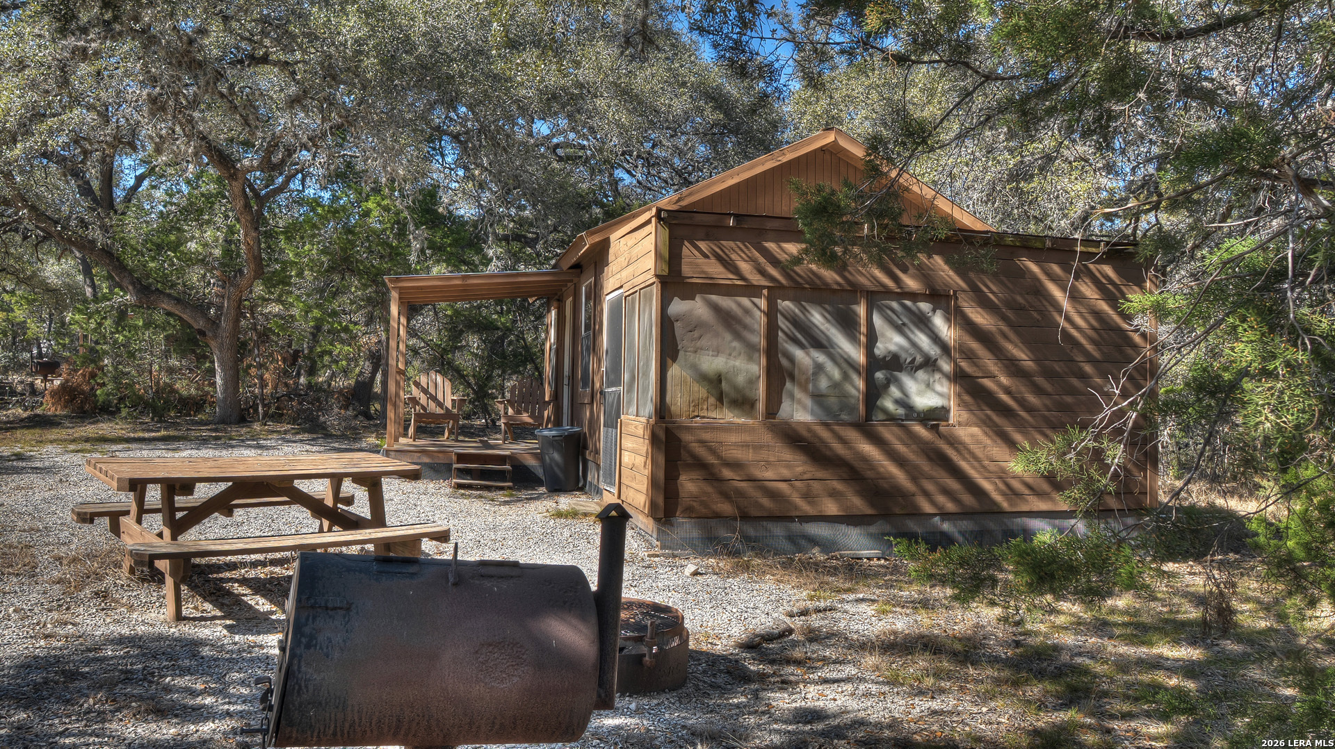 Exceptional commercial real estate investment in the heart of the Texas Hill Country, perfect for investors seeking income-producing hospitality or development opportunities. This 10-acre property features eight rustic cabins, a bathhouse, and an eye-catching 2,500 sq.ft. red metal building fully outfitted as a restaurant and bar venue-ideally situated between the high-traffic areas of Concan and Garner State Park. With over 675 feet of prime frontage on US Highway 83 and a 60-foot commercial driveway, the property offers outstanding visibility and easy access for guests. The restaurant building includes an office, a fully equipped commercial kitchen, and three bathrooms (one with a shower/tub combo). A roll-up drive-thru door on one end adds operational flexibility. All essential utilities are on site, including a dedicated water well, two septic systems, electricity, telephone, and high-speed Wi-Fi. The gently sloping terrain is mostly wooded with majestic live oaks, presenting the potential to create a park-like retreat with scenic Hill Country vistas through selective clearing. There is ample space for expansion-add RV sites or more cabins to maximize returns. The property is located outside the 100-year floodplain, with no known easements, and includes all existing furniture, fixtures, and equipment for turnkey operation. Don't miss this rare opportunity to acquire a versatile, revenue-generating asset in one of Texas's most desirable tourism corridors.