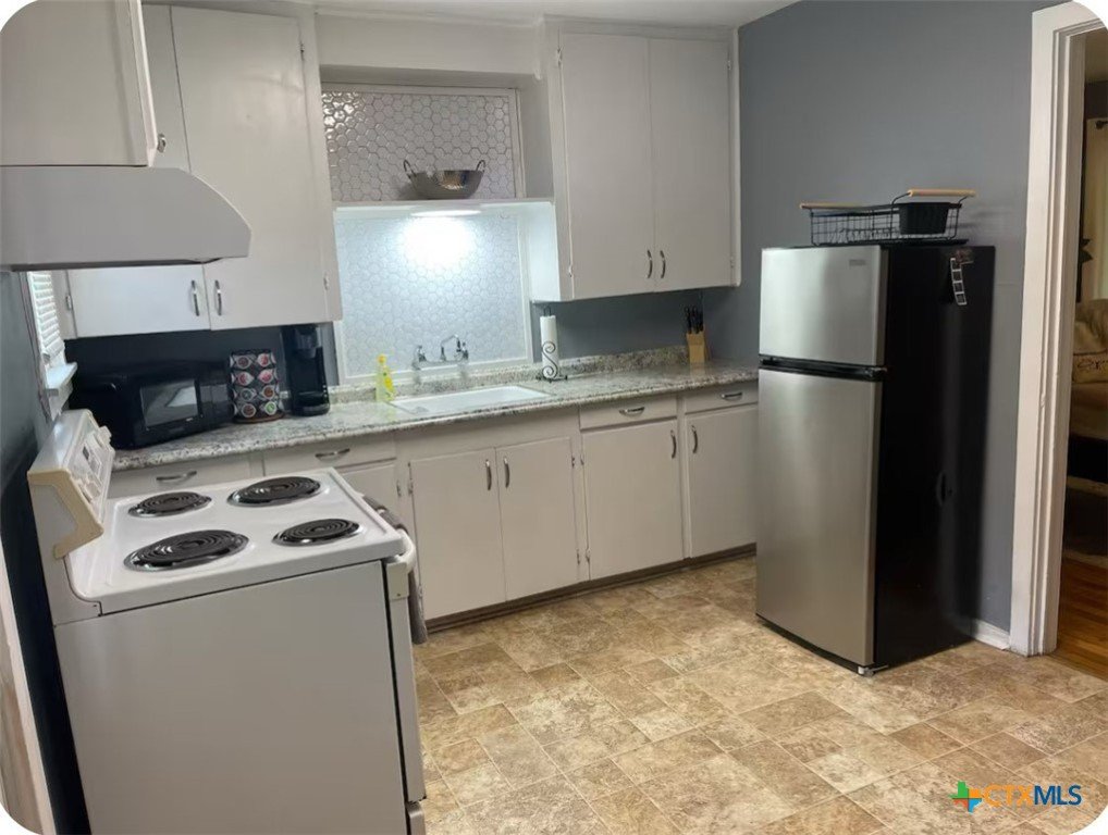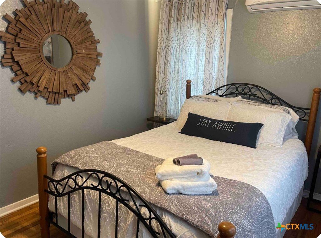 This is a FULLY FURNISHED 30 day to 6 month rental. Adorable 2 bed 1 bath cottage in downtown New Braunfels, close to Shlitterbahn and tubing the river! Walking distance to restaurants, convenient stores, gas stations, fast food, coffee stands, margarita stands, and a dancehall with live music! Huge fenced in back yard. Easy access to HI 35, 8 blocks to the center of downtown New Braunfels! Close to Shlitterbahn water park and the Comal river, Guadalupe river. Close to everything, located between San Antonio and Austin. There are two bedrooms. One bedroom with one queen bed and one bedroom with two twin beds. Each room has a vanity, closets, drawers and mini split (AC/Heat) unit. Linen closets are located in the hallway and bathroom. Beautiful, oversized backyard, fully fenced with a patio covered by a beautiful pergola complete with electrical outlets and seating as well as a propane grill and fire pit for entertaining. The kitchen has a small kitchen table, mid-sized refrigerator, oven with stove top and comes fully stocked with all the essentials (pots, pans, plates bowels, utensils etc.). The Living room has a full-sized couch, love seat and coffee table. The laundry room has a washer and dryer and is located in a private room by the carport. The property is ideally located in the center of town and close to everything with easy access to I 35. The Living room is separate from the kitchen. The living room has two couches. There are TV's in each room and the Living room. There is a fully fenced, oversized back yard with a pergola, fire pit and propane grill. There is a carport in the paved 2 car driveway. The carport has a laundry room with a washer and dryer. No Pets