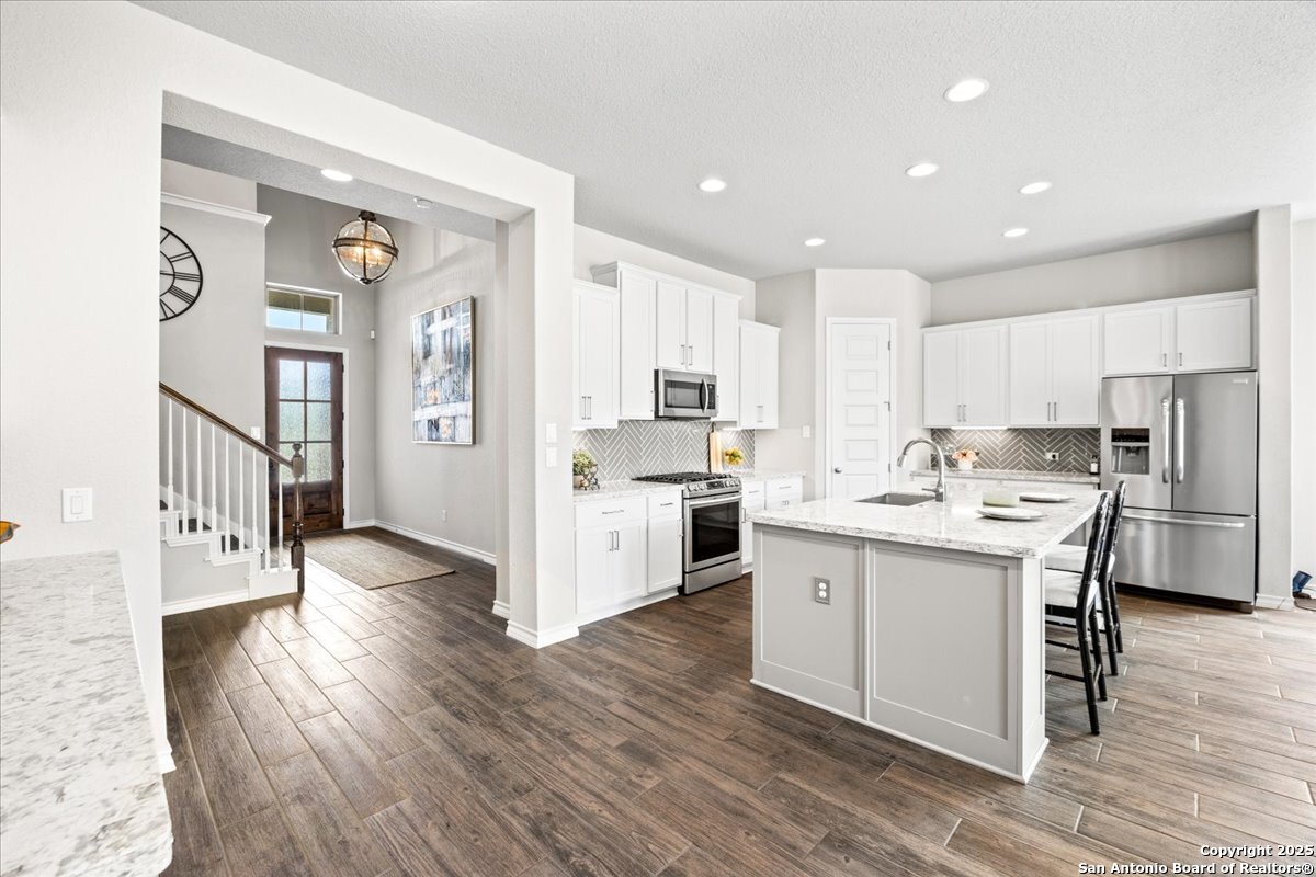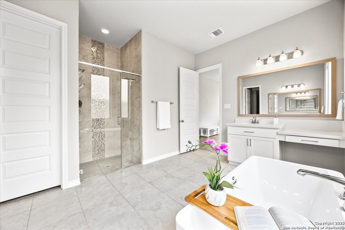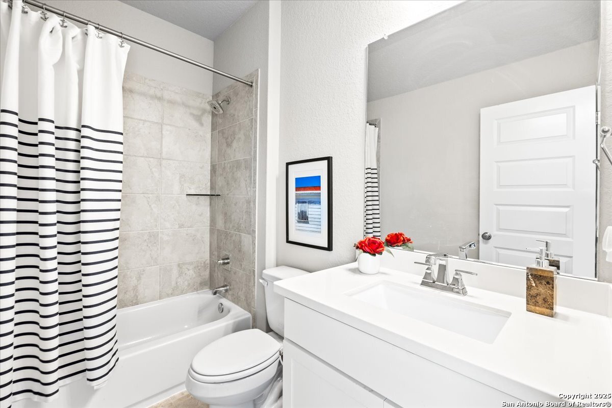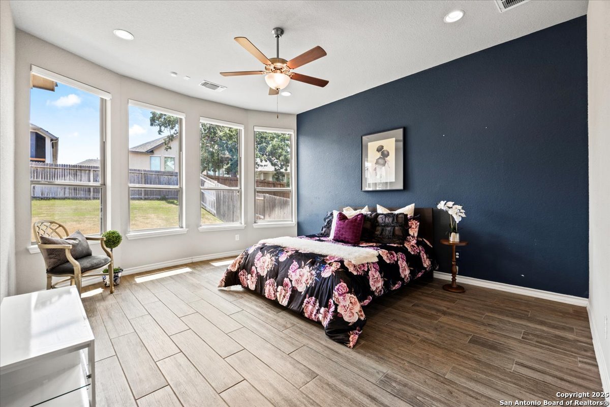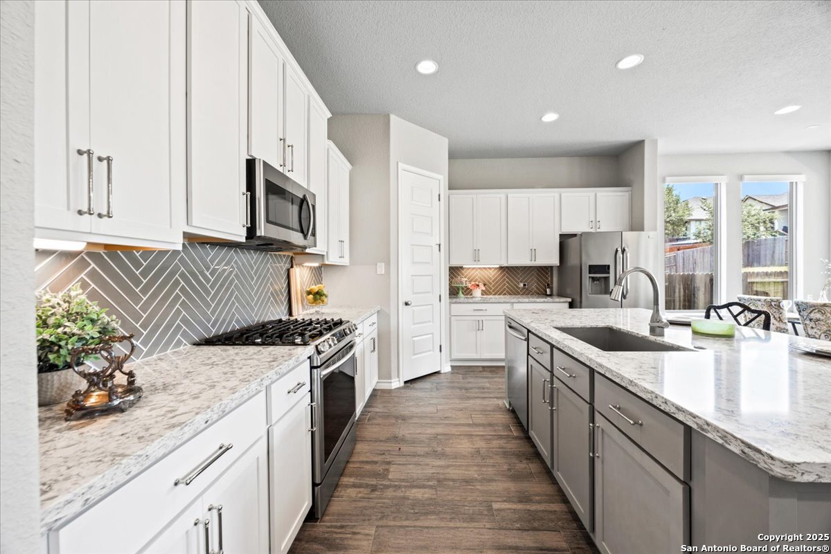 Discover an exceptional opportunity with this move-in ready home, offering both value and elegance. The gourmet kitchen is a culinary enthusiast's dream, featuring granite countertops, upgraded cabinetry, stainless steel appliances, and gas cooking-a perfect blend for both everyday living and entertaining. Retreat to the expansive master suite, highlighted by a stunning bay window that invites natural light and tranquility. The luxury master bath boasts spacious separate vanities, providing ample space and comfort. A versatile second downstairs bedroom offers flexibility as a private study or flex space, catering to your lifestyle needs. Upstairs, the multipurpose game room awaits, ideal for movie nights, gaming sessions, or crafting your hobby haven. With large secondary bedrooms and four well-appointed bathrooms, this home ensures comfort and privacy for all. Step outside to a generous covered back patio, perfect for outdoor gatherings and relaxation. Don't miss the chance to make this beautiful family home yours-schedule a viewing today!