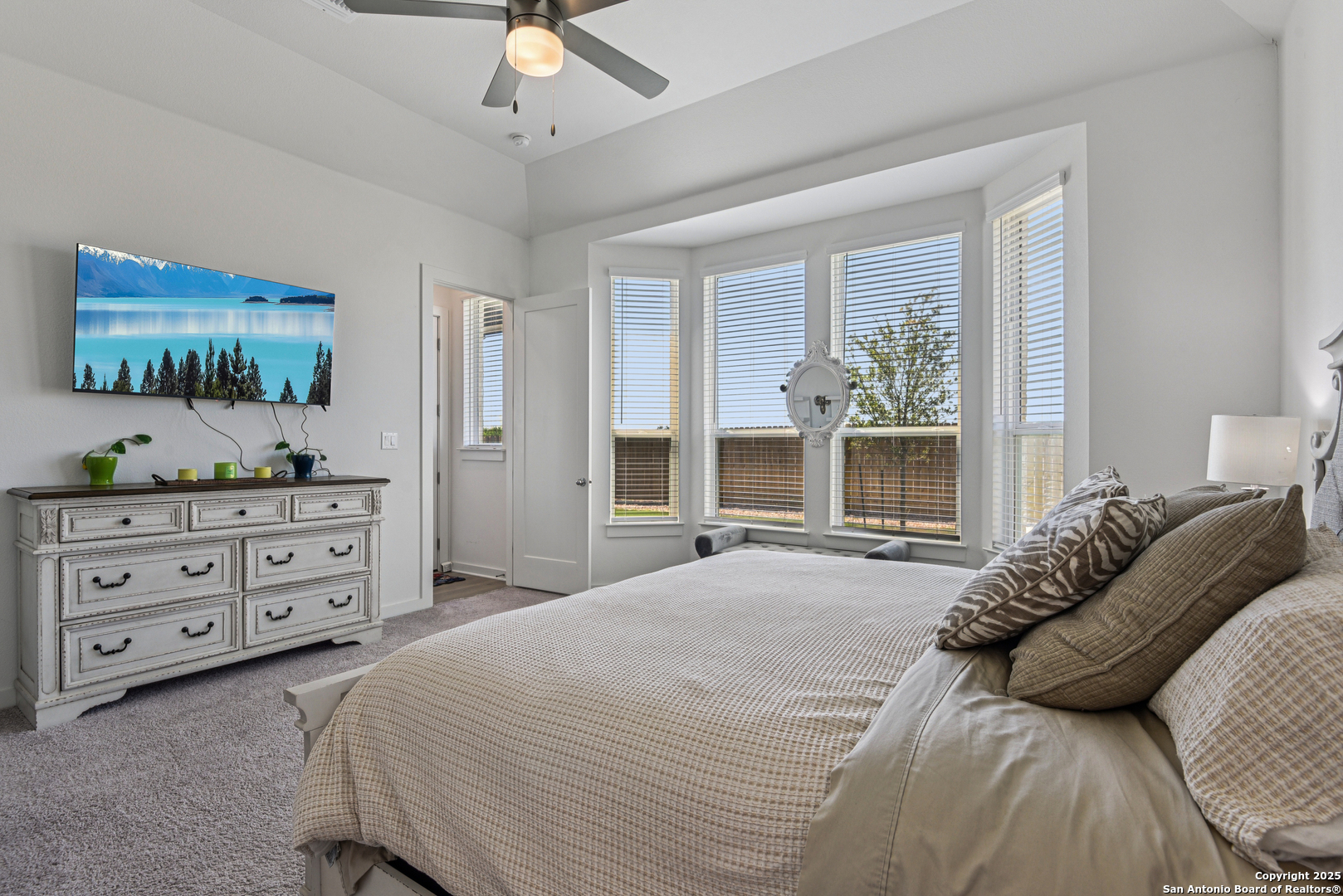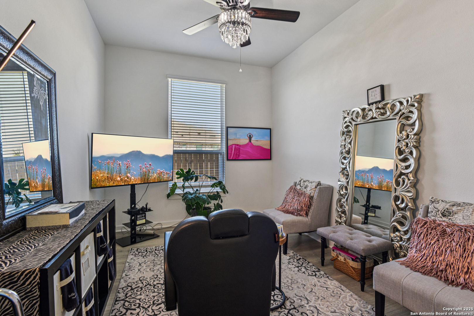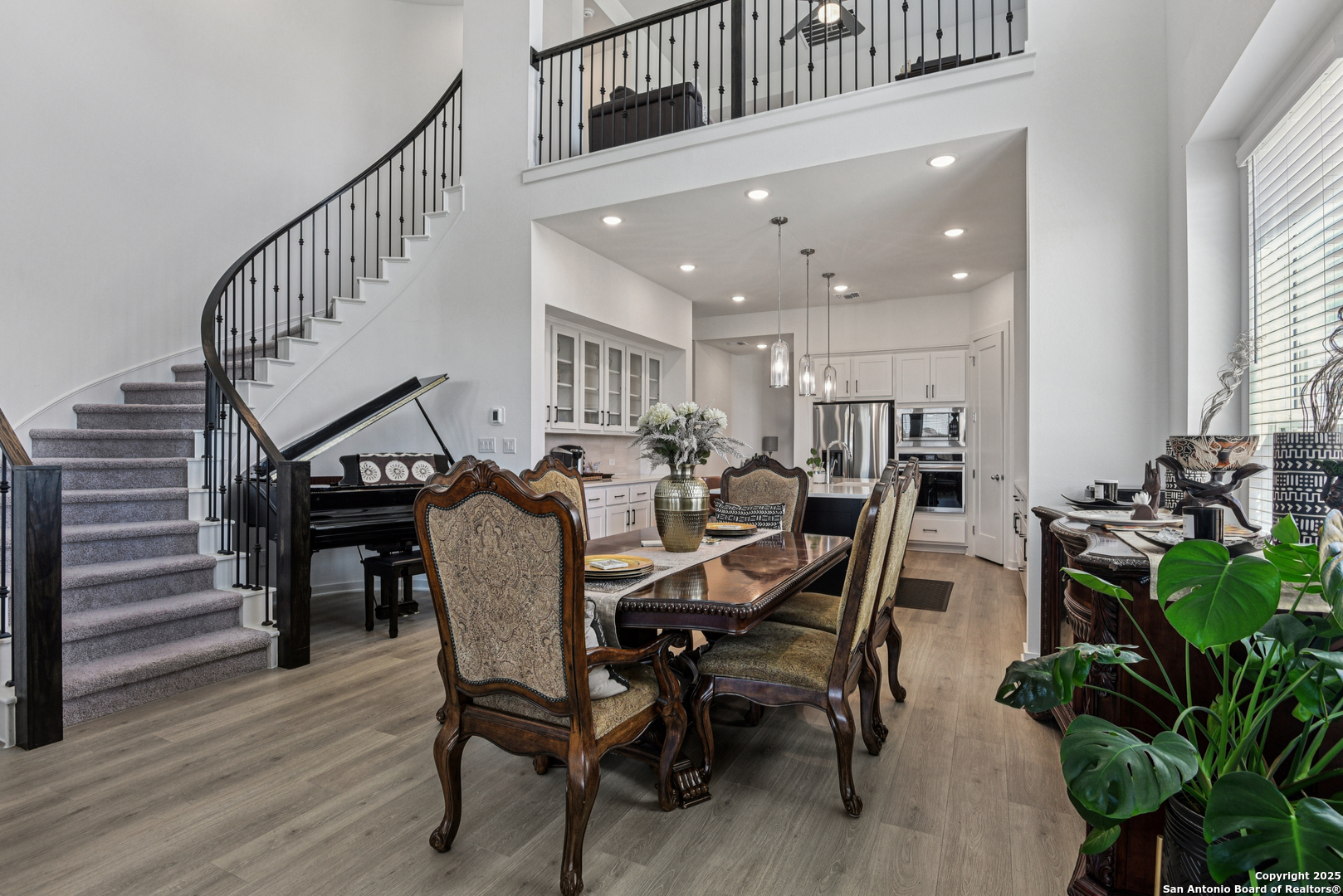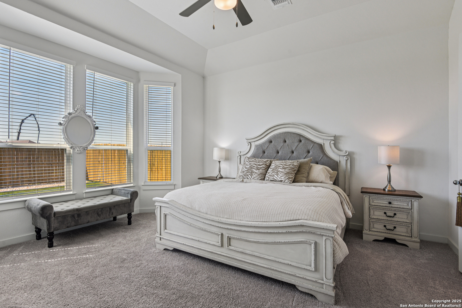 This spacious 2-story home in Sunflower Ridge offers a flexible layout with 5 bedrooms and abundant natural light throughout. The open floor plan features high ceilings and a dramatic spiral staircase that adds character and charm. The gourmet kitchen is designed with function in mind, featuring a large island, breakfast bar, gas cooking, pantry, and ample counter and cabinet space. A dedicated home office provides the ideal setup for remote work or study. The first-floor primary suite is thoughtfully positioned apart from the other bedrooms and includes a private bath with a drop-in tub, walk-in shower, and peaceful backyard views. A second bedroom on the main floor adds convenience for guests or multi-generational living. Upstairs, you'll find three generously sized bedrooms and a versatile loft that works well as a second living area or game room. The backyard features a covered patio and privacy fence, offering a comfortable outdoor space for relaxing or entertaining. Located close to shopping and I-35, this home combines space, comfort, and convenience. Schedule your tour today.